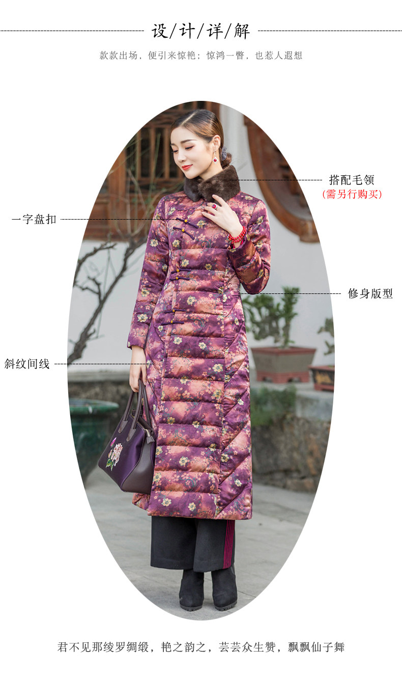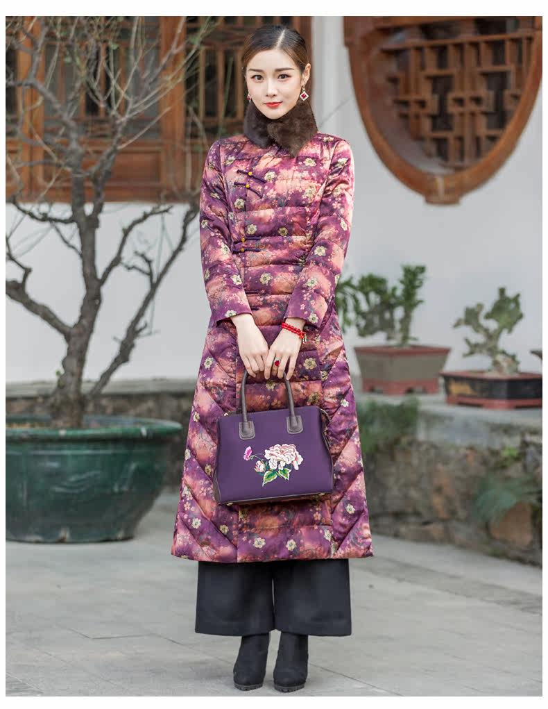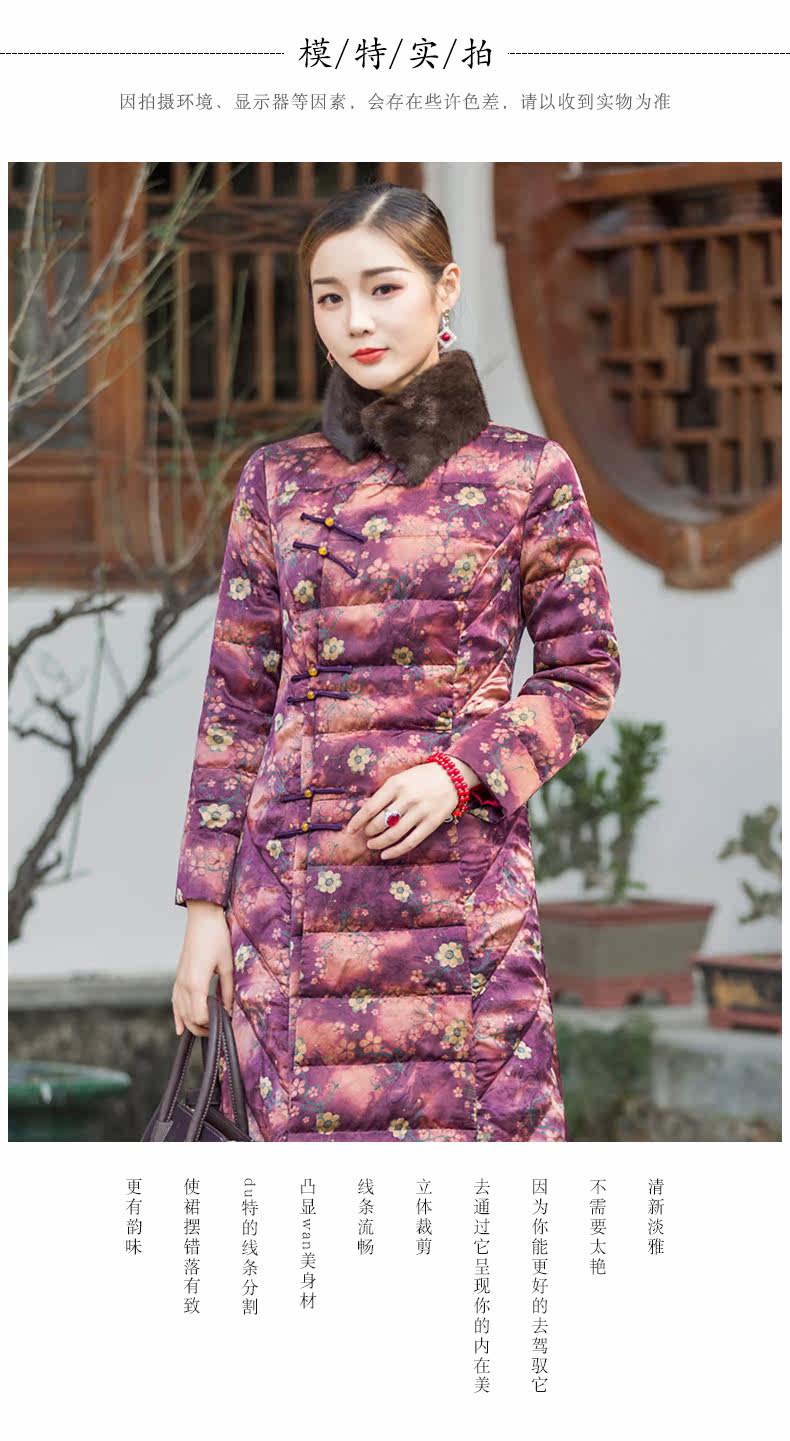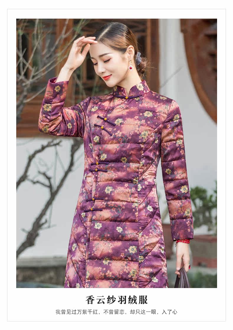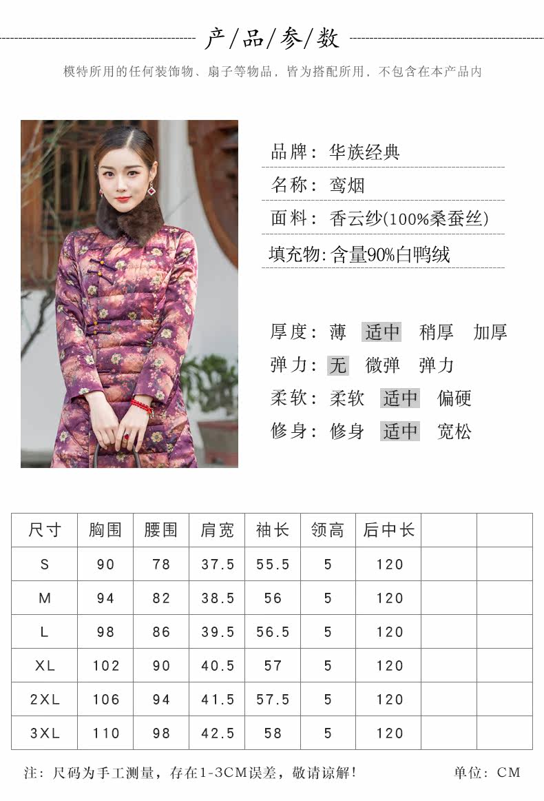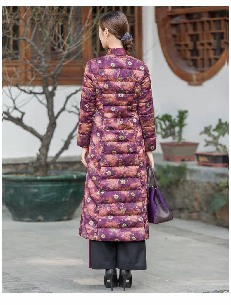 华族经典 Шелковый элитный пуховик, легкая и тонкая приталенная длинная куртка, средней длины