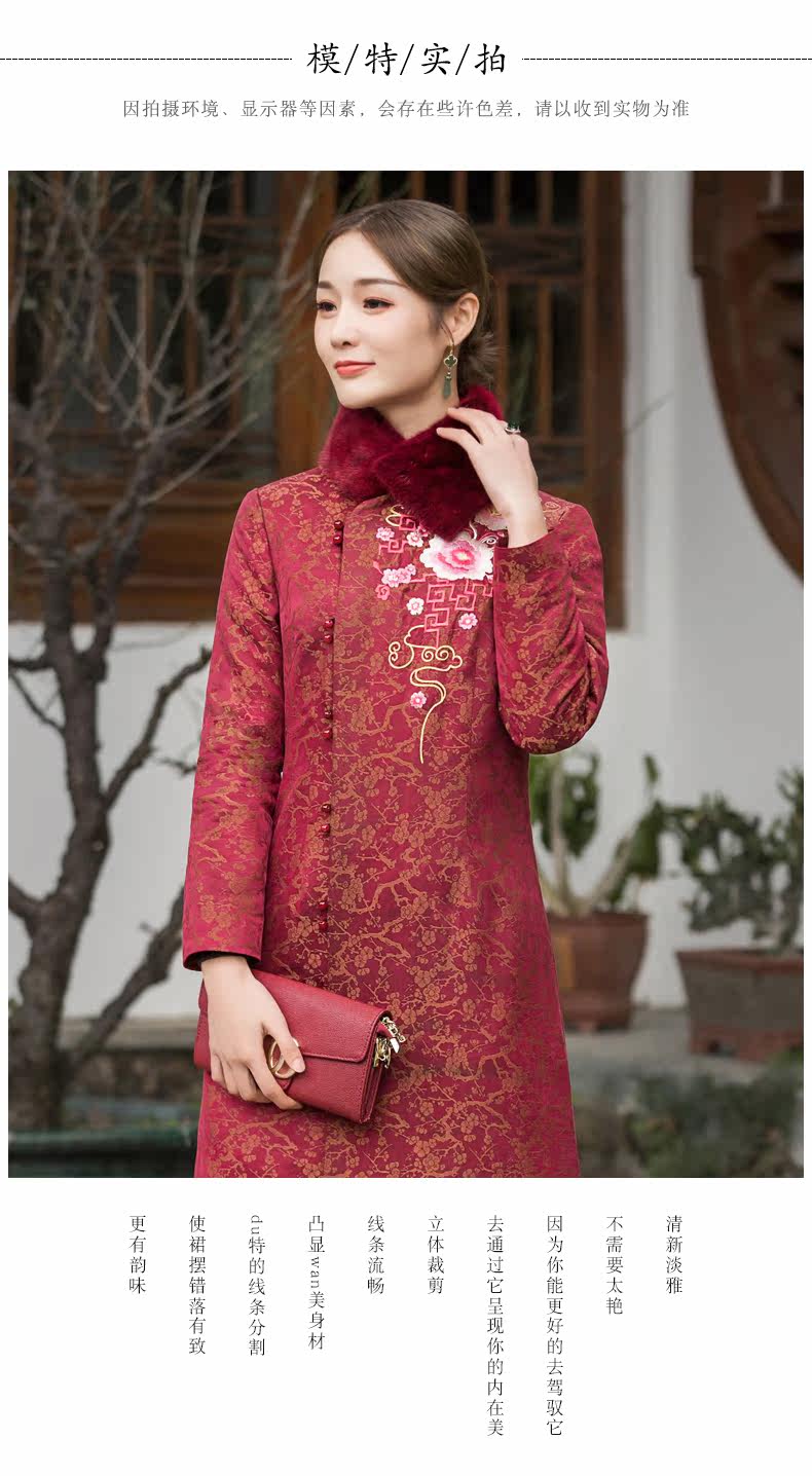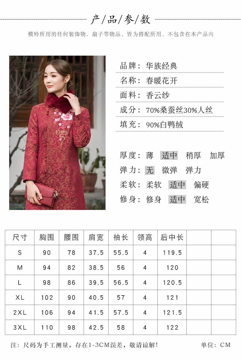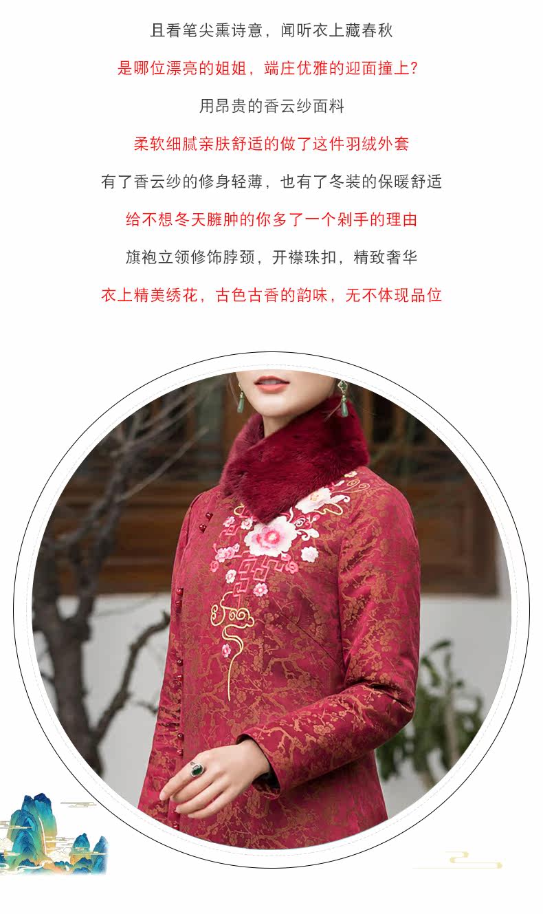 华族经典 Цветочный длинный элитный удерживающий тепло бархатный пуховик, утиный пух, коллекция 2021