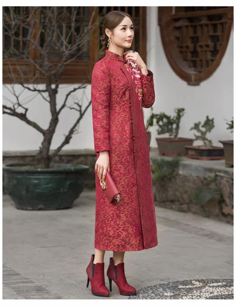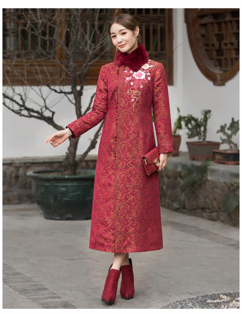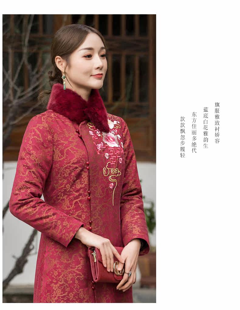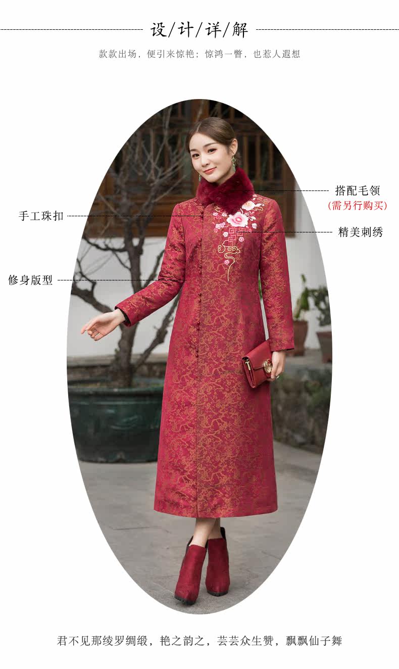 华族经典 Цветочный длинный элитный удерживающий тепло бархатный пуховик, утиный пух, коллекция 2021