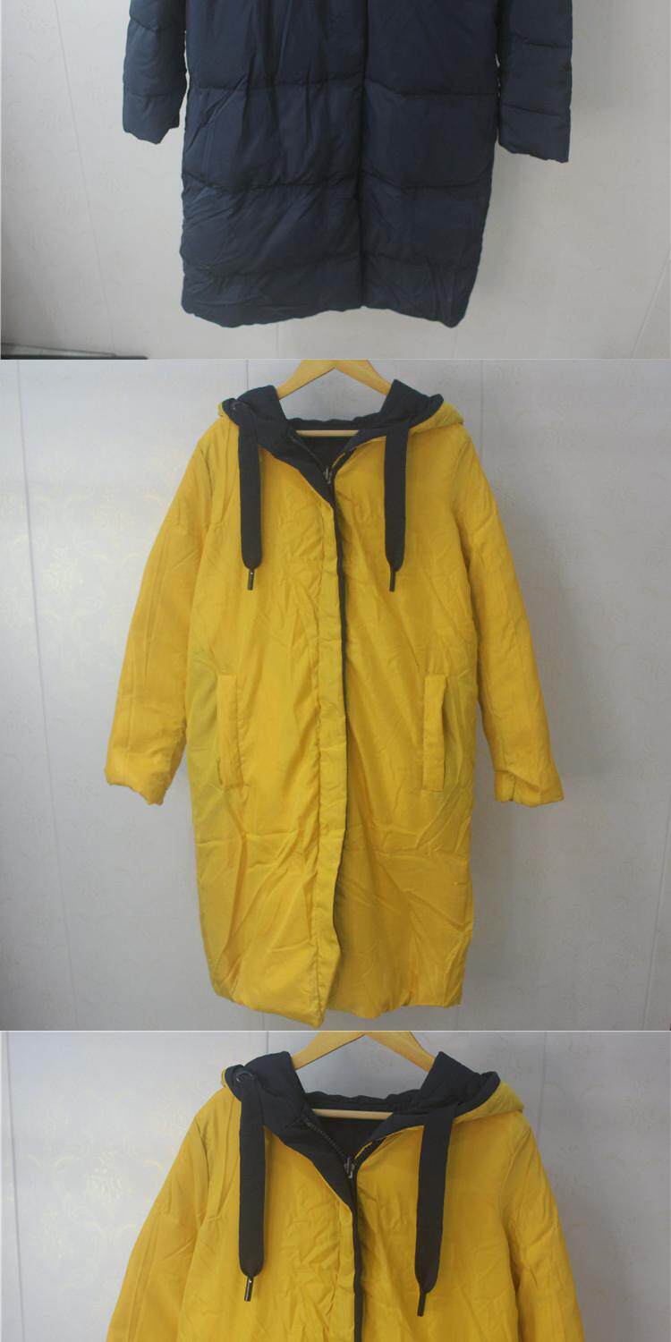 Зимняя длинная двусторонная толстовка с капюшоном, пуховик, средней длины