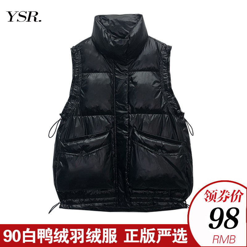 Жилет с пухом, бархатный пуховик без рукавов, европейский стиль, утиный пух, на шнурках