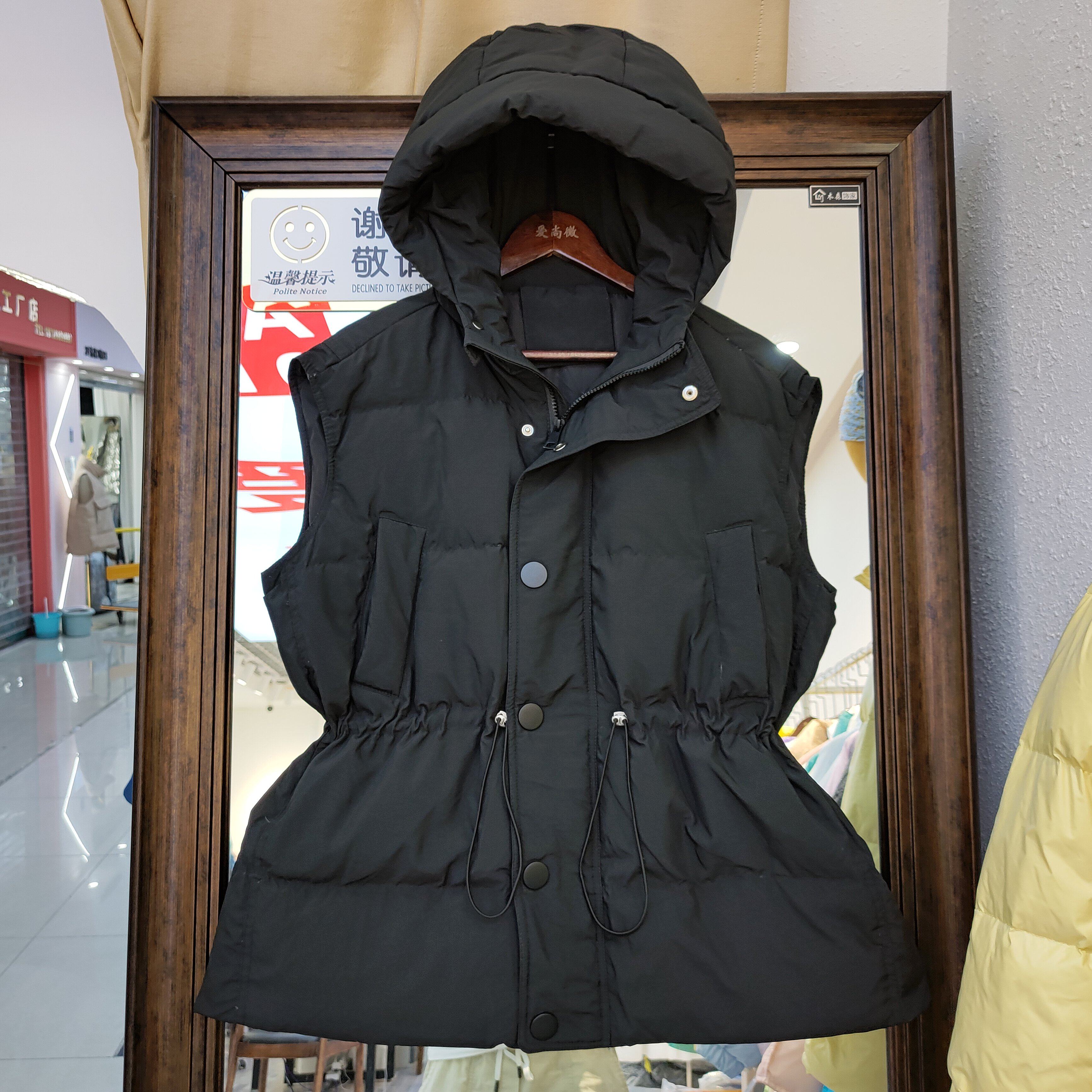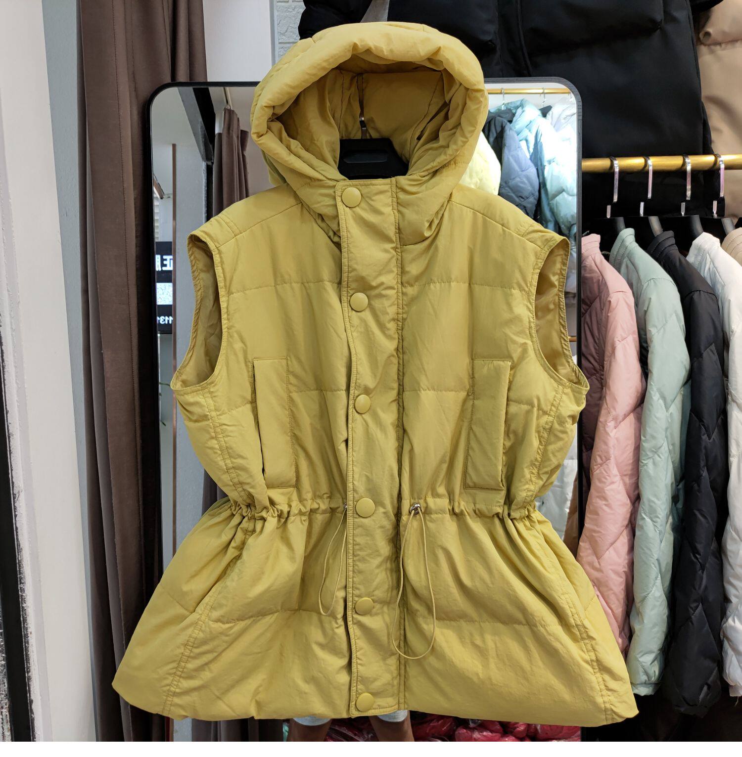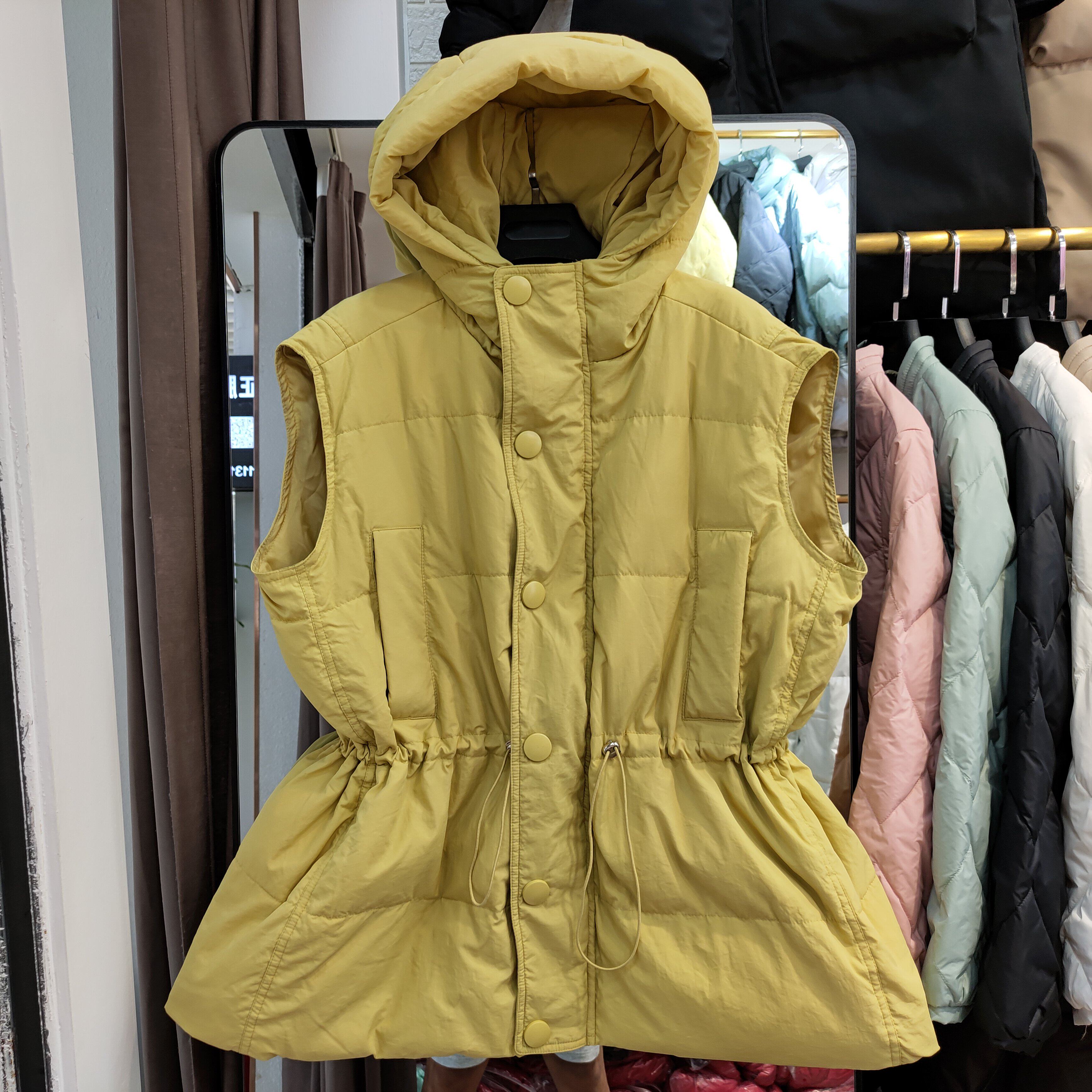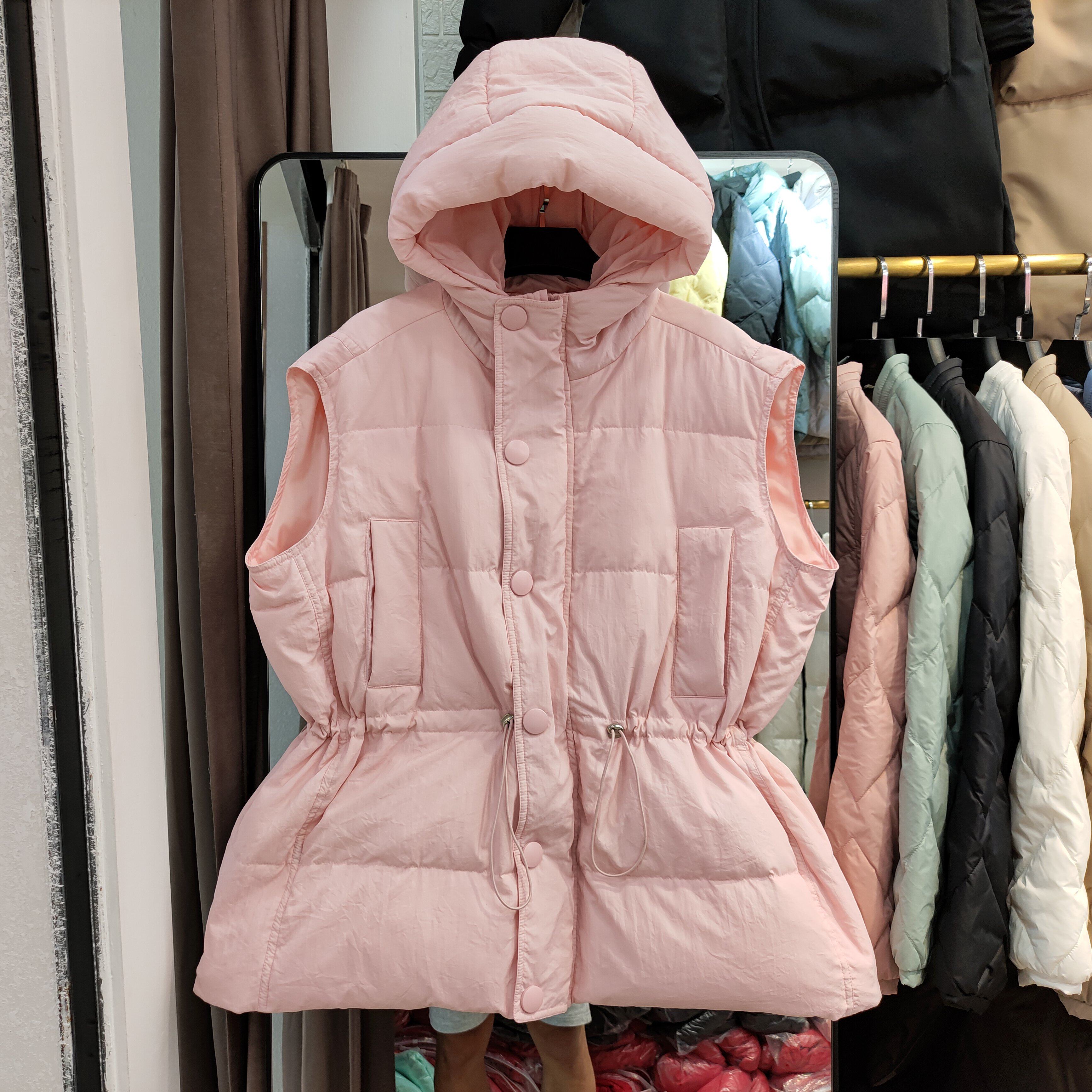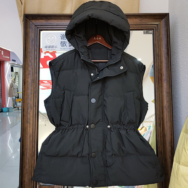 Пуховик, короткий жилет с капюшоном, приталенный бархатный корсет, коллекция 2021, на шнурках, утиный пух