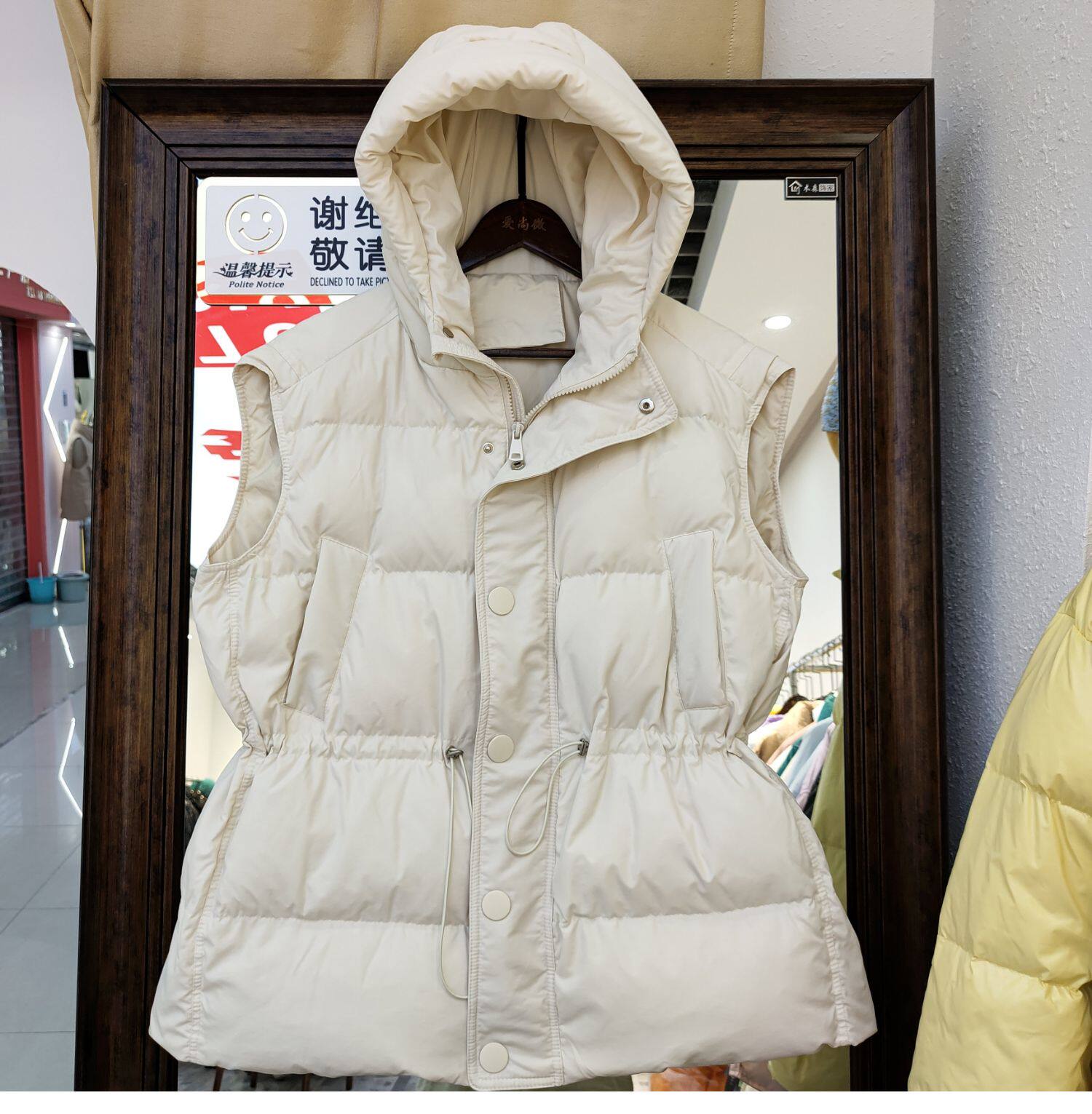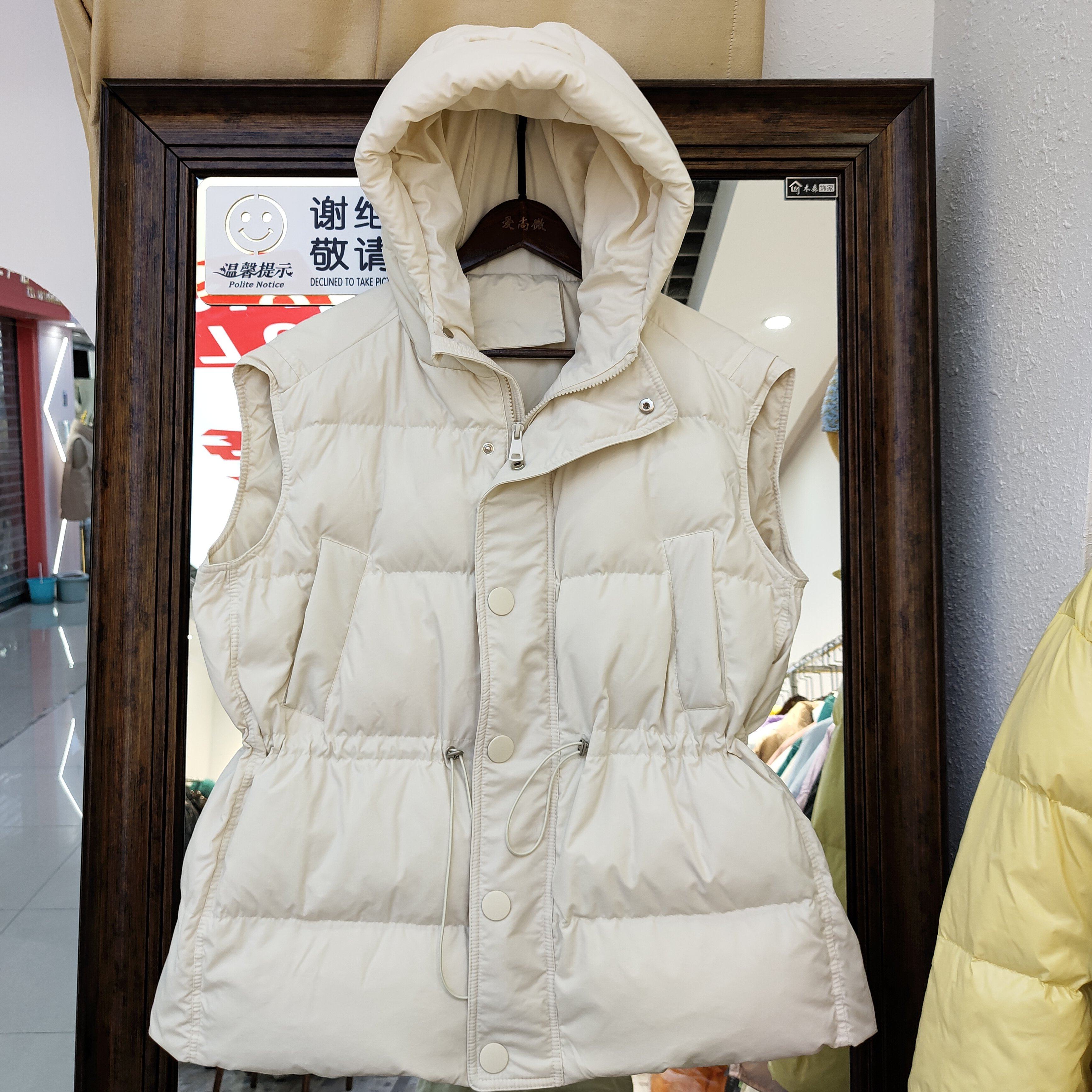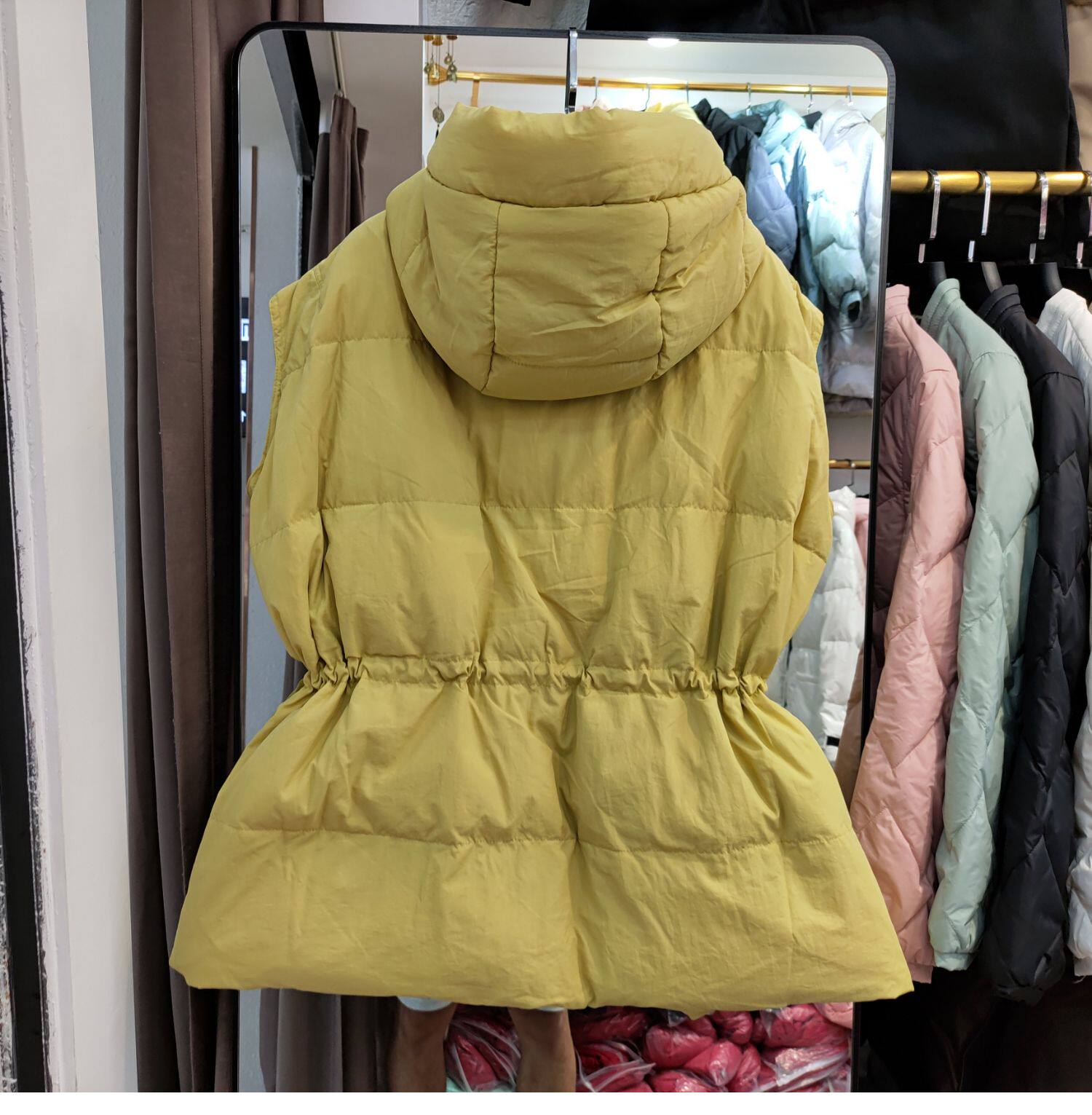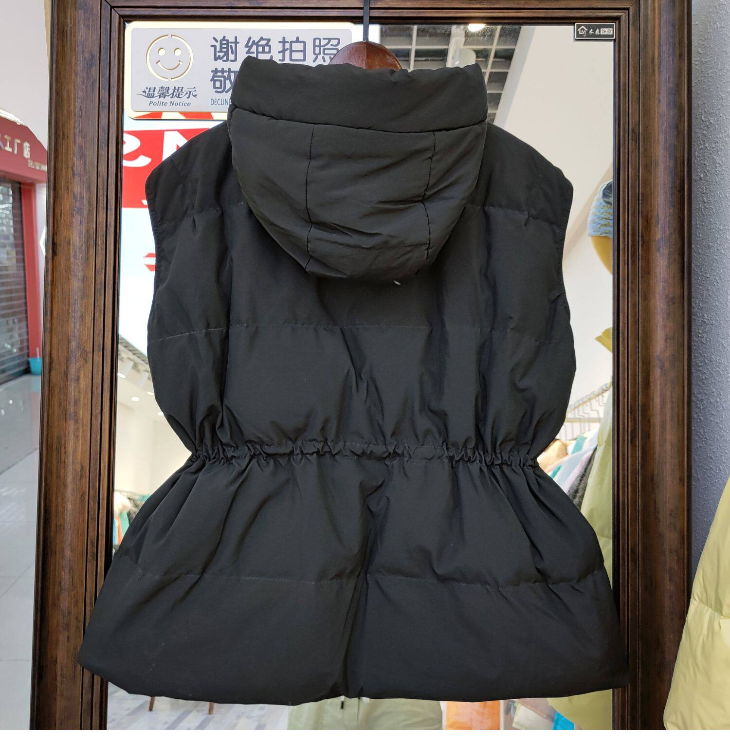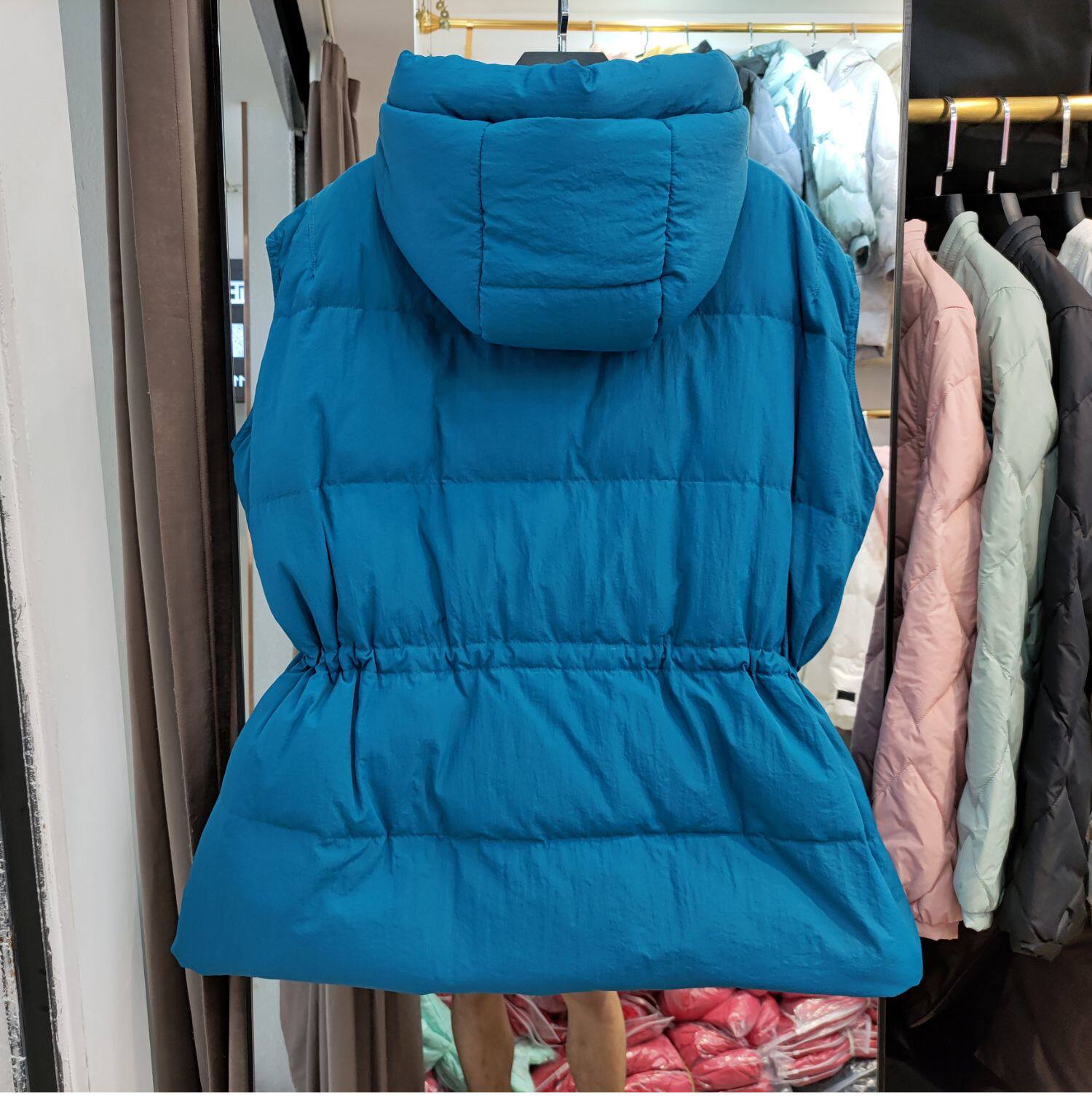 Пуховик, короткий жилет с капюшоном, приталенный бархатный корсет, коллекция 2021, на шнурках, утиный пух