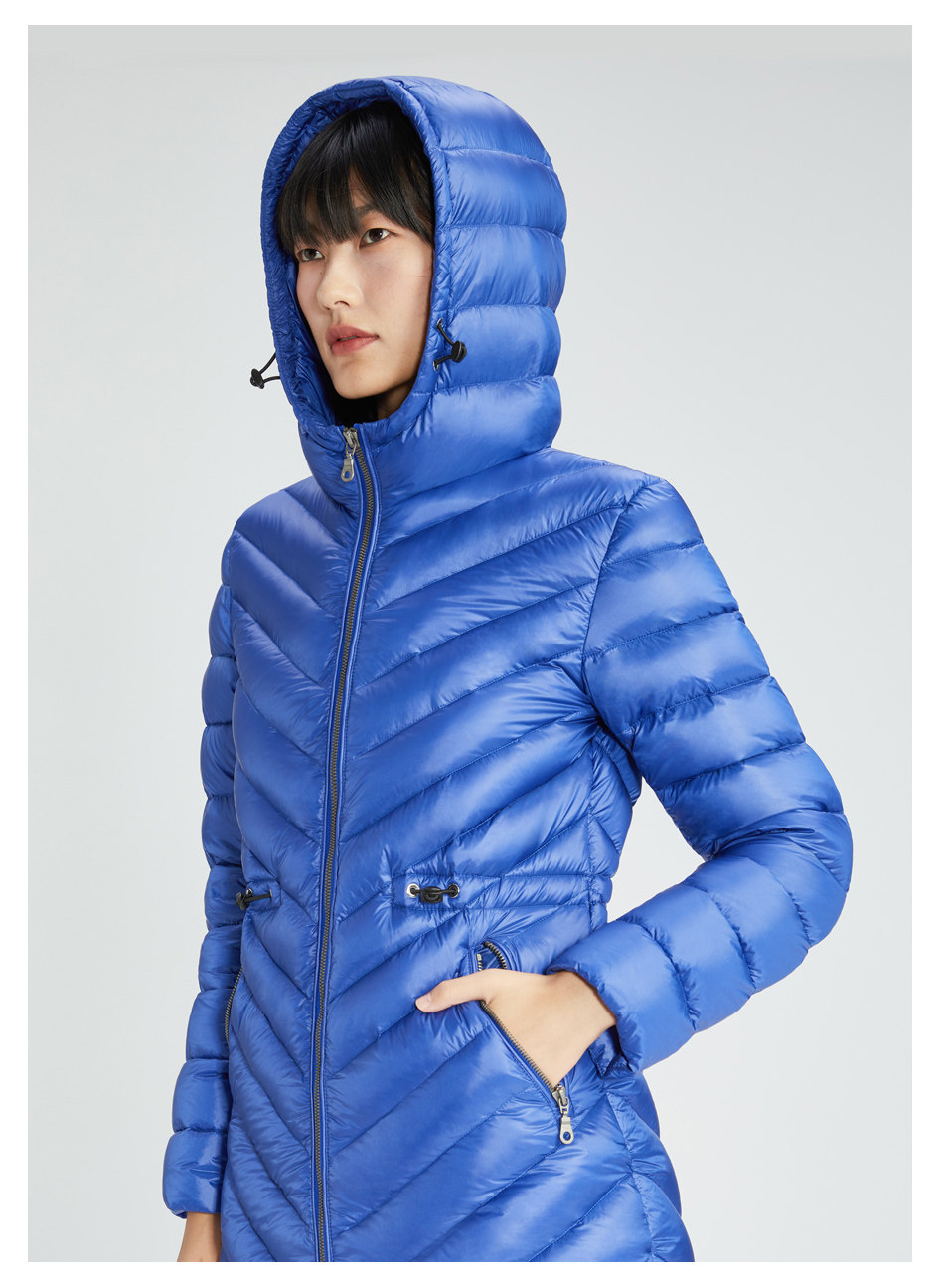 Длинный пуховик, бархатная сверхлегкая легкая и тонкая модная приталенная куртка с капюшоном, средней длины, утиный пух