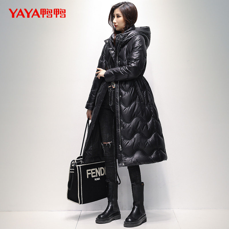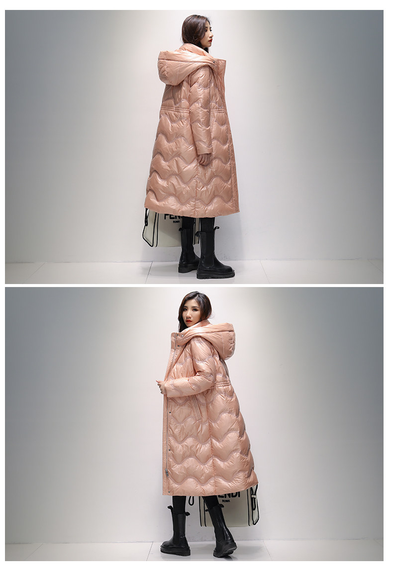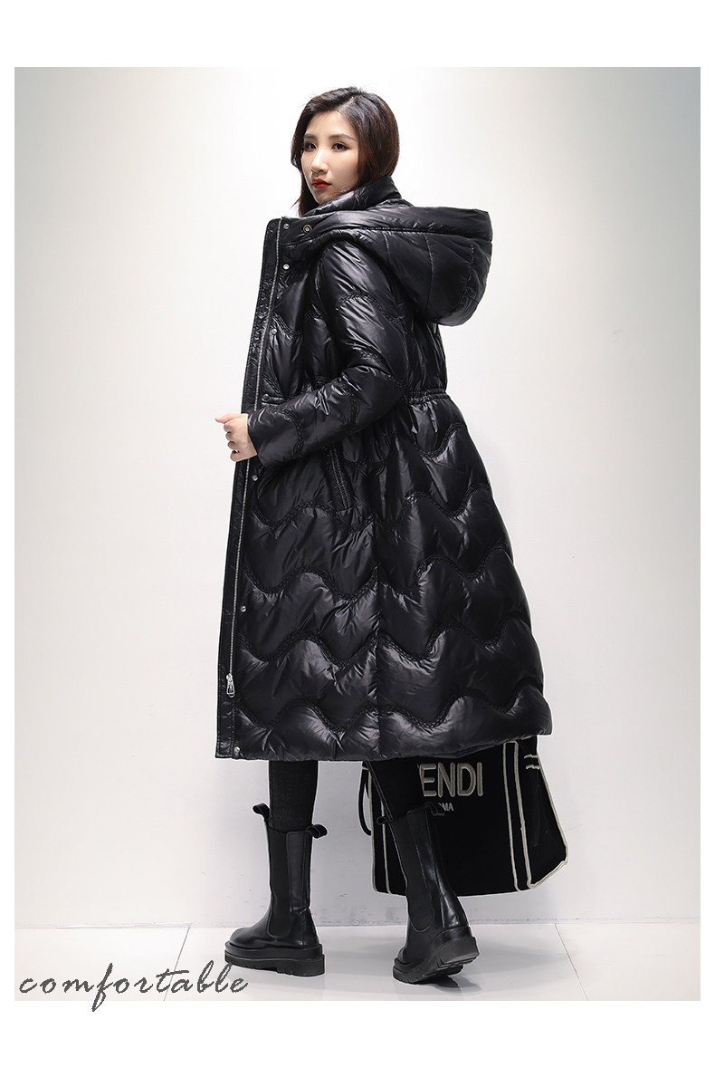 Пуховик, модный приталенный корсет, толстовка с капюшоном, утиный пух, 2021 года, длина макси