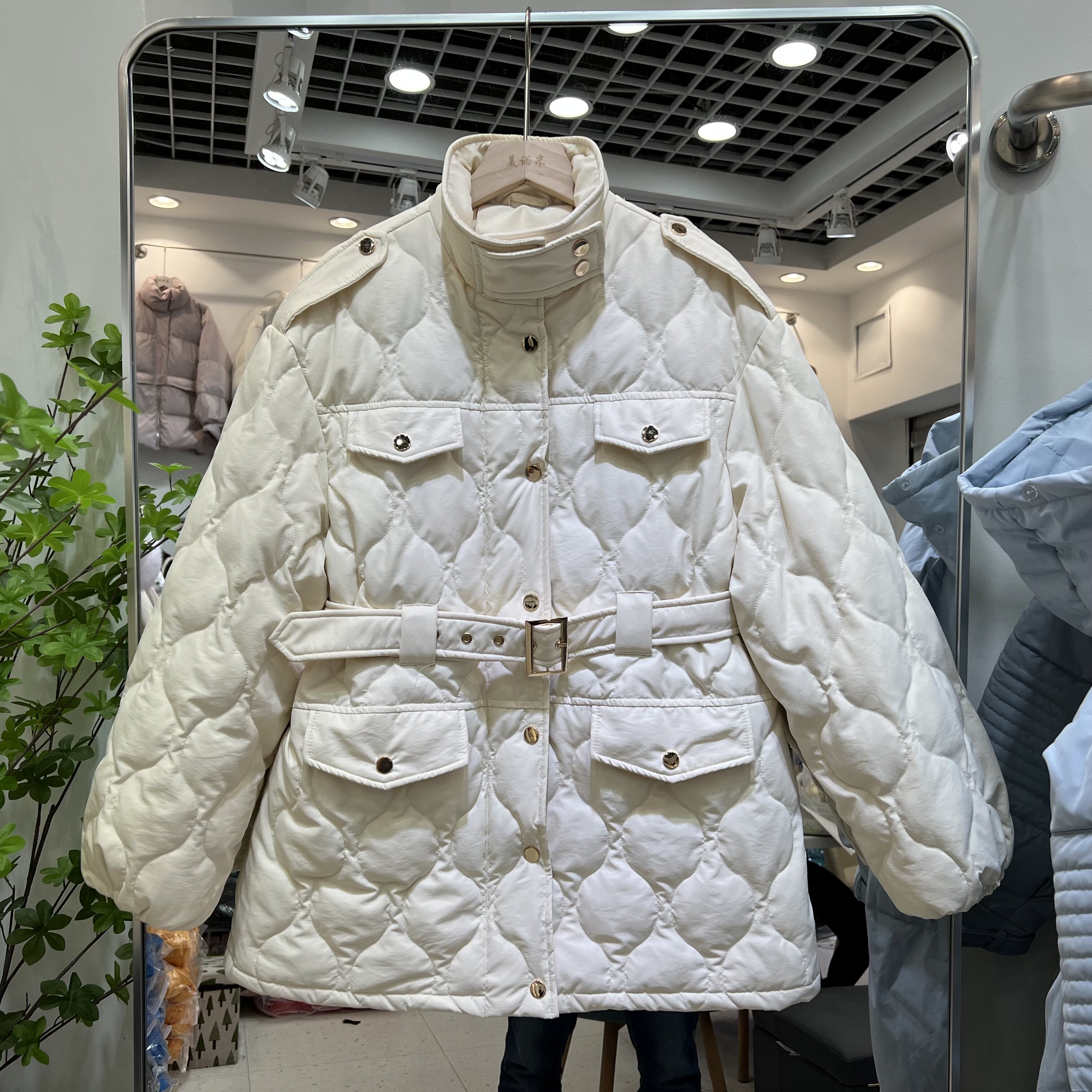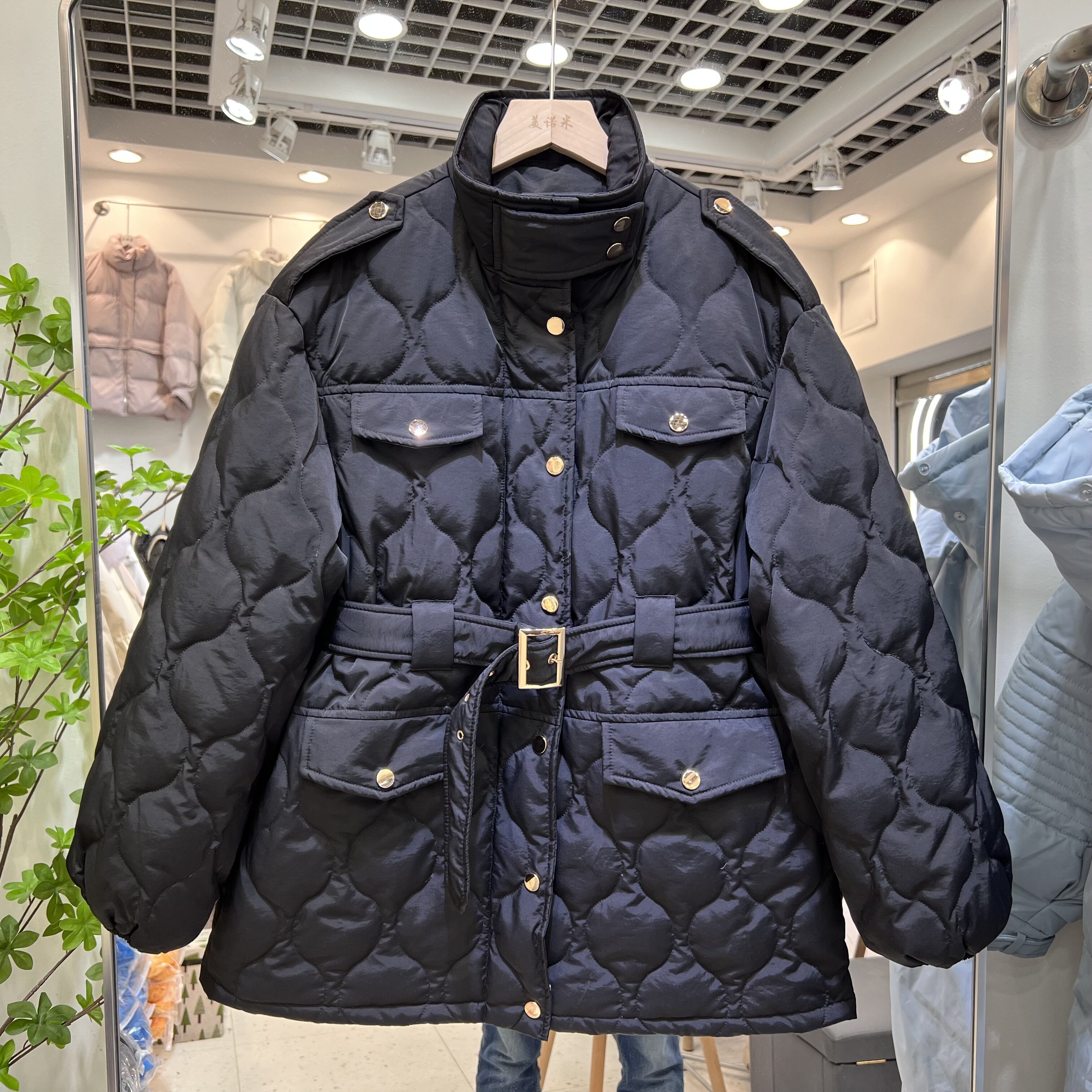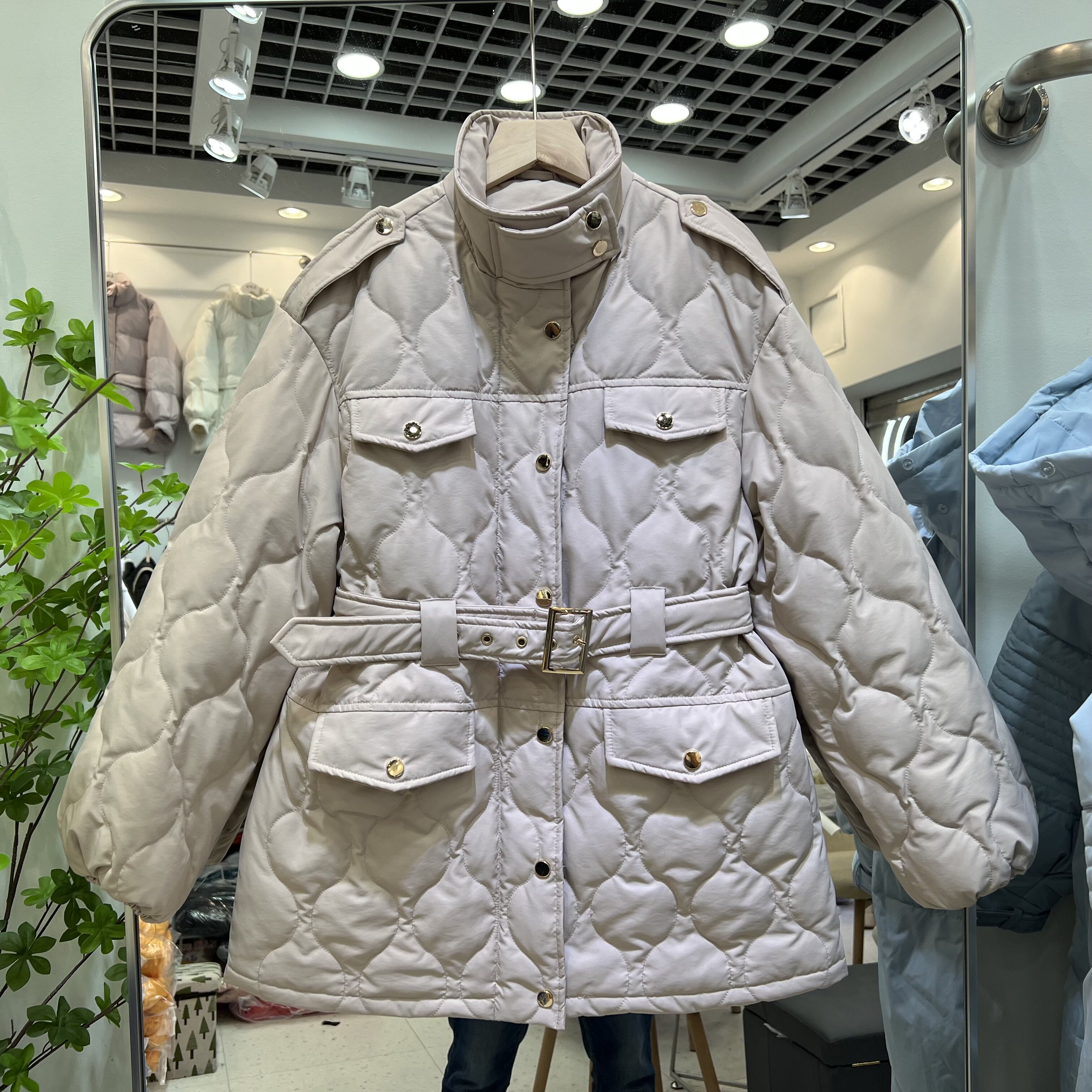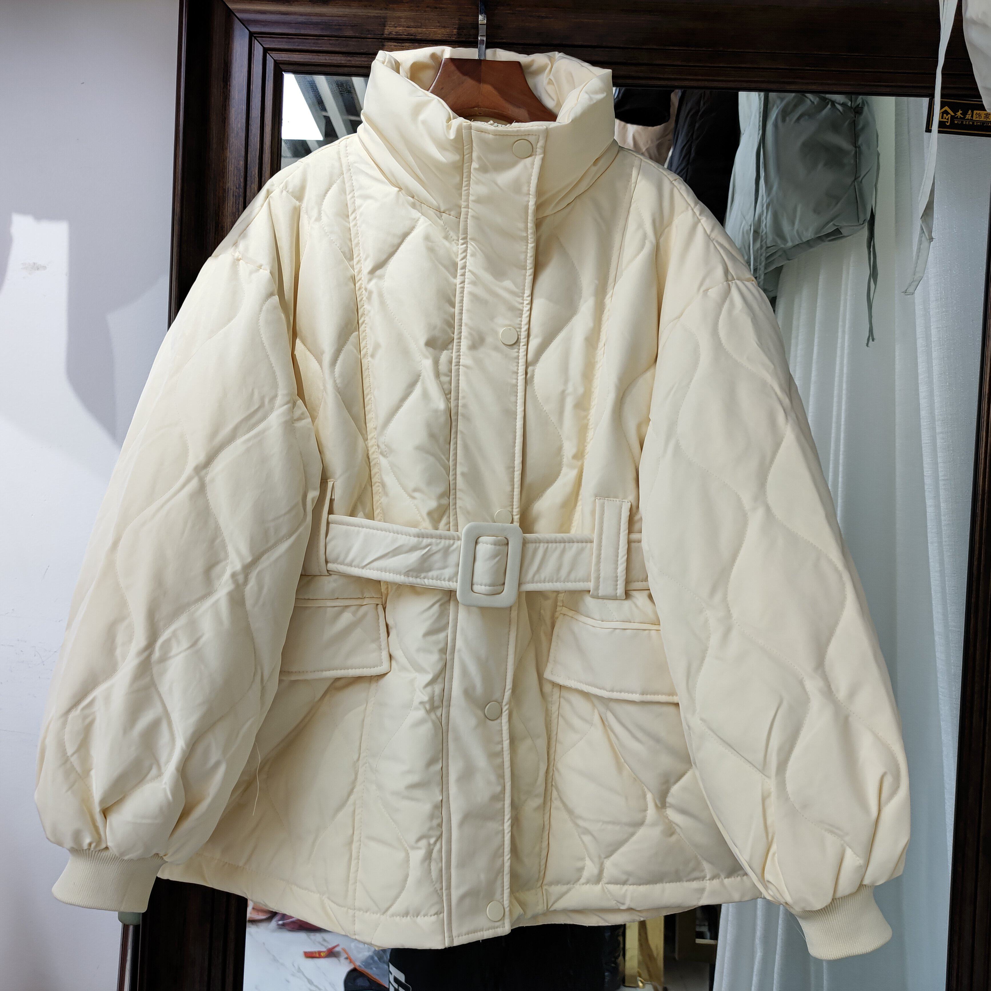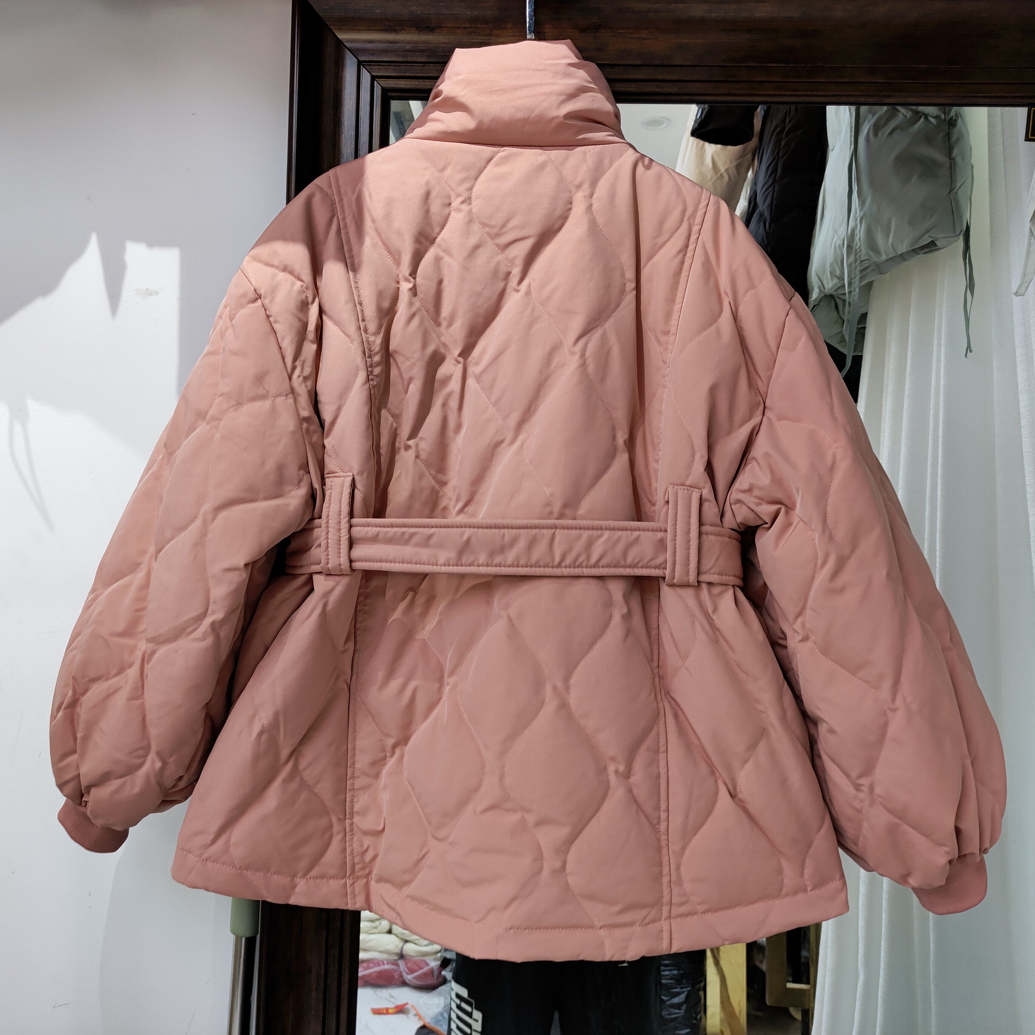 Пуховик, бархатный ремень, куртка, 2021 года, утиный пух, свободный крой