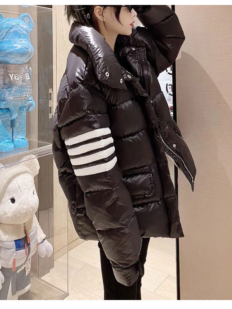 Модный пуховик, глянцевая зимняя куртка, в западном стиле