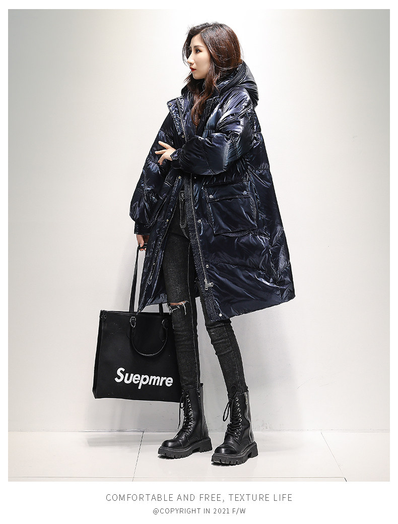 Зимний глянцевый пуховик, толстовка с капюшоном, куртка для отдыха, утиный пух, 2021 года, свободный крой