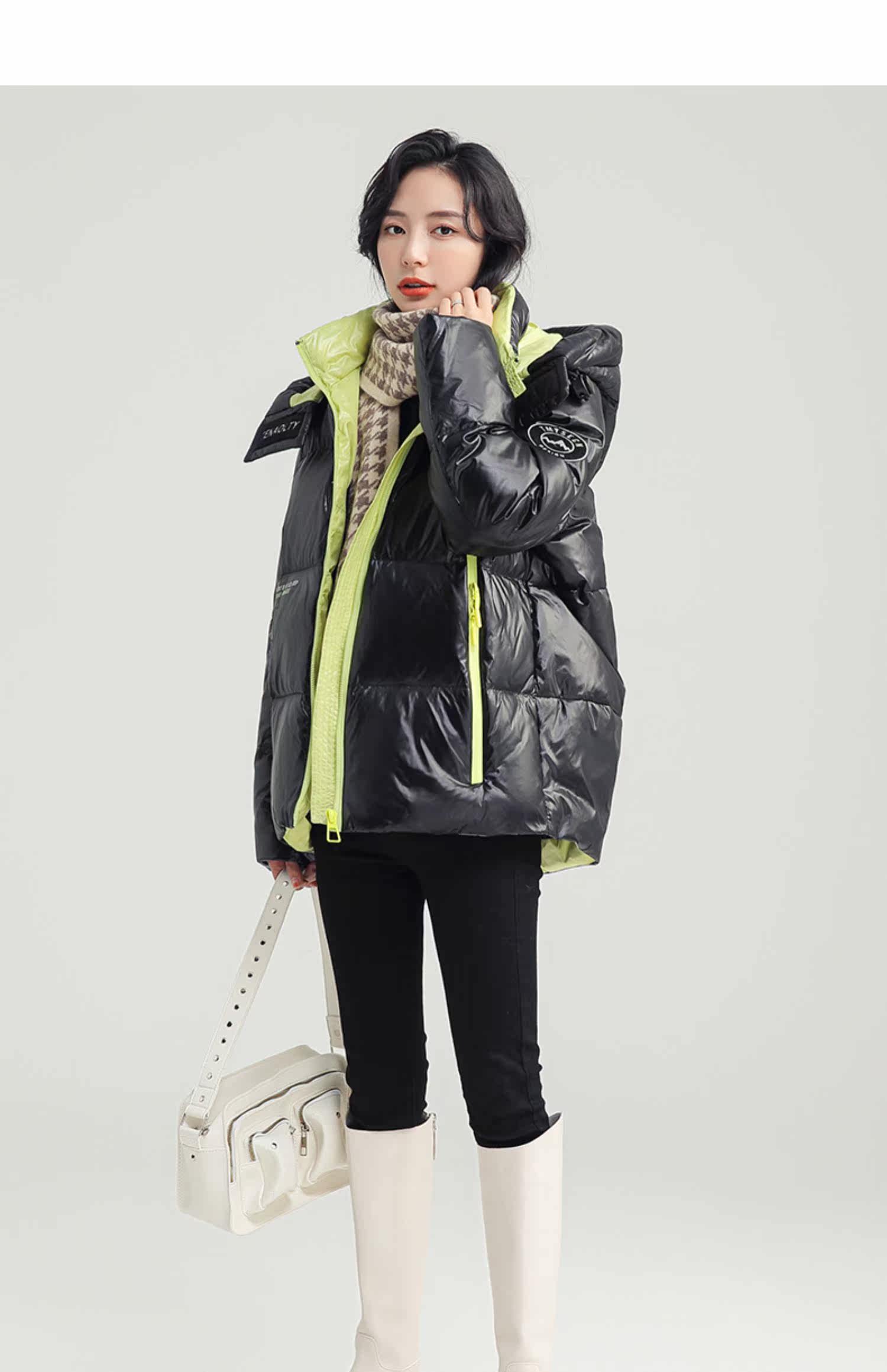 Зимний глянцевый пуховик, куртка для отдыха, утиный пух, коллекция 2021, свободный крой