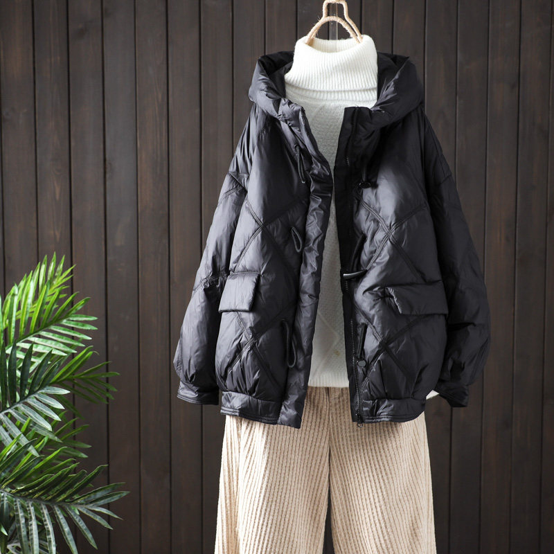 Оригинальная зимняя бархатная куртка, утепленный пуховик, в корейском стиле, утиный пух, оверсайз