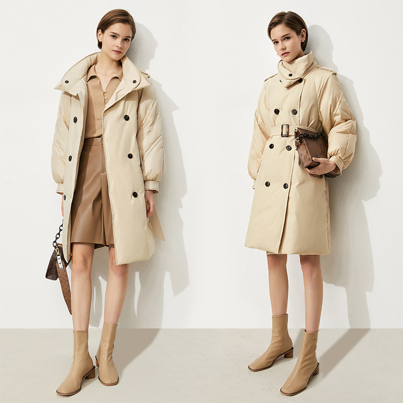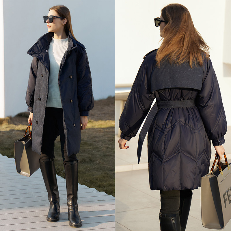 Amii Зимний пуховик, плащ, длинная куртка, свободный крой, утиный пух, подходит для подростков, средней длины