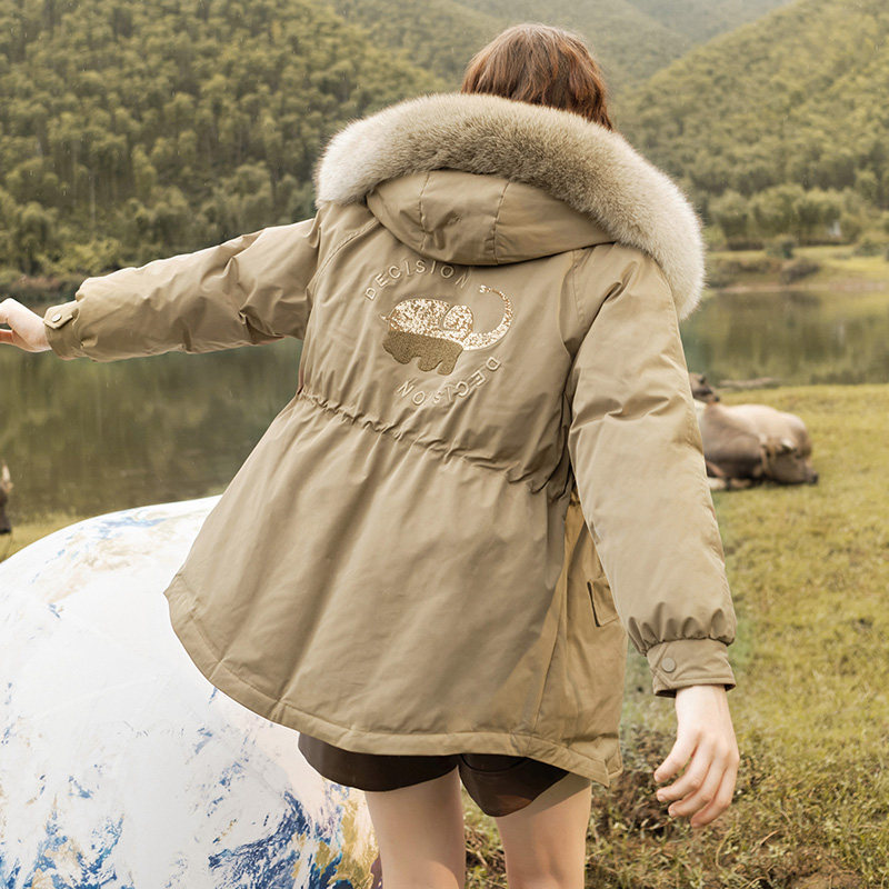 Зимний пуховик, бархатный корсет, плащ, средней длины, утиный пух, с вышивкой