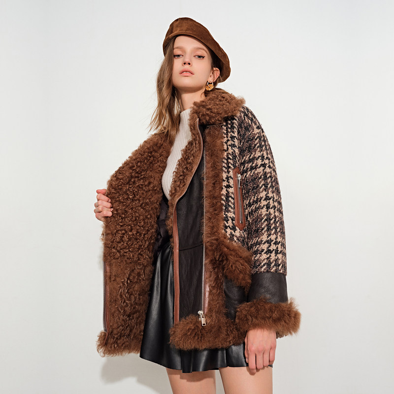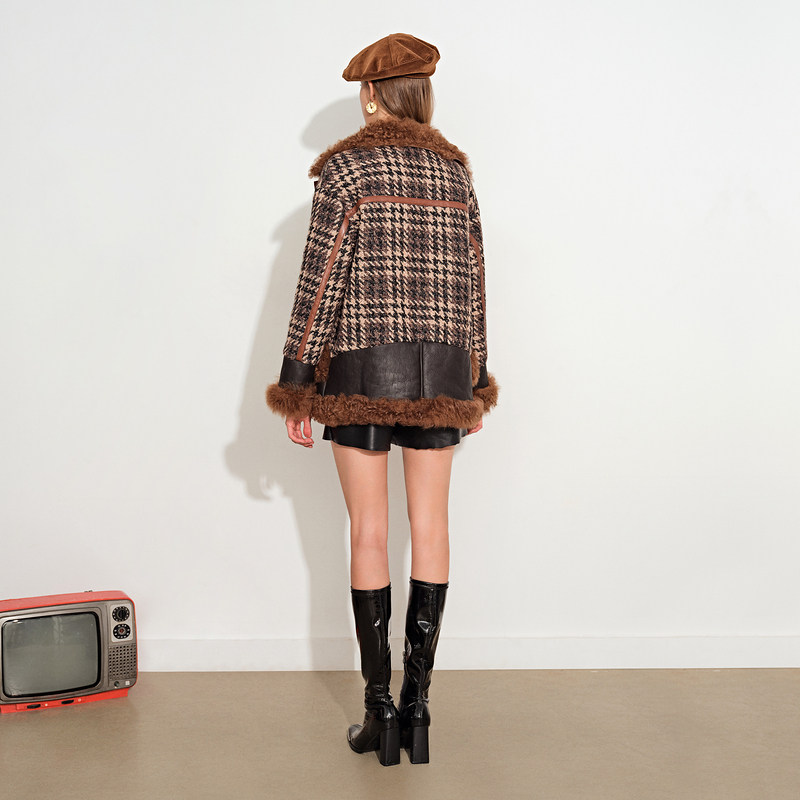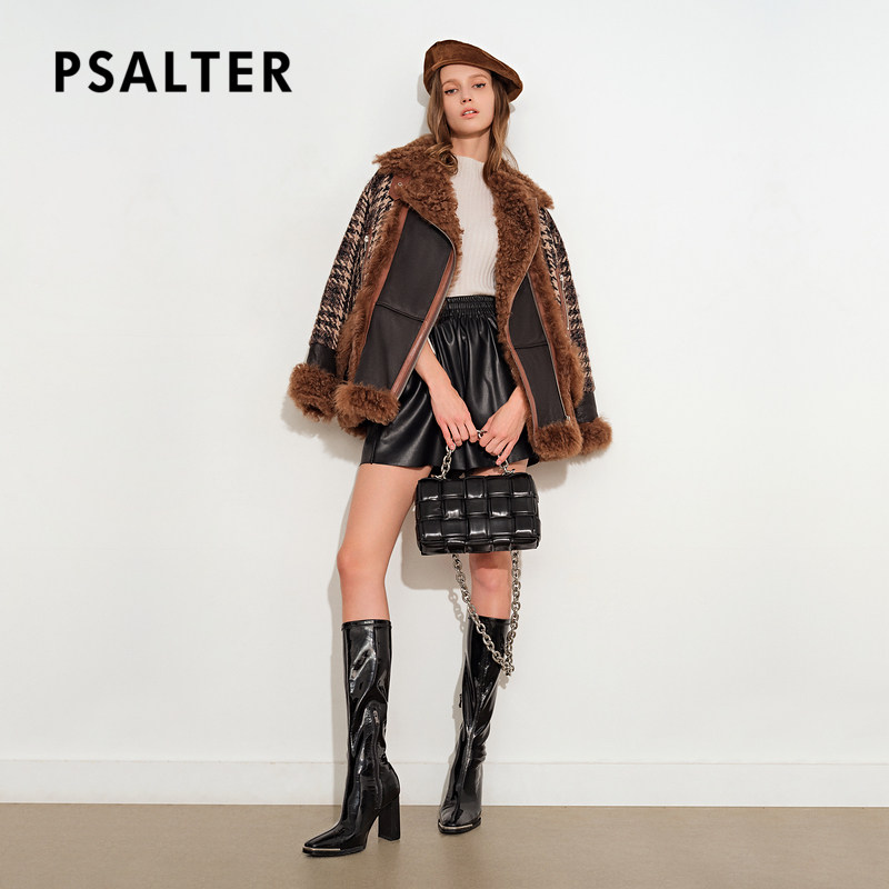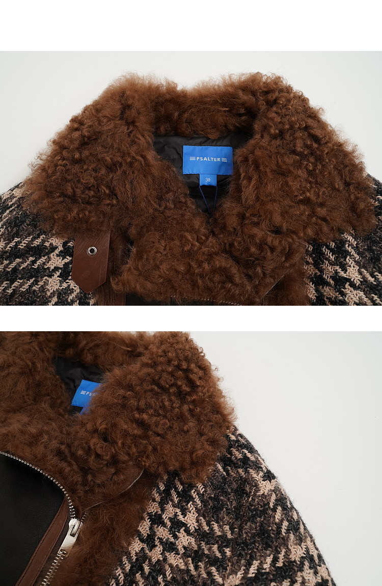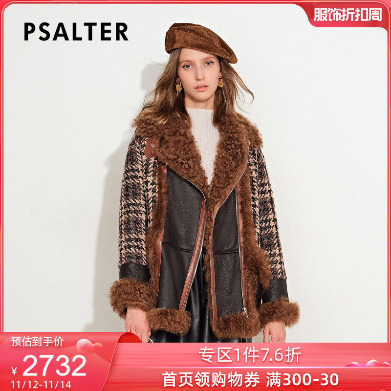 [Taobao] [Cold Wave] Psalm, женская зимняя новинка 2021 года, твидовая куртка на белом утином пуху с лацканами из овечьей шерсти, меховая куртка
