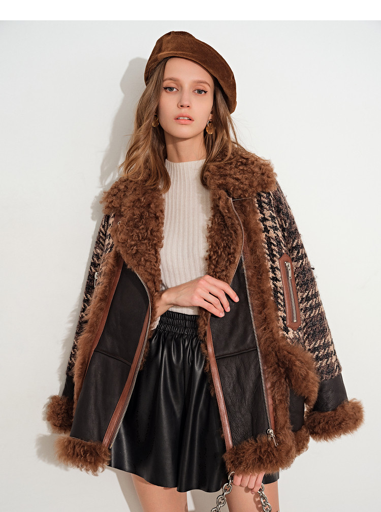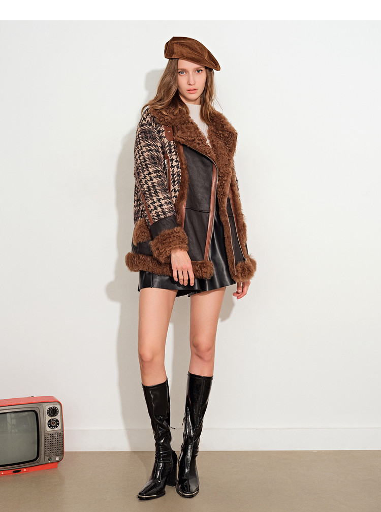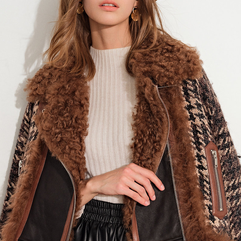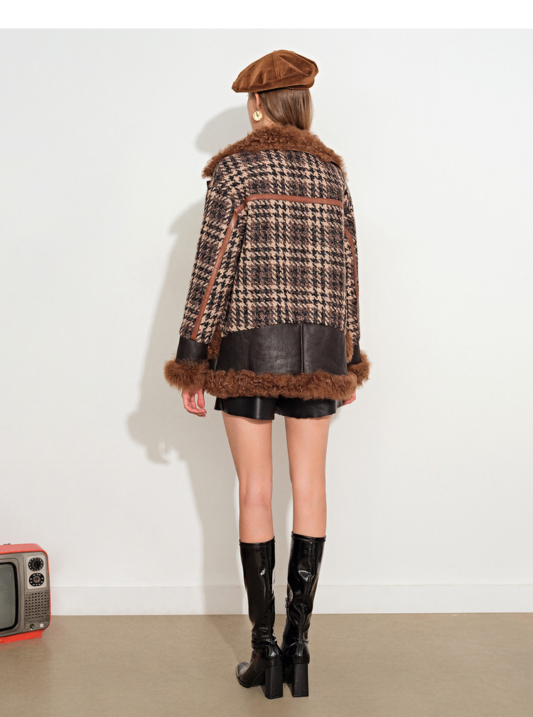 [Taobao] [Cold Wave] Psalm, женская зимняя новинка 2021 года, твидовая куртка на белом утином пуху с лацканами из овечьей шерсти, меховая куртка