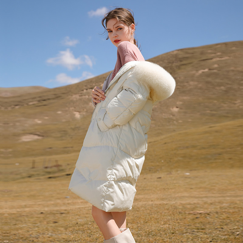 Пуховик, зимний модный бежевый бархатный корсет, куртка, средней длины, 2022 года, утиный пух