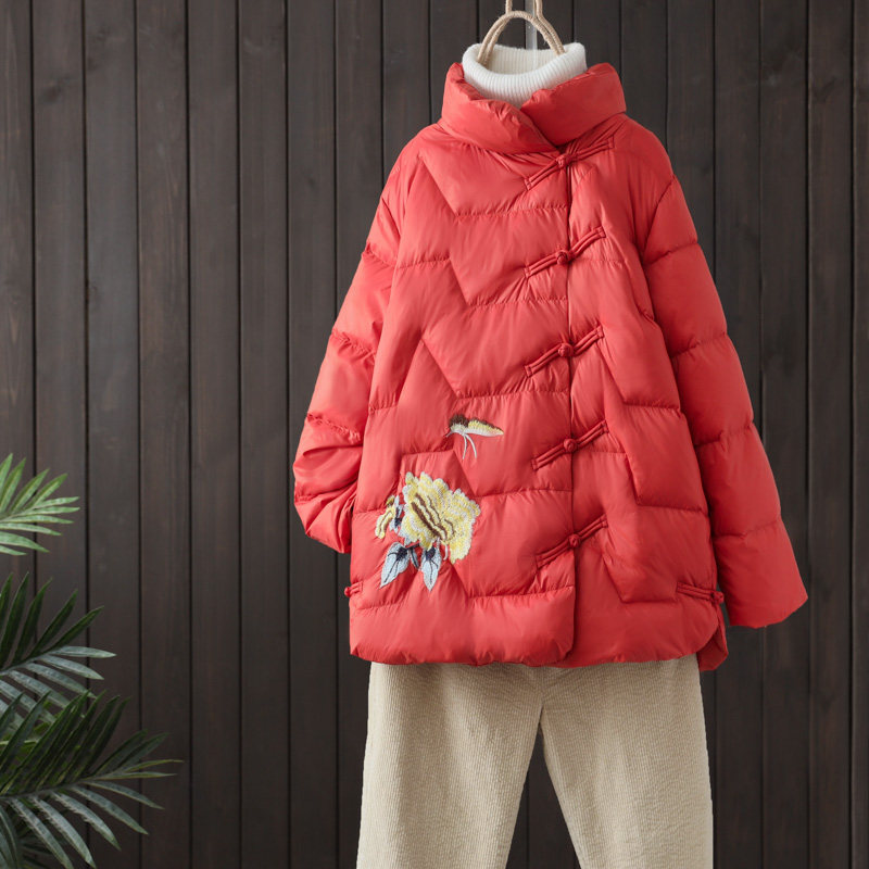 Зимняя ретро куртка, лонгслив, пуховик, коллекция 2022, с вышивкой, увеличенная толщина