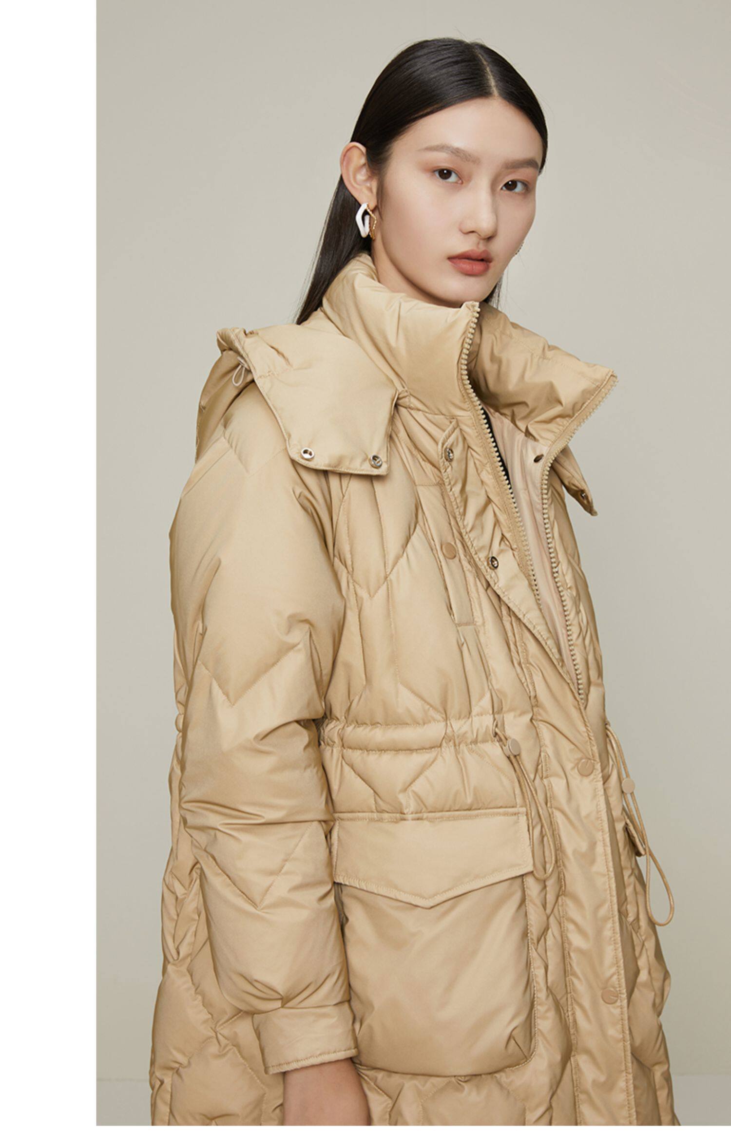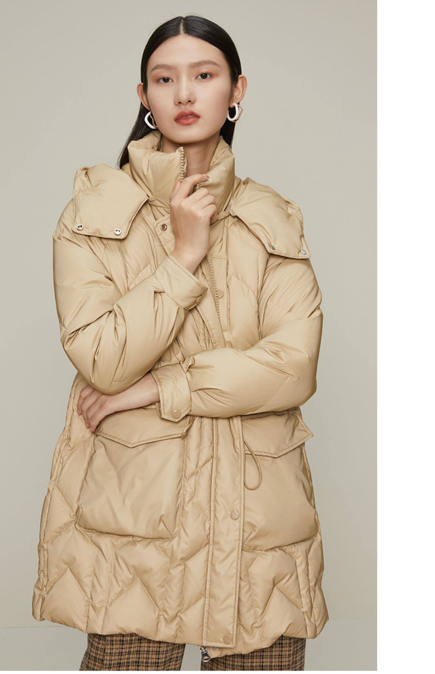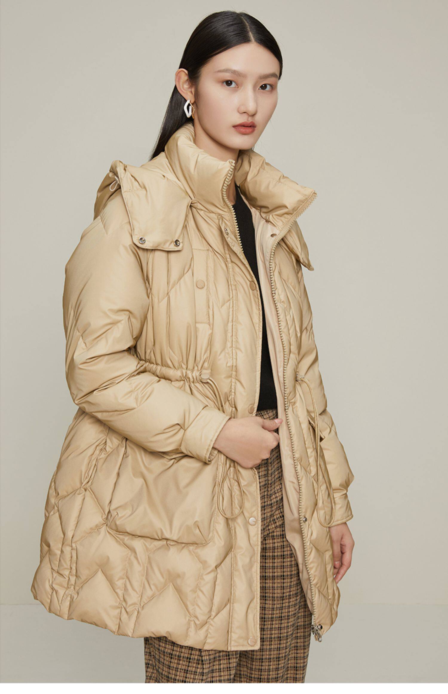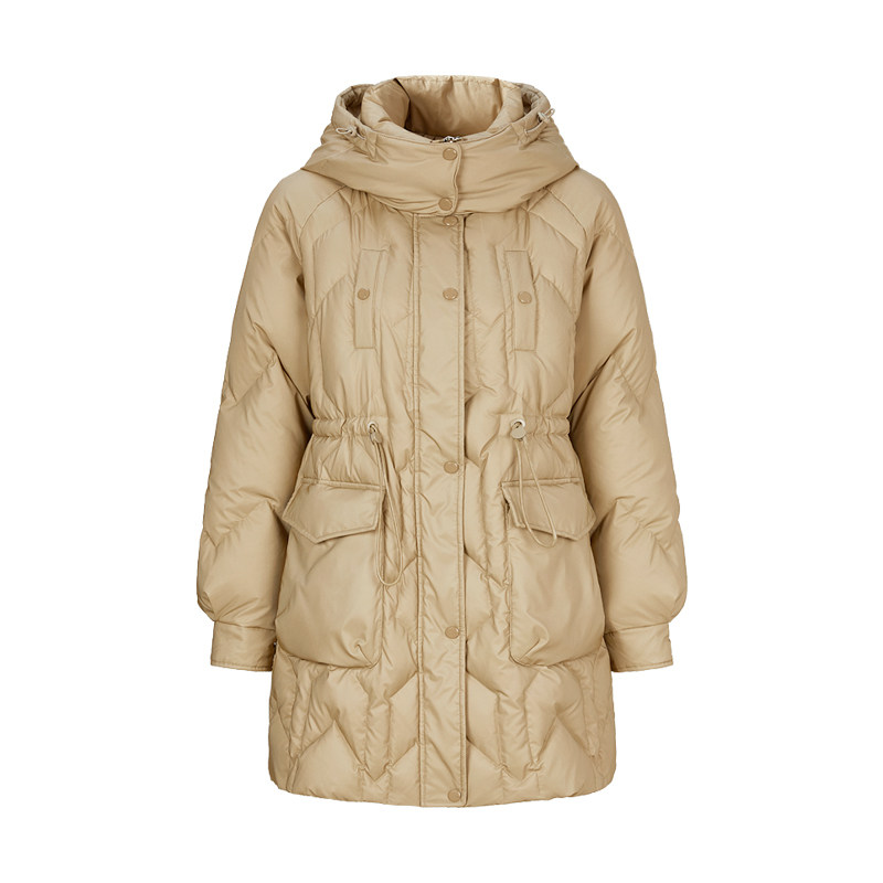 Желтовато-коричневый зимний легкий и тонкий пуховик, толстовка с капюшоном с молнией