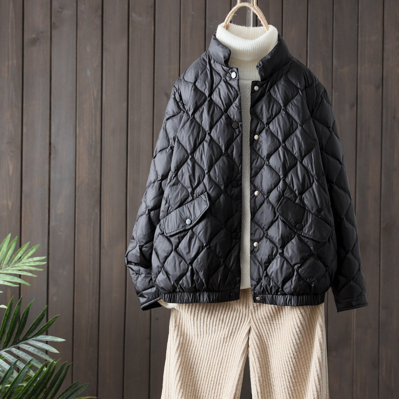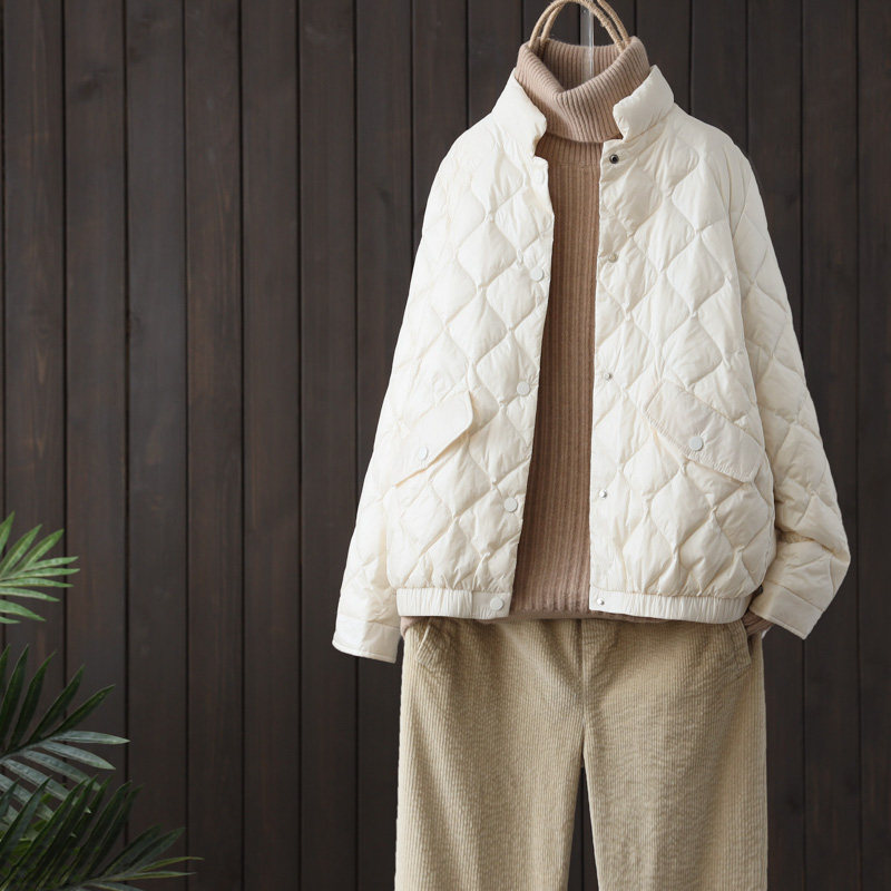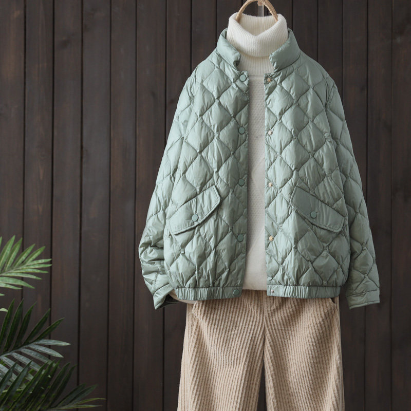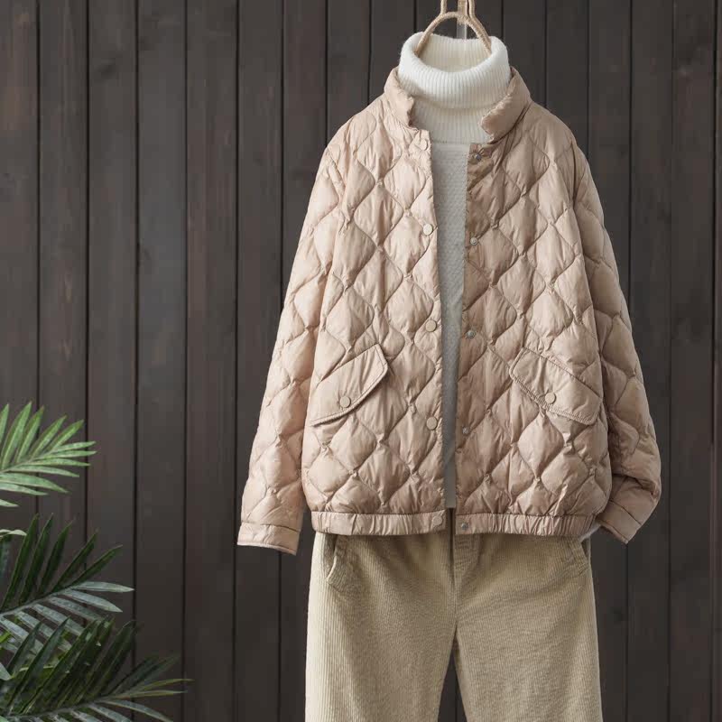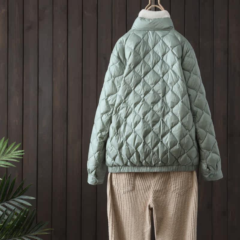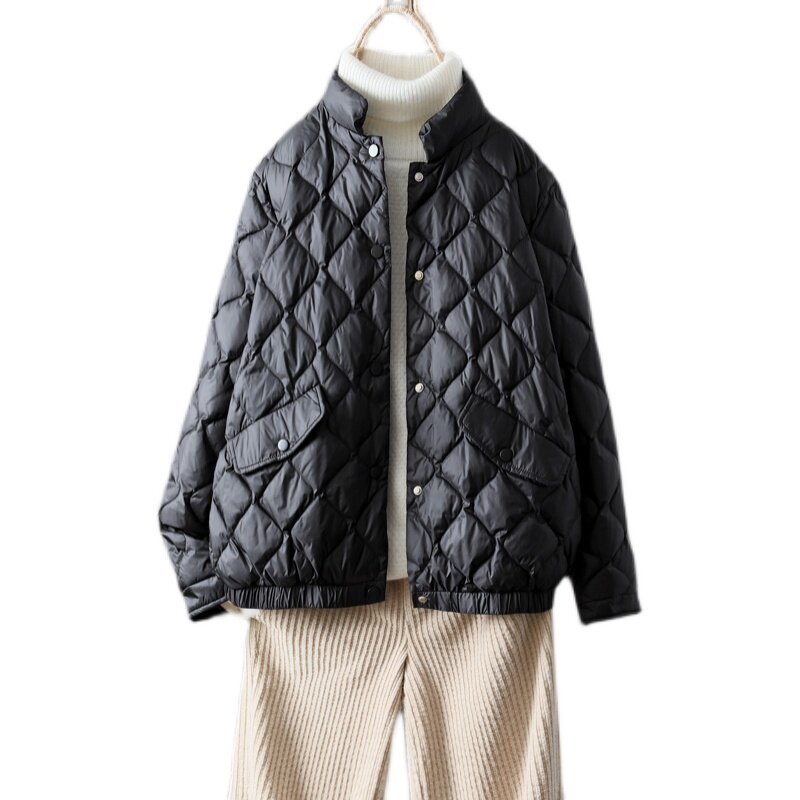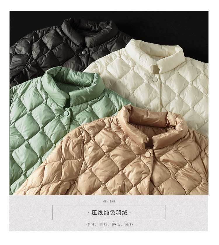 Зимняя бархатная легкая и тонкая куртка для отдыха с пухом, высокий воротник, утиный пух
