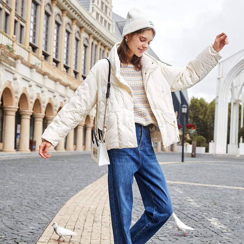 Зимний небольшой пуховик, бархатная бежевая куртка, 2021 года, подходит для подростков, утиный пух