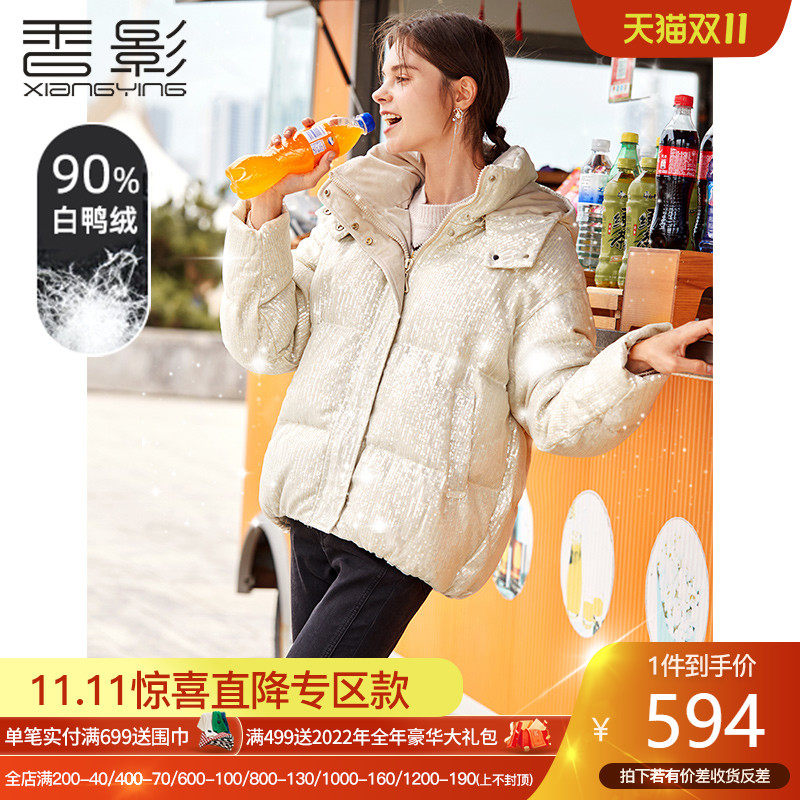 Зимний модный пуховик, бархатная глянцевая куртка с капюшоном, 2022 года, утиный пух