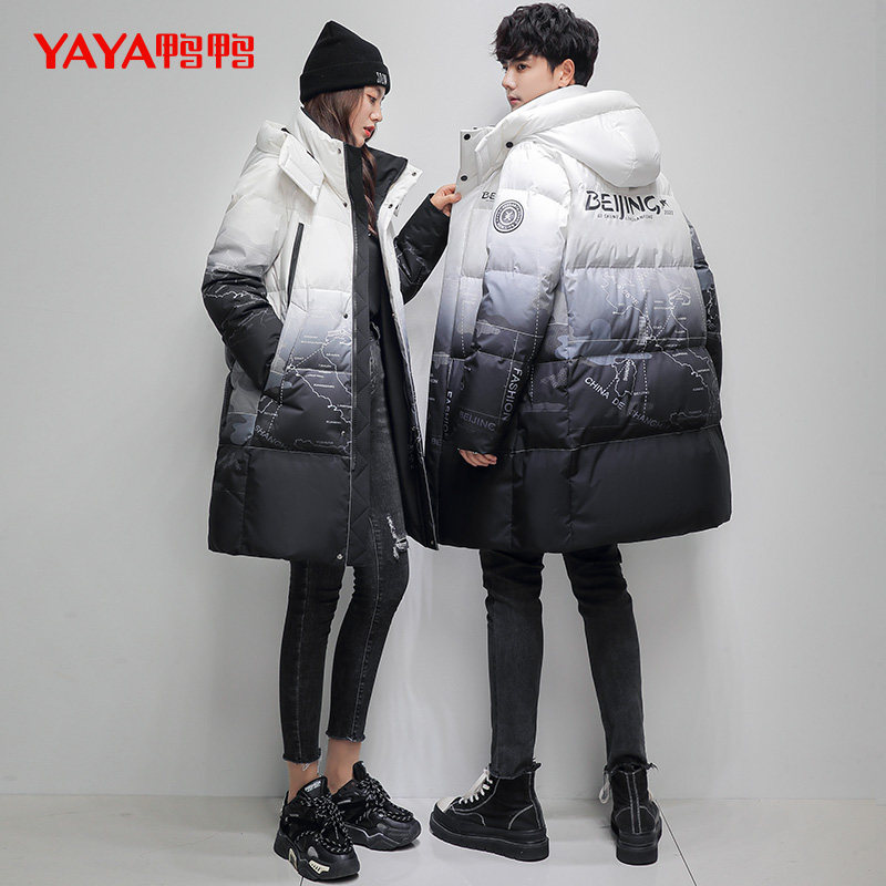 Пуховик, зимняя длинная модная куртка подходит для мужчин и женщин, для влюбленных, градиент, коллекция 2021, средней длины, предпродажа