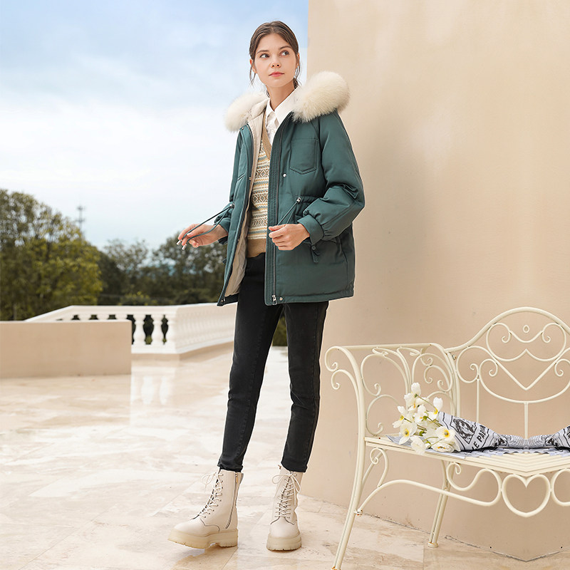 Пуховик, зимняя бархатная длинная куртка, 2021 года, утиный пух, средней длины