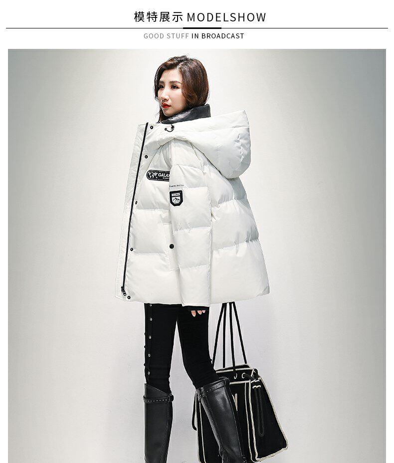 Пуховик, зимняя длинная трендовая толстовка с капюшоном, куртка, 2021 года, средней длины, оверсайз