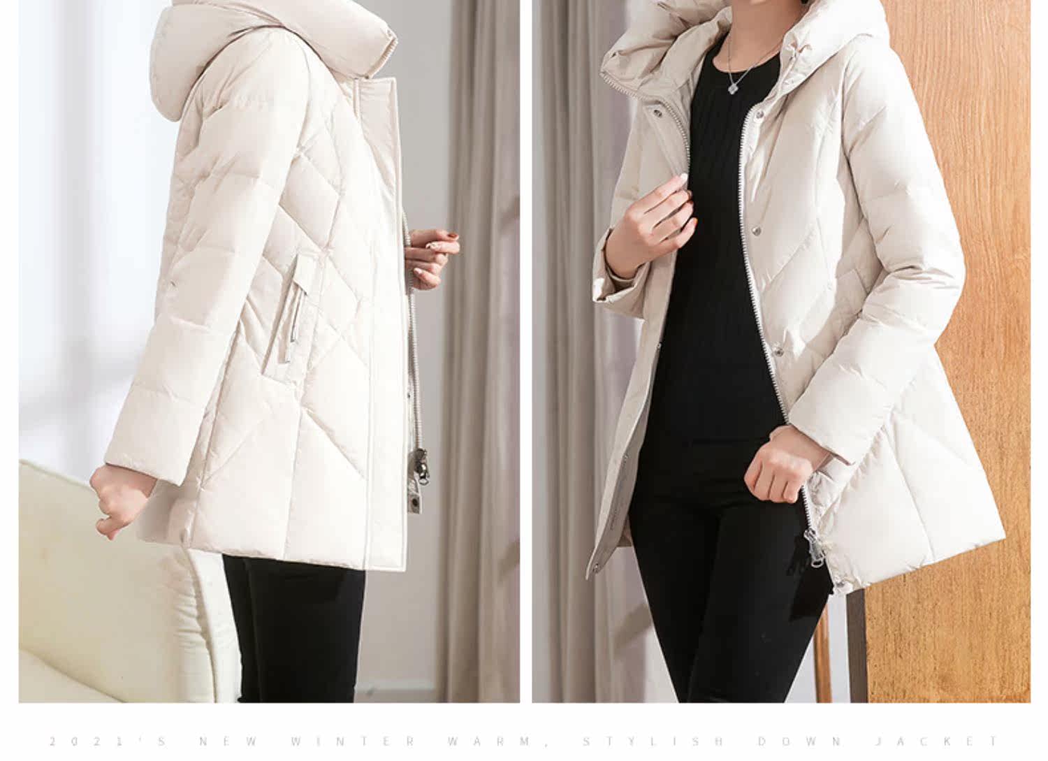 Пуховик, демисезонная длинная толстовка с капюшоном, куртка, 2021 года, средней длины, в корейском стиле