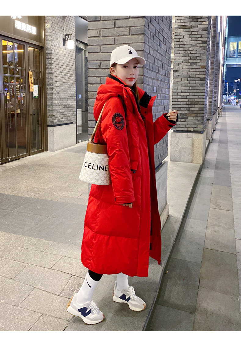 Пуховик, длинная толстовка с капюшоном, утиный пух, 2021 года, средней длины, длина макси, оверсайз