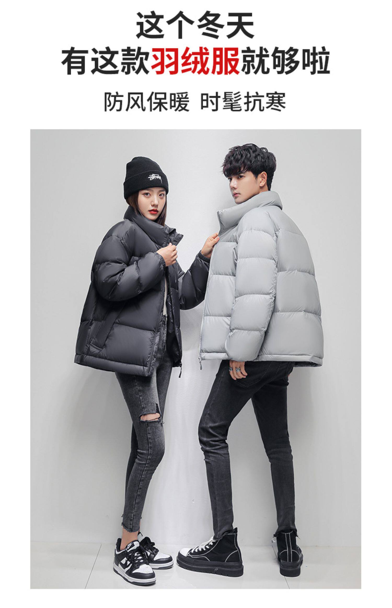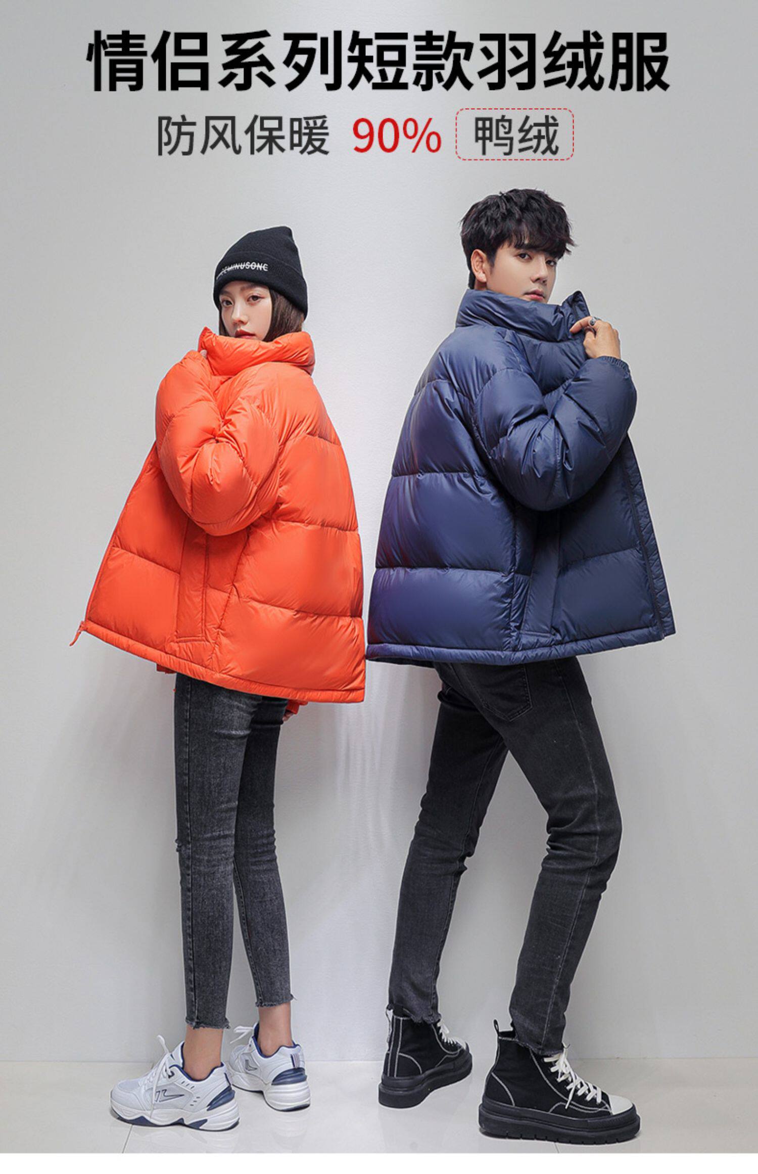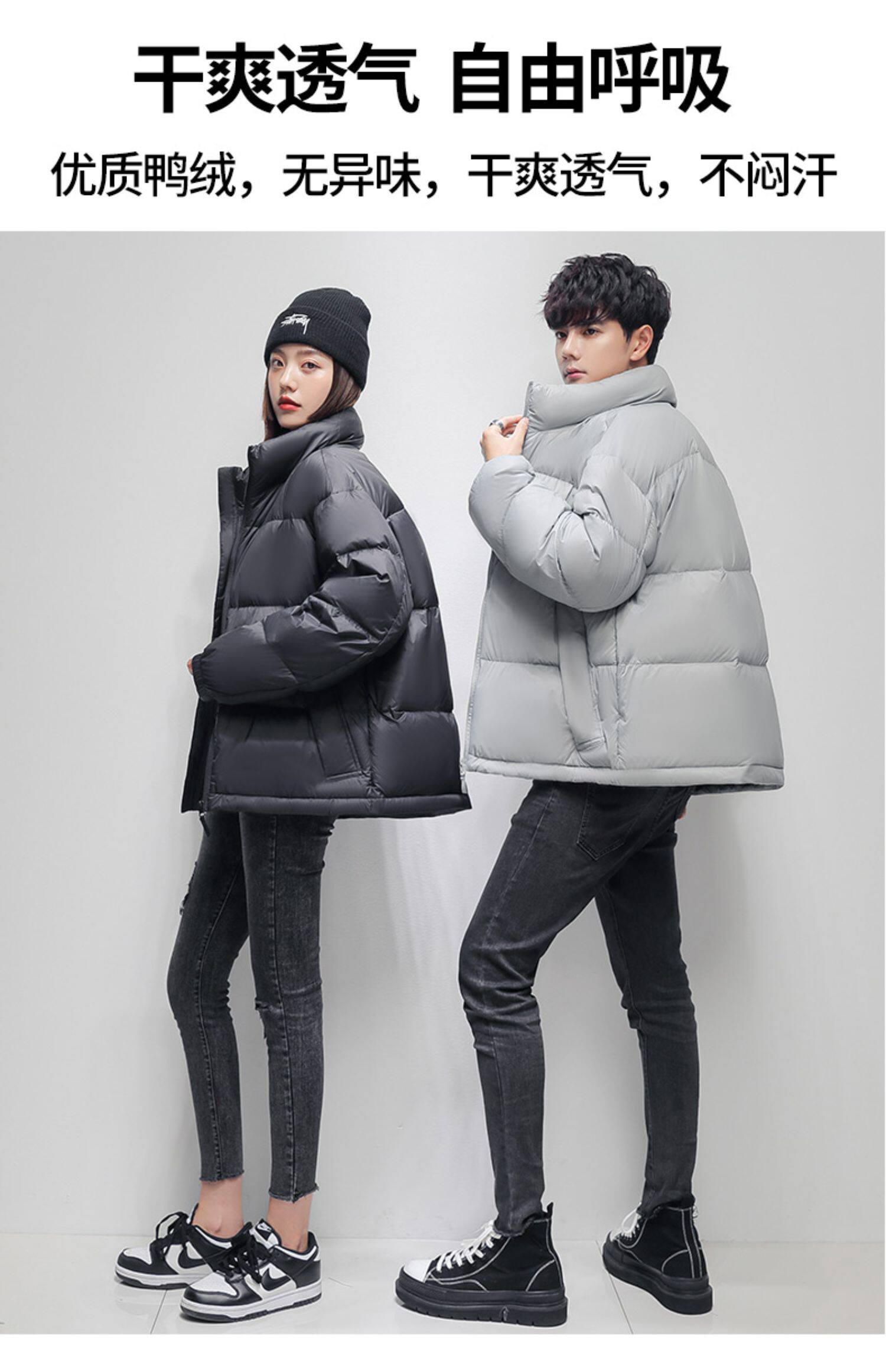 Короткий зимний трендовый пуховик для отдыха подходит для мужчин и женщин, утиный пух, для влюбленных, 2021 года