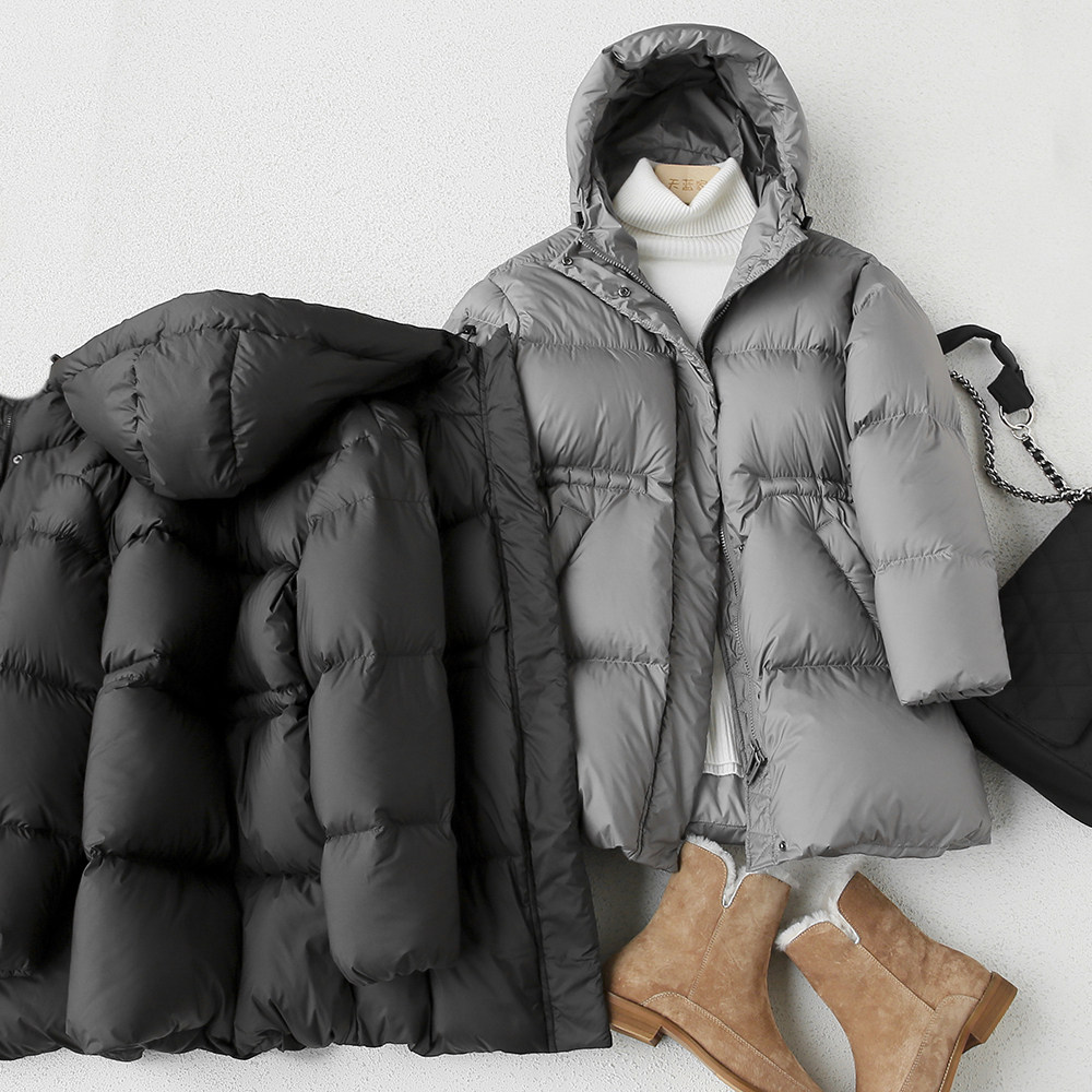 Японский элитный длинный пуховик, приталенный корсет, пальто с пухом, гусиный пух, средней длины, увеличенная толщина