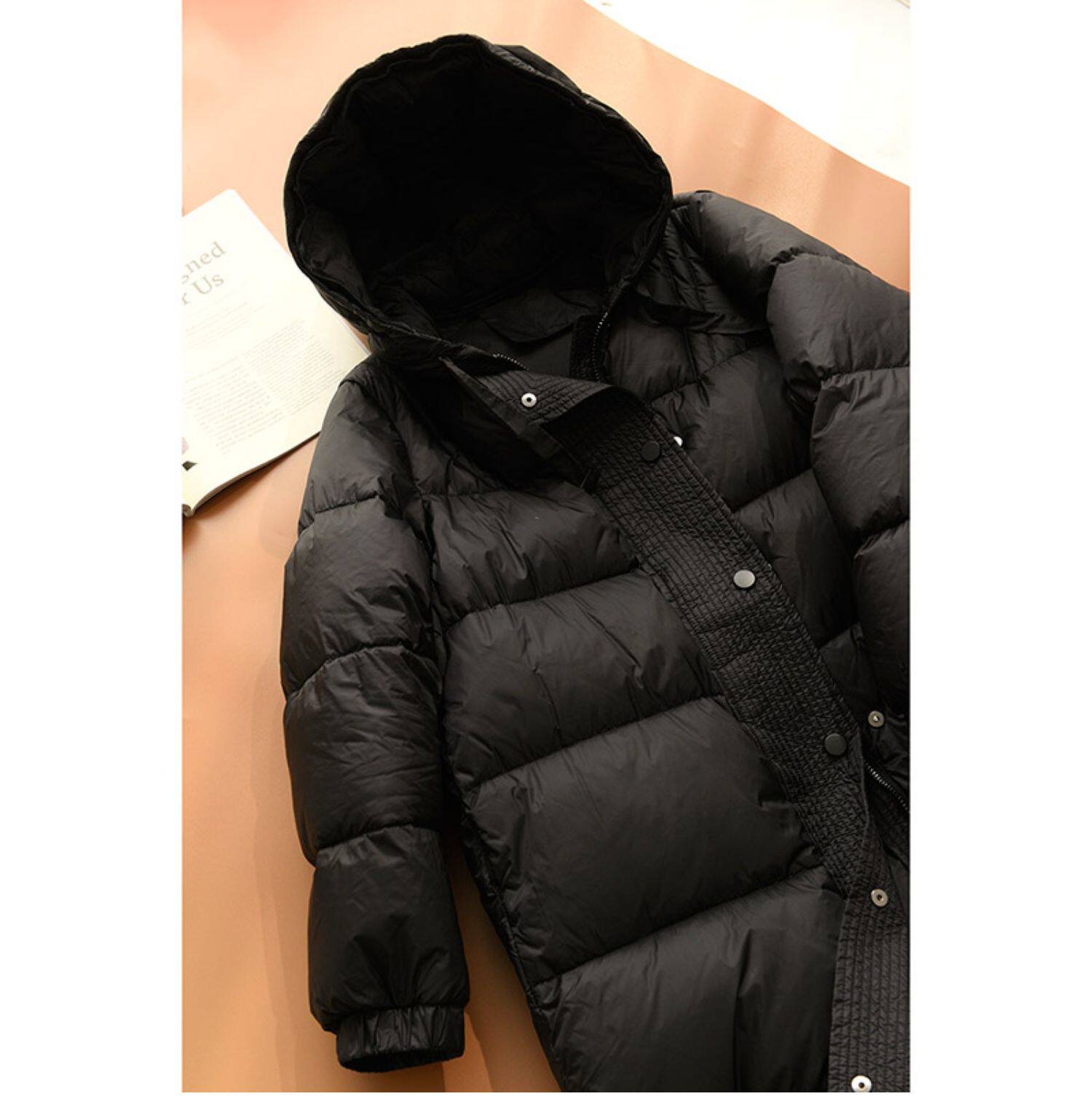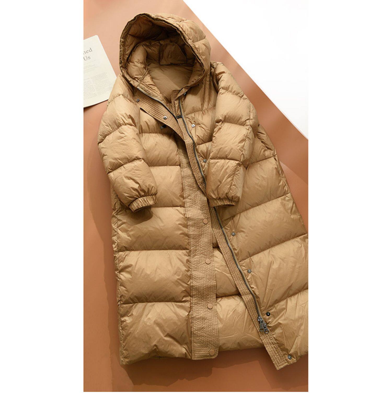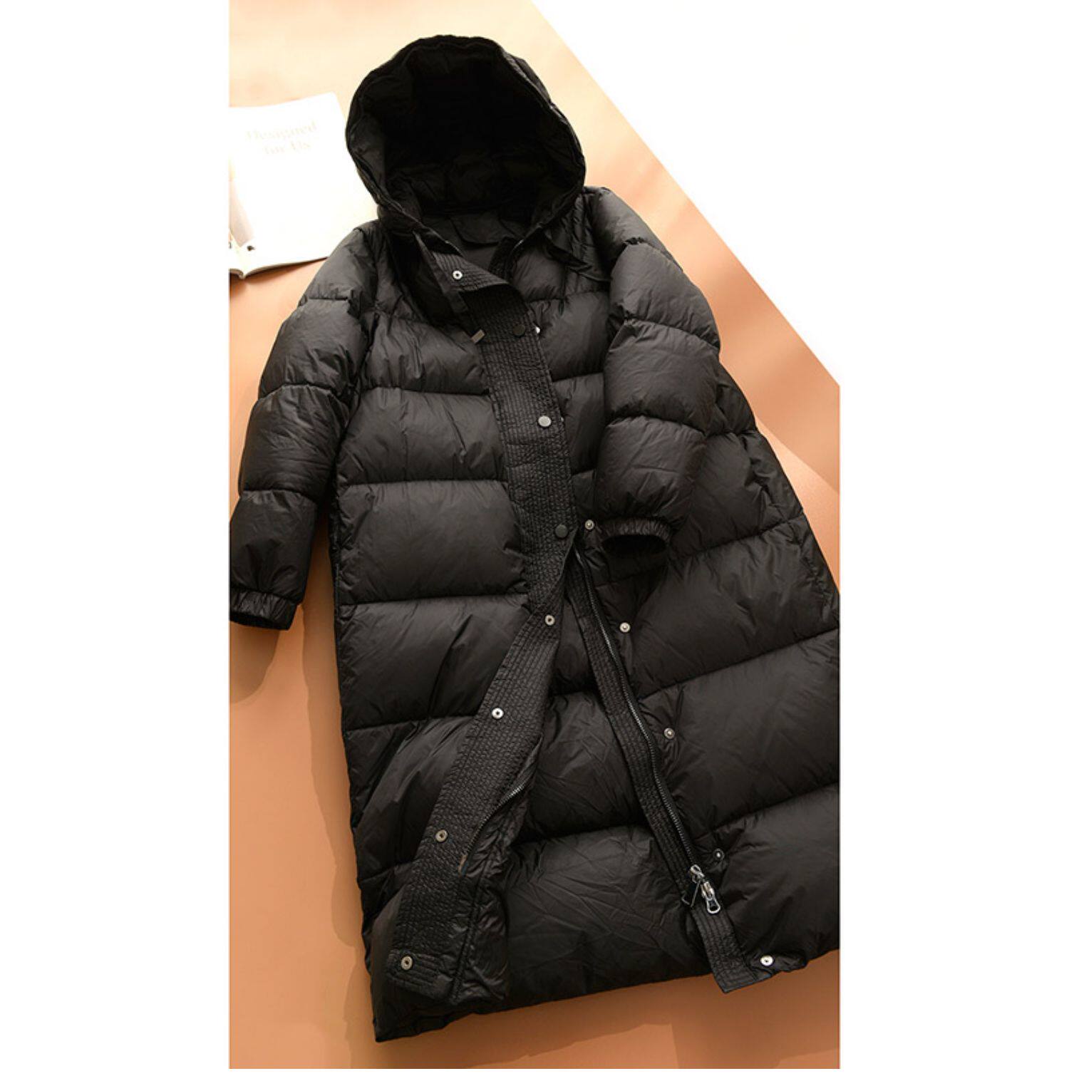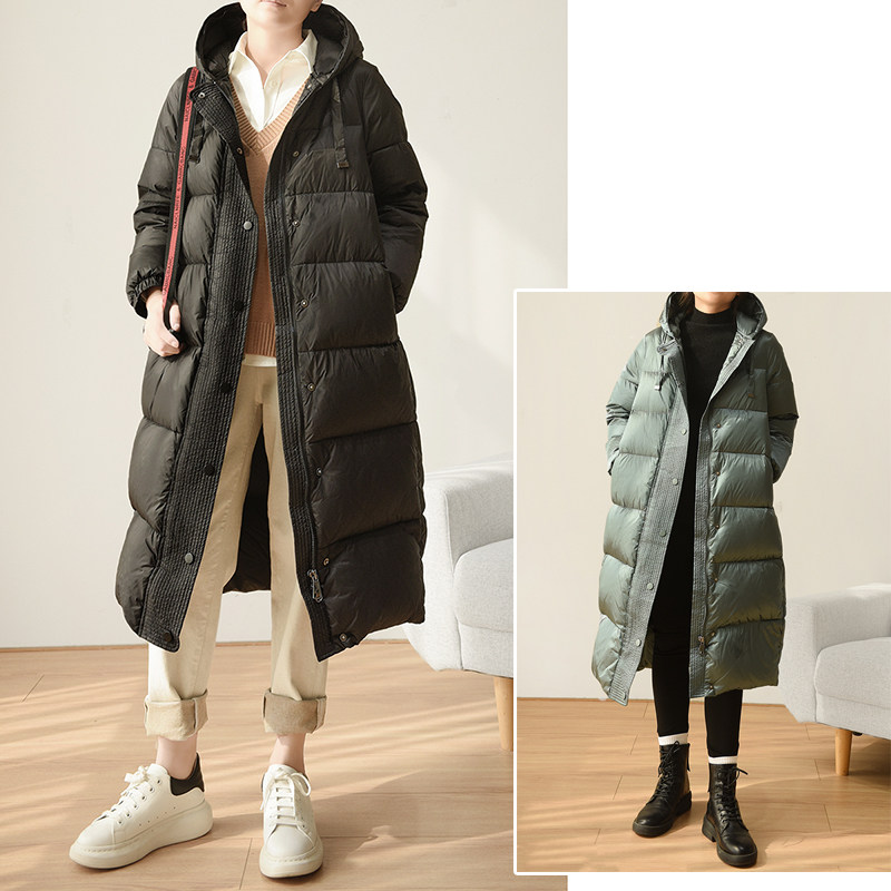 Бархатный длинный пуховик, зимняя куртка с капюшоном, утиный пух, городской стиль