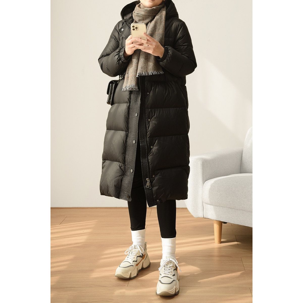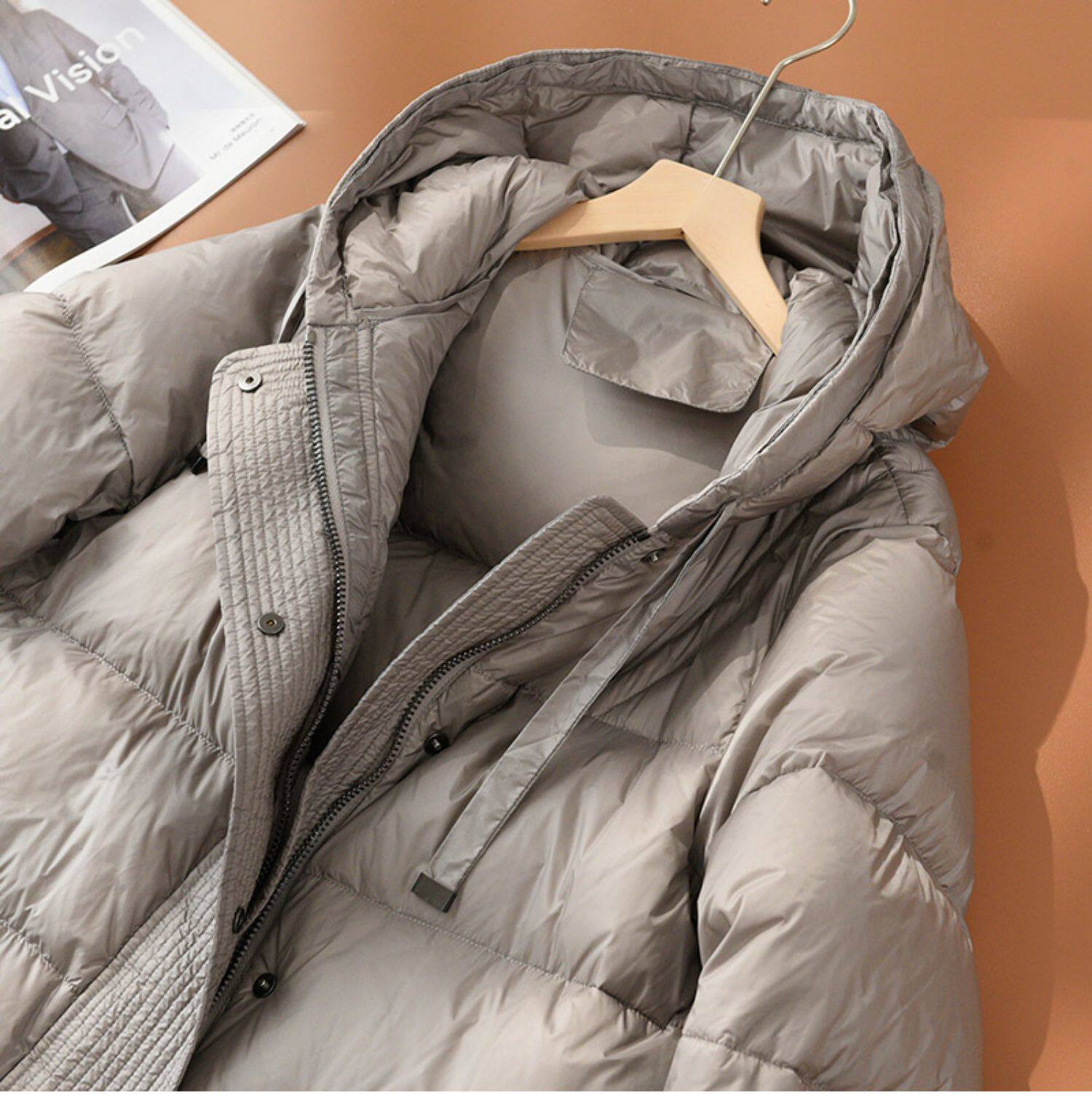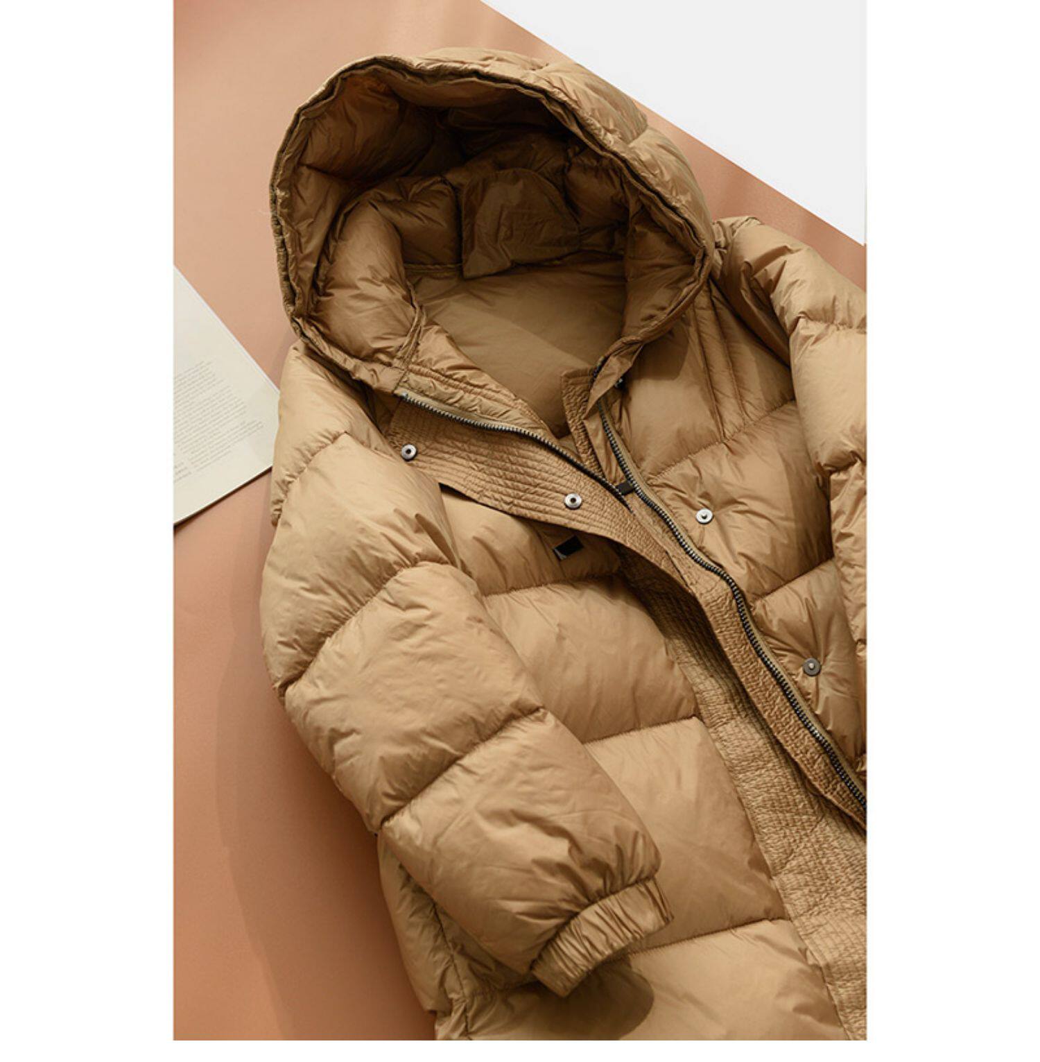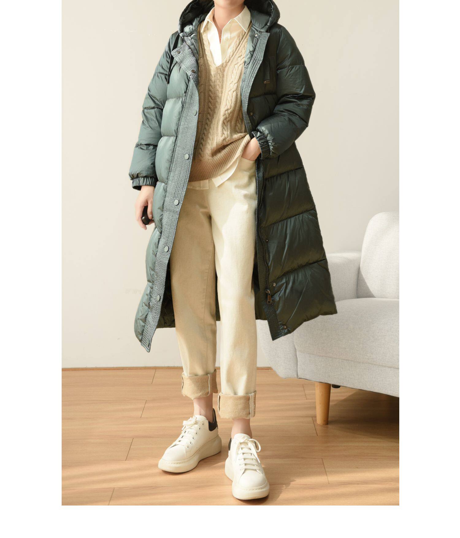 Бархатный длинный пуховик, зимняя куртка с капюшоном, утиный пух, городской стиль