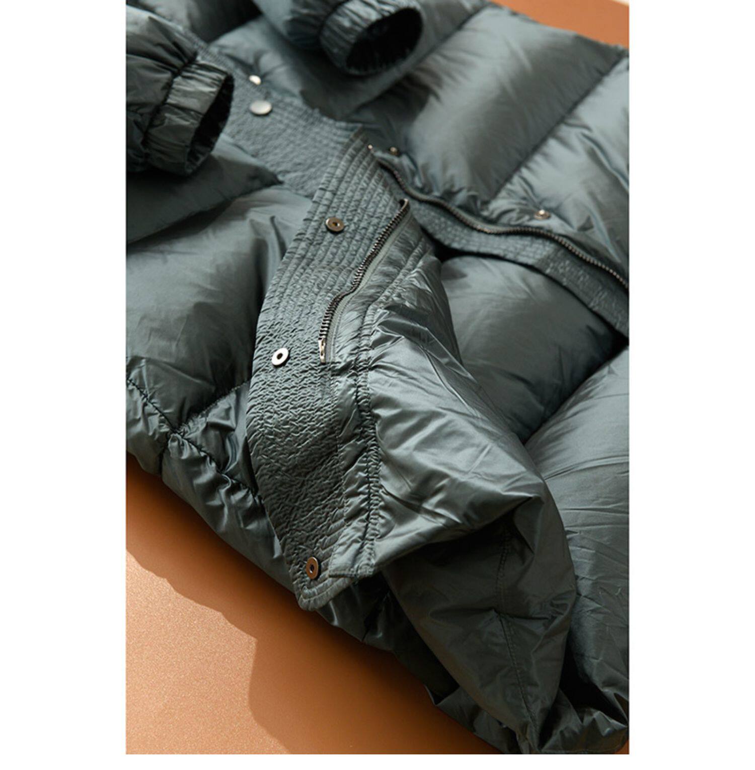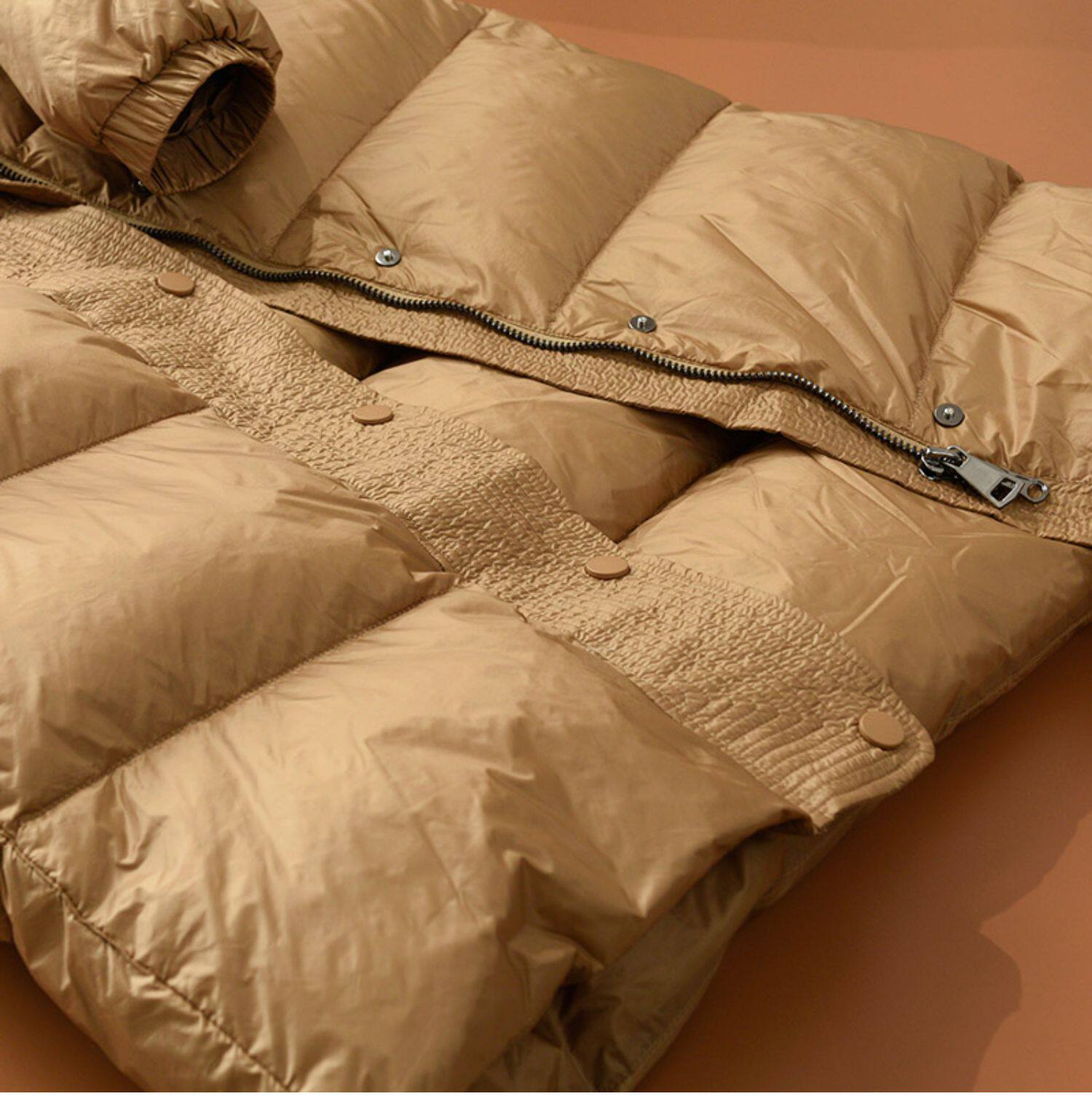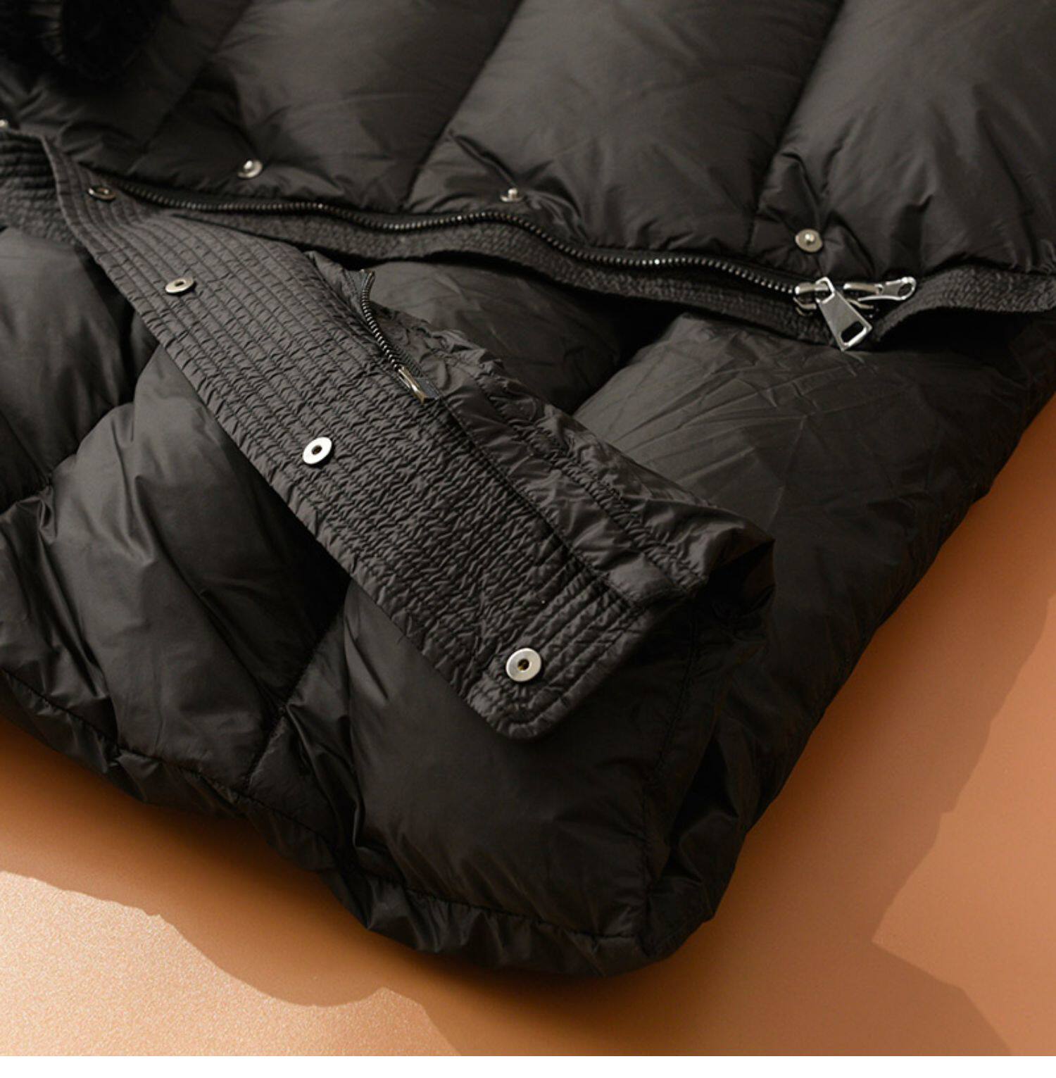 - Micro Frowed-Sheepskin Camel Down Down Jacket