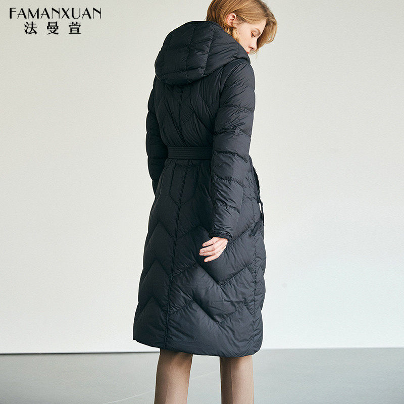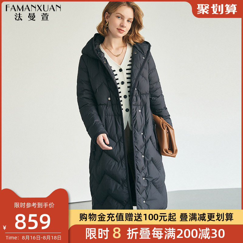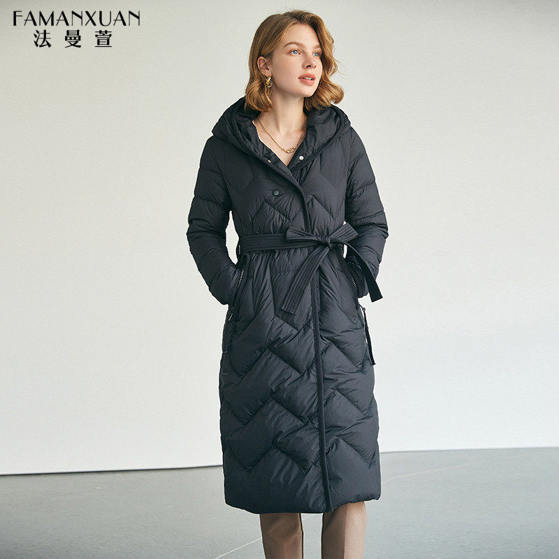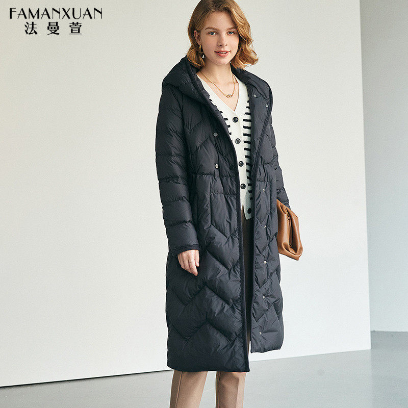 法曼萱 Черный зимний пуховик, толстовка с капюшоном для отдыха, длинная куртка, коллекция 2021, яркий броский стиль