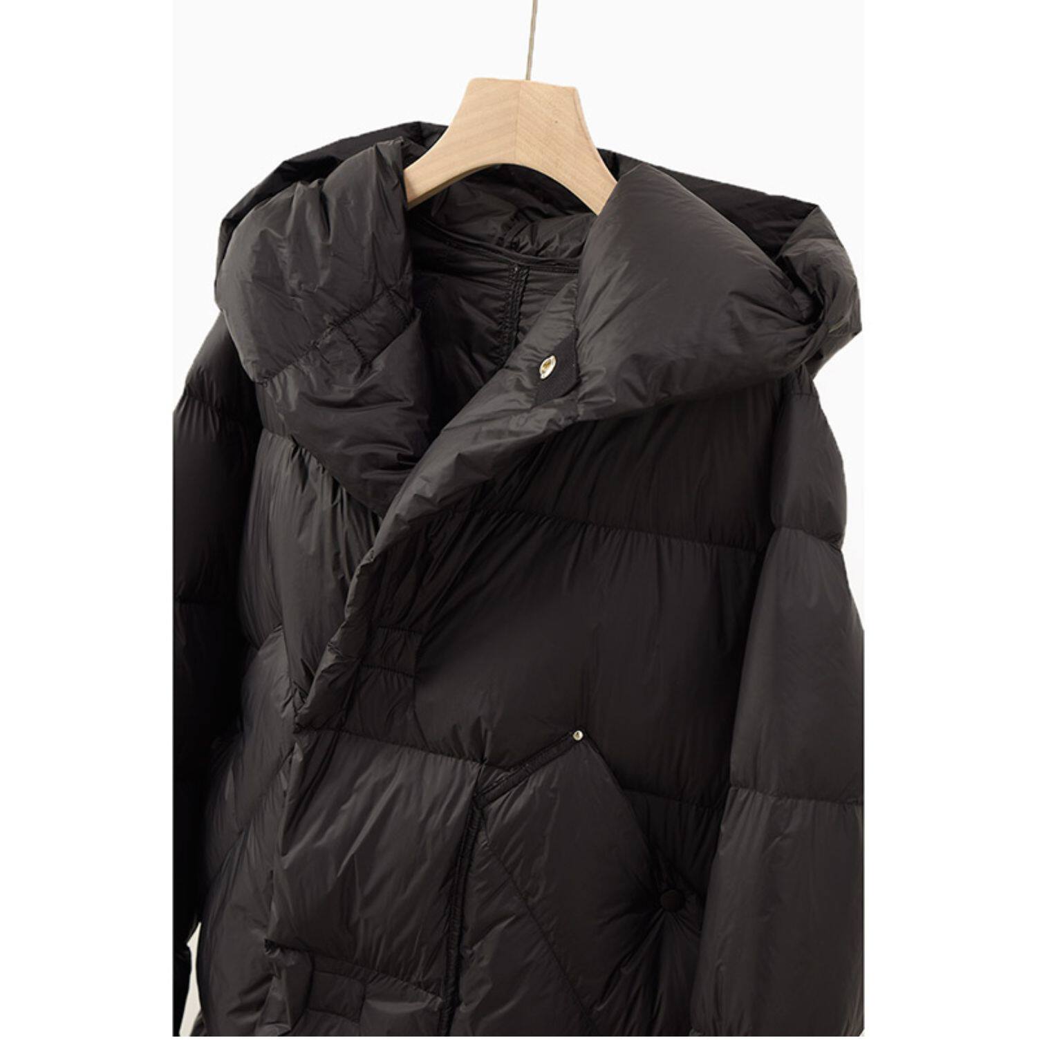 - 2118 Dark Night Black Long Down Jacket