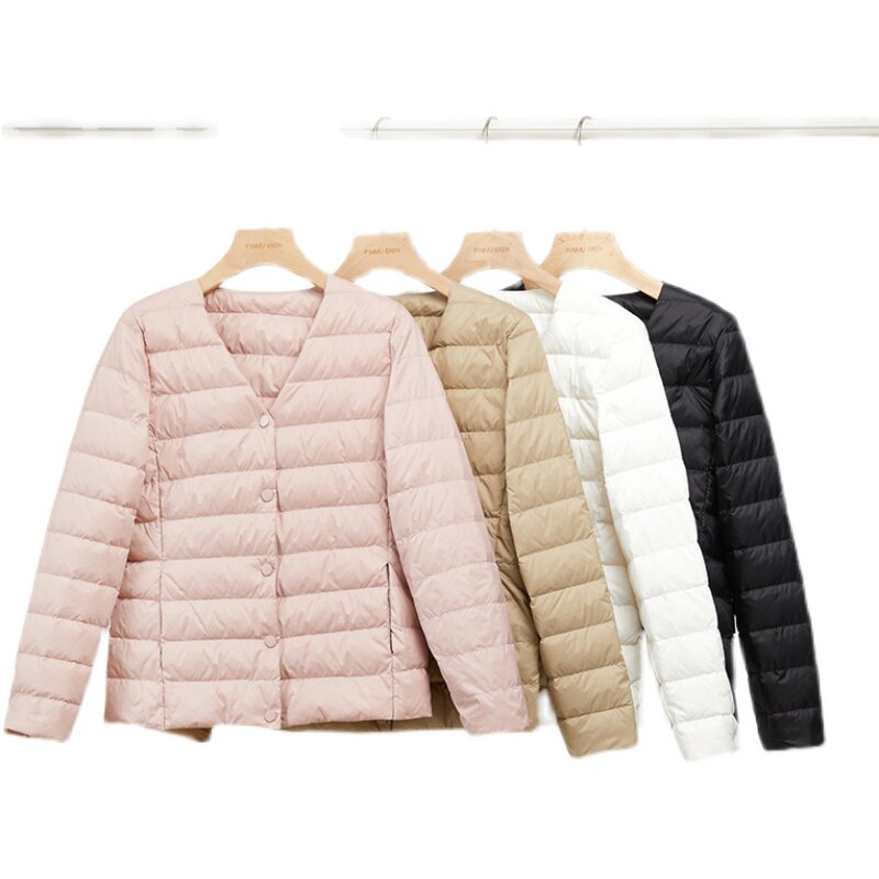 Зимний удерживающий тепло пуховик, короткий вкладыш с круглым воротником, бархатная куртка, V-образный вырез, утиный пух