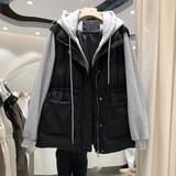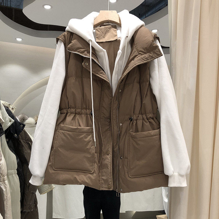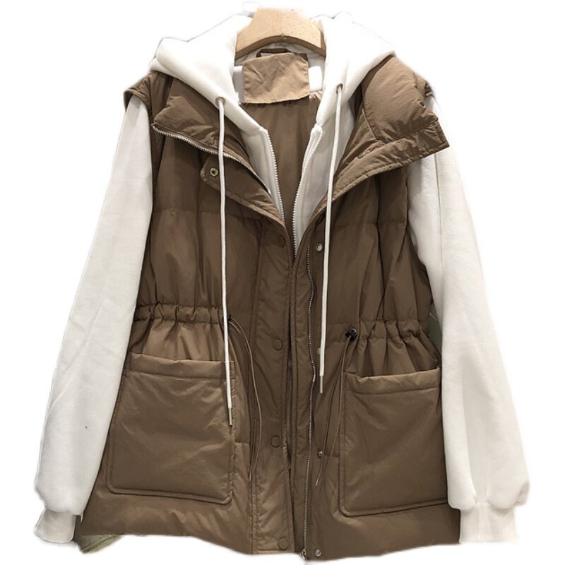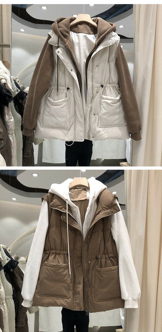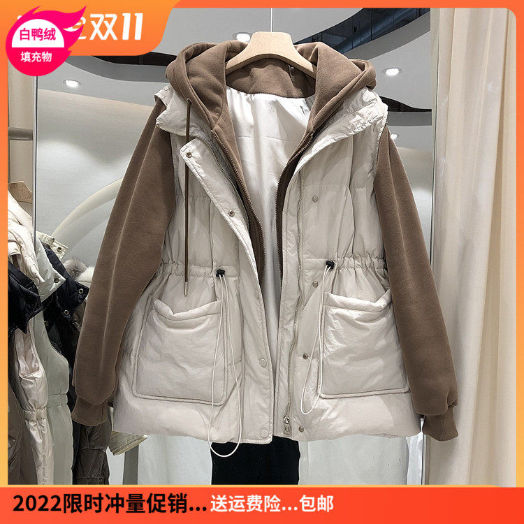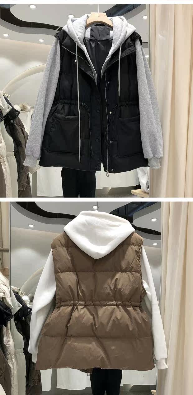 Комплект, пуховик, приталенный корсет, бархатная толстовка, жилет, зимняя куртка, увеличенная толщина, утиный пух, коллекция 2021