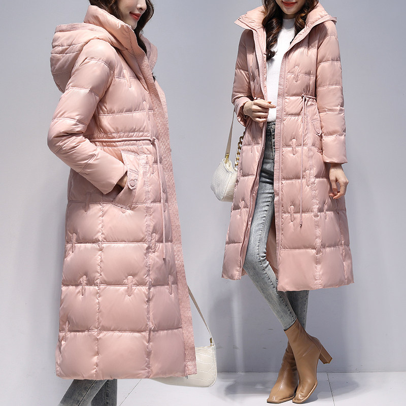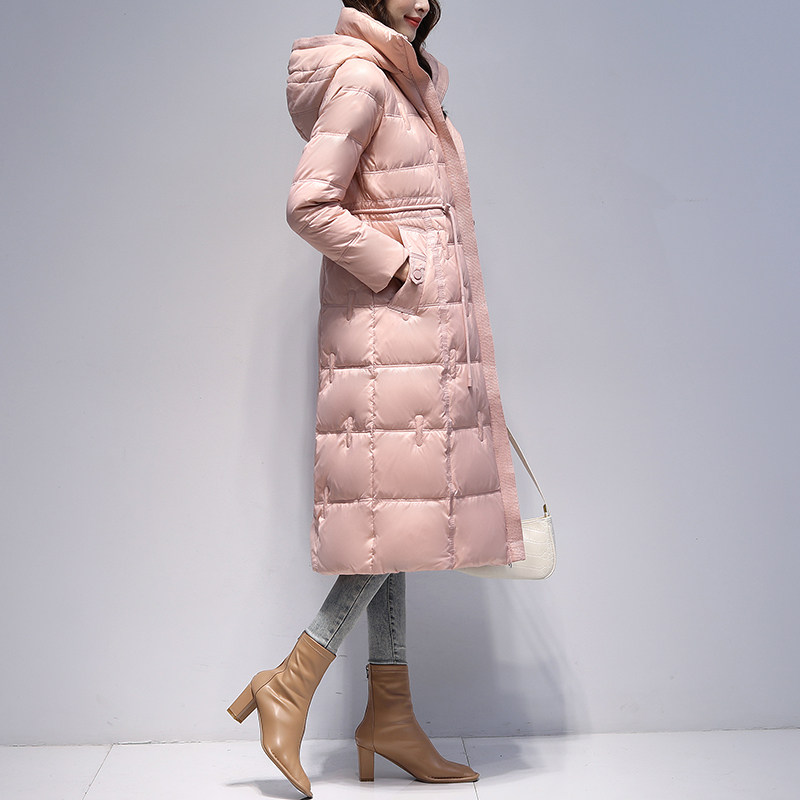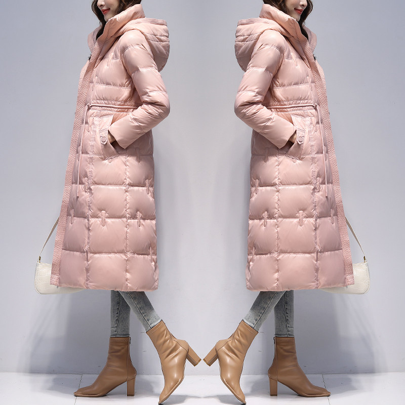 Зимний глянцевый длинный пуховик, элегантная бархатная куртка, средней длины, городской стиль, утиный пух