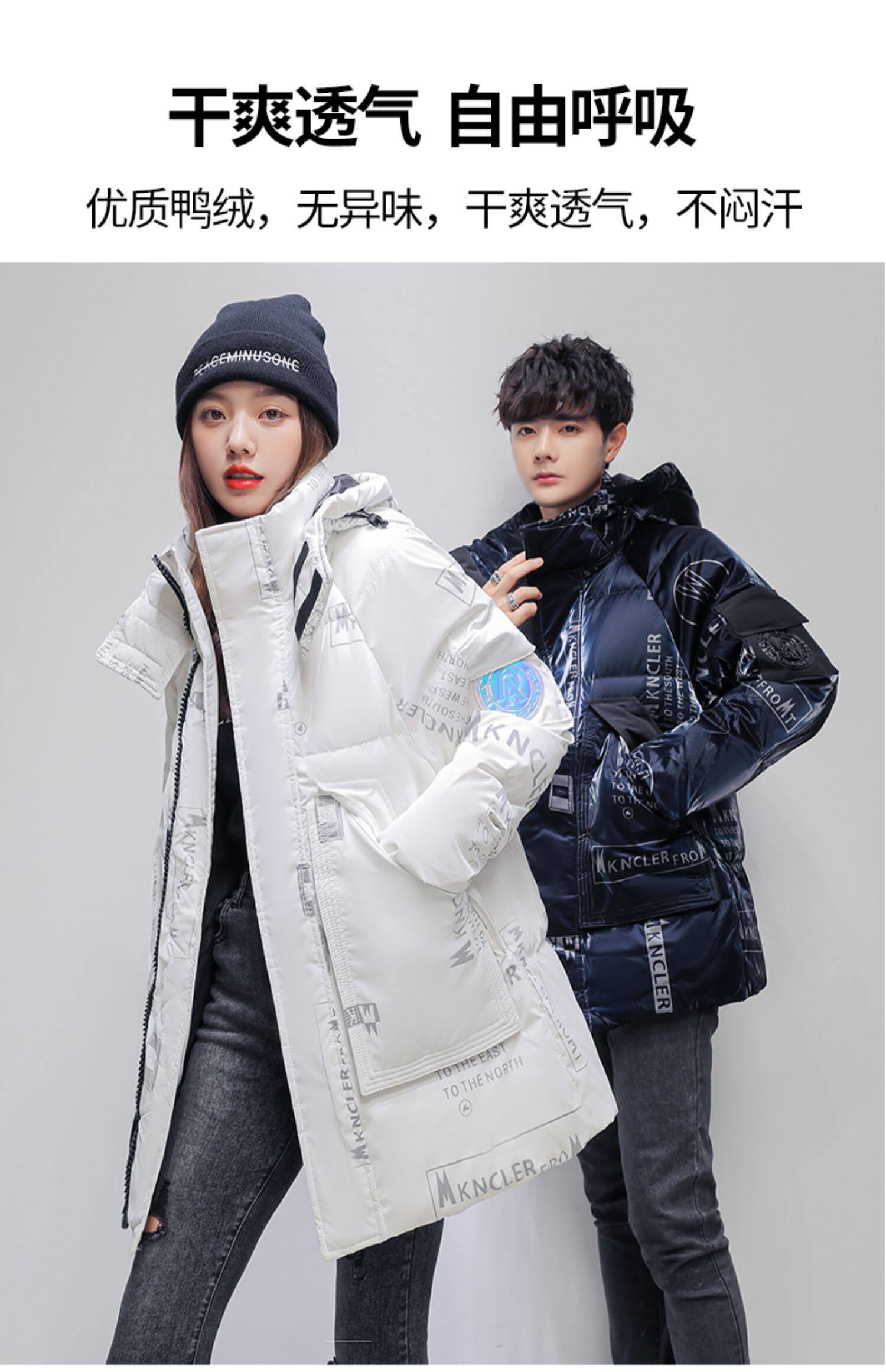 Пуховик подходит для мужчин и женщин, демисезонная длинная куртка с капюшоном, утиный пух, для влюбленных, 2021 года, в корейском стиле