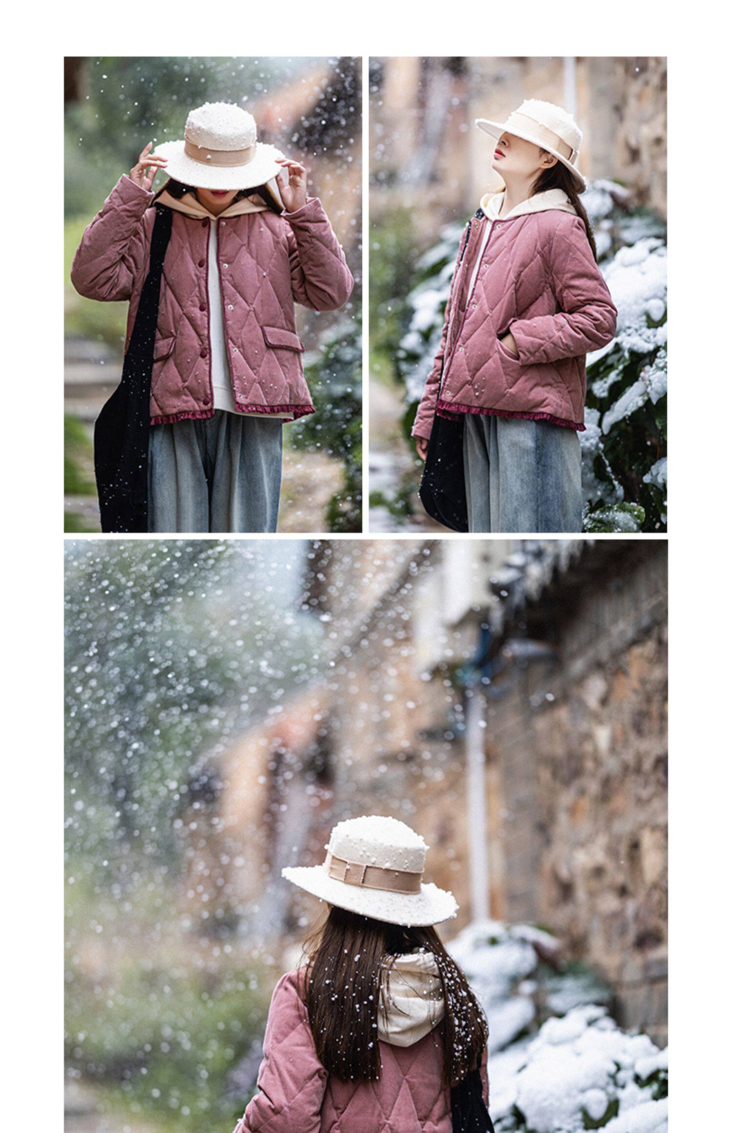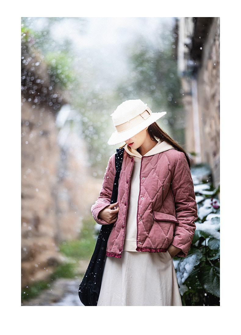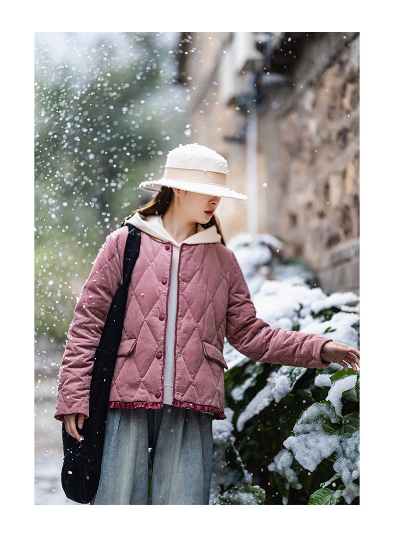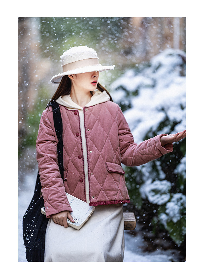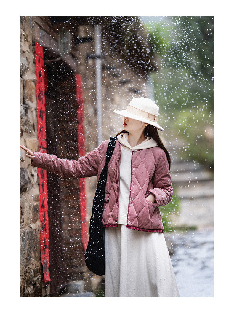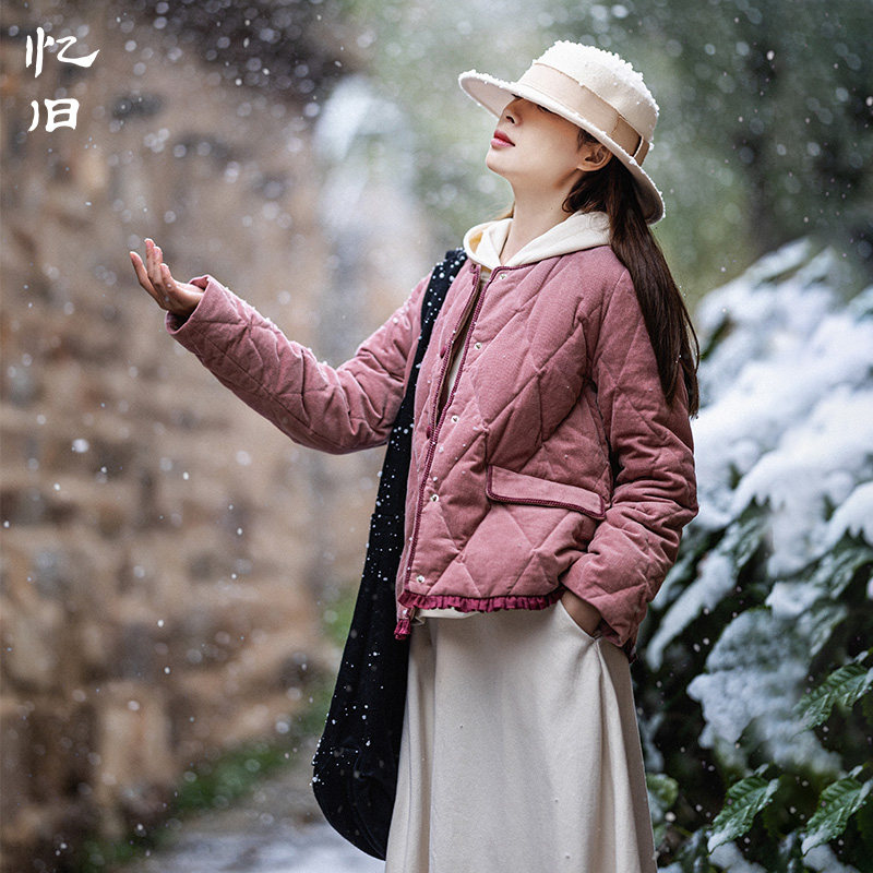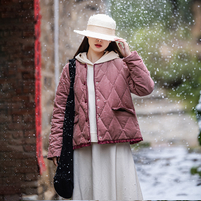Вельветовый короткий пуховик, бархатная зимняя куртка с круглым воротником, коллекция 2023, утиный пух