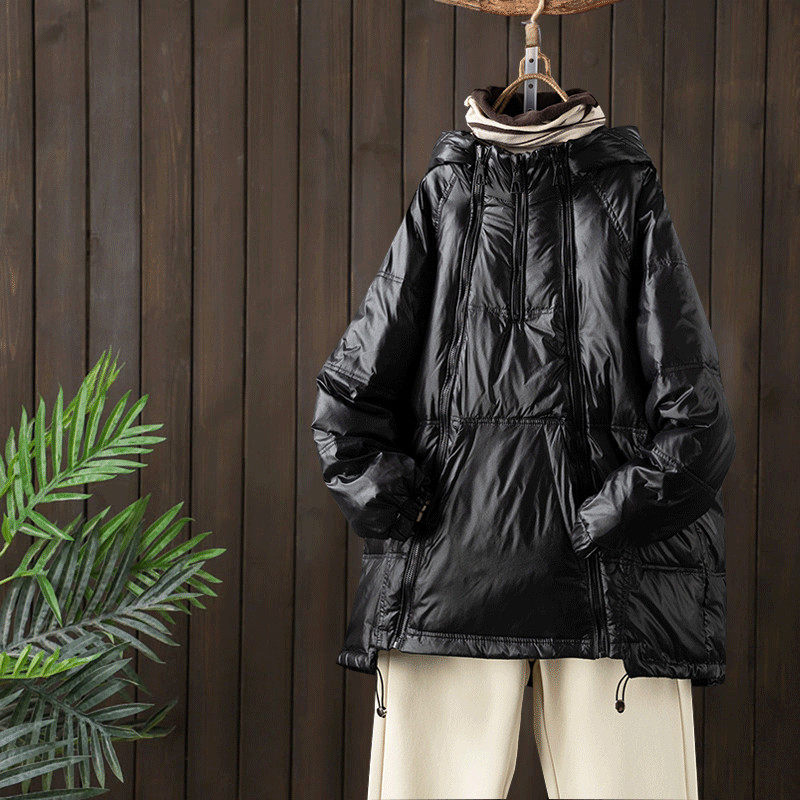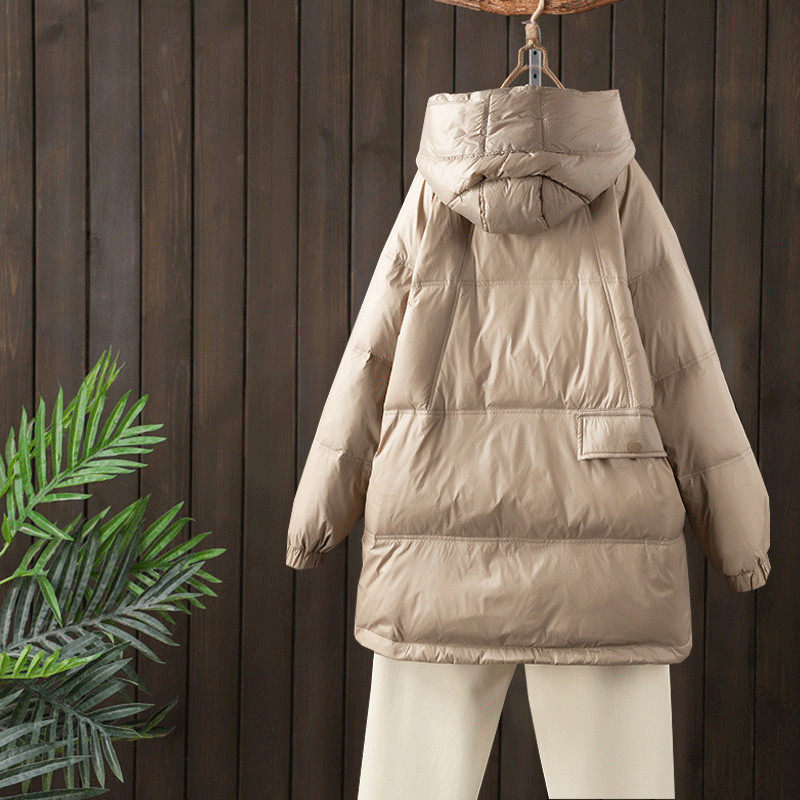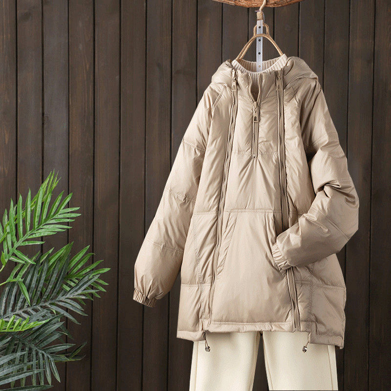 Толстовка, зимний утепленный пуховик, длинная бархатная цепочка с молнией, куртка, коллекция 2021, средней длины, утиный пух