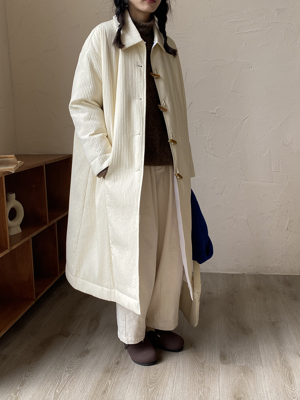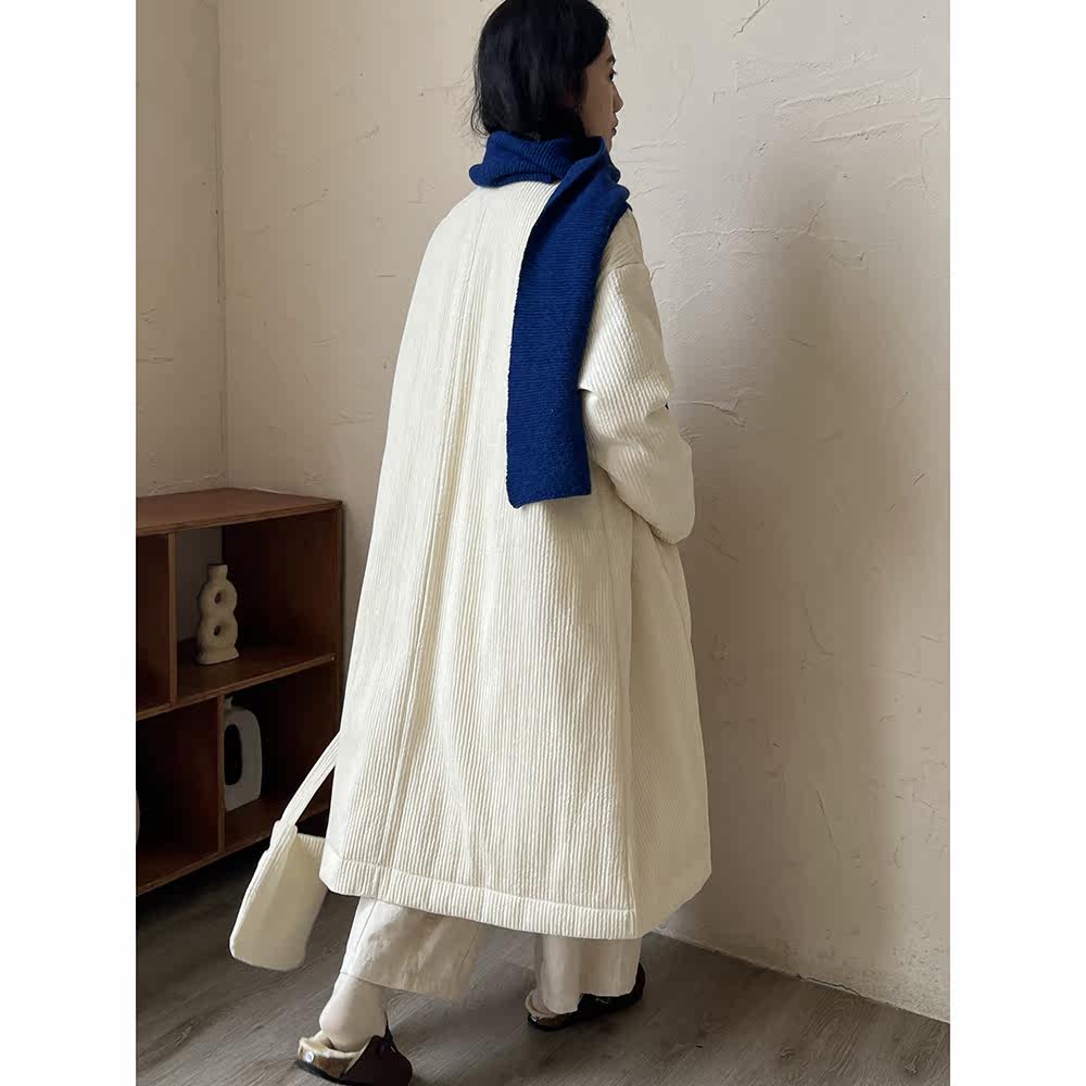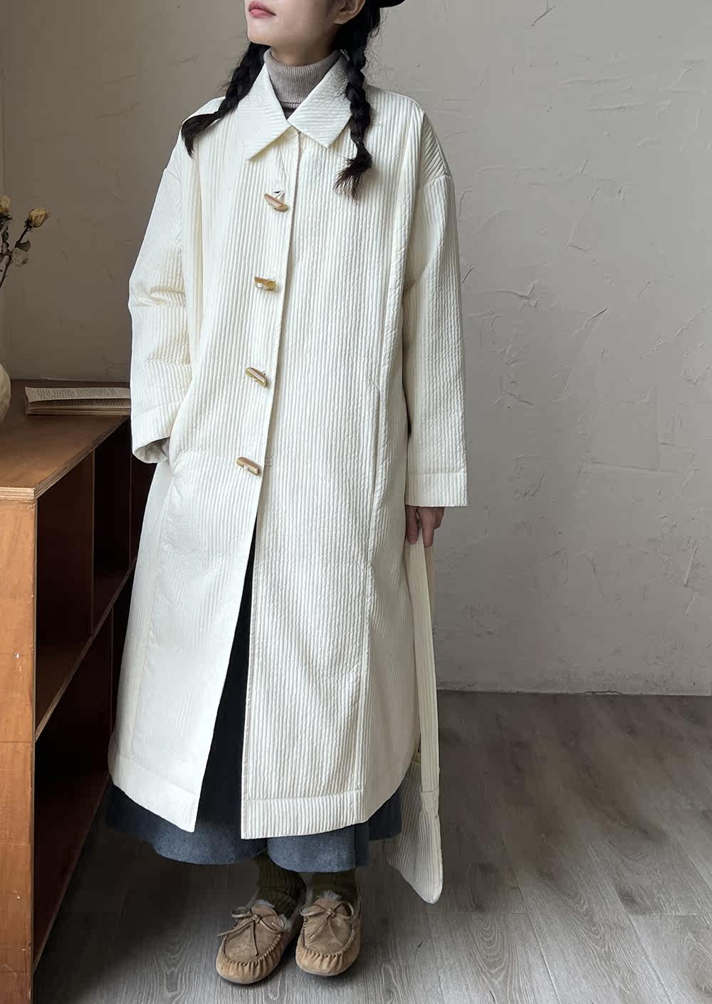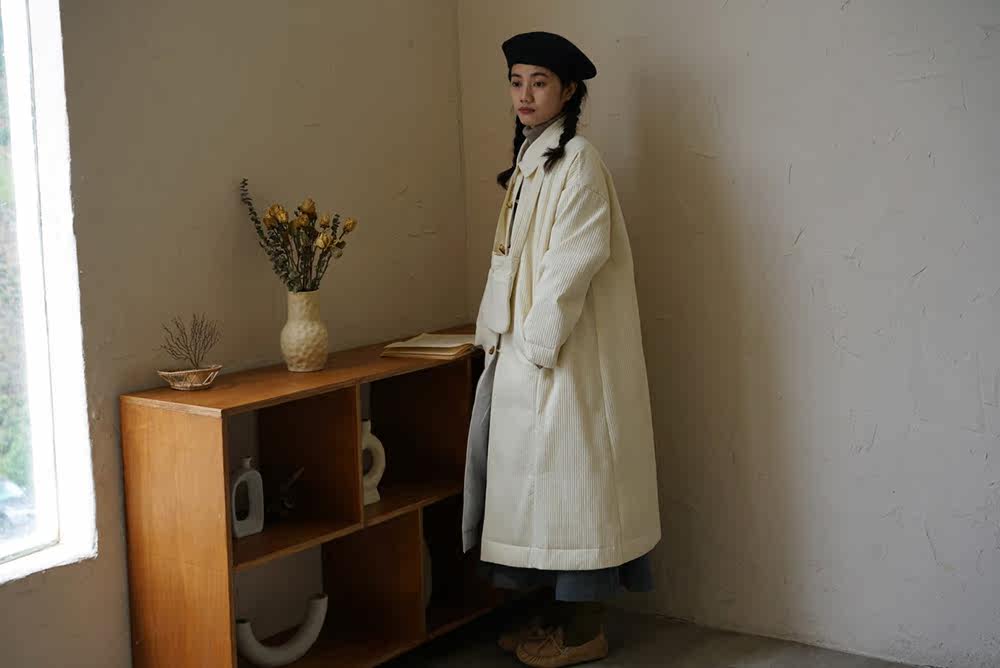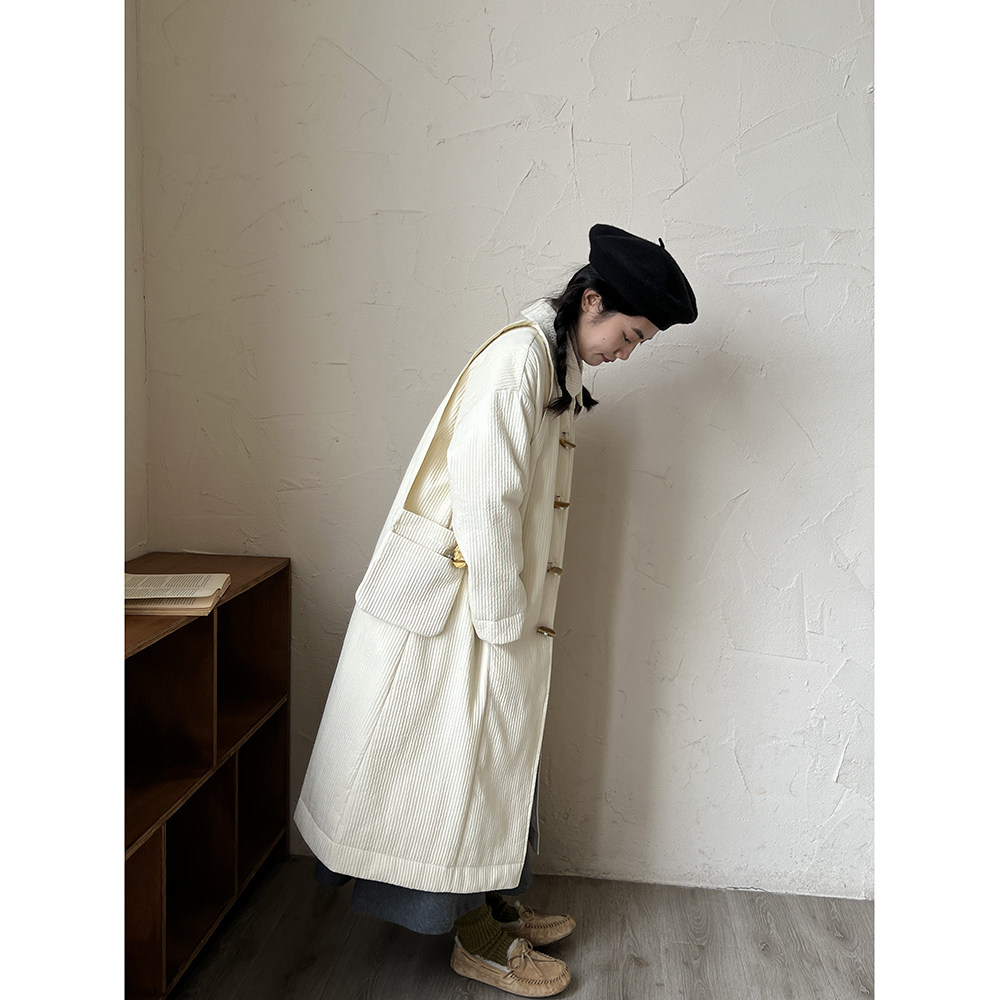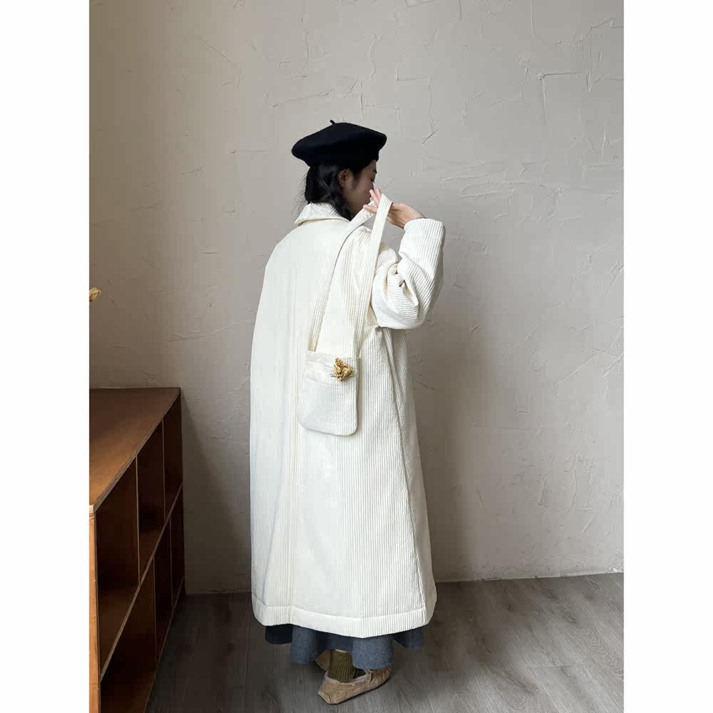Зимний сливочный пуховик, средней длины