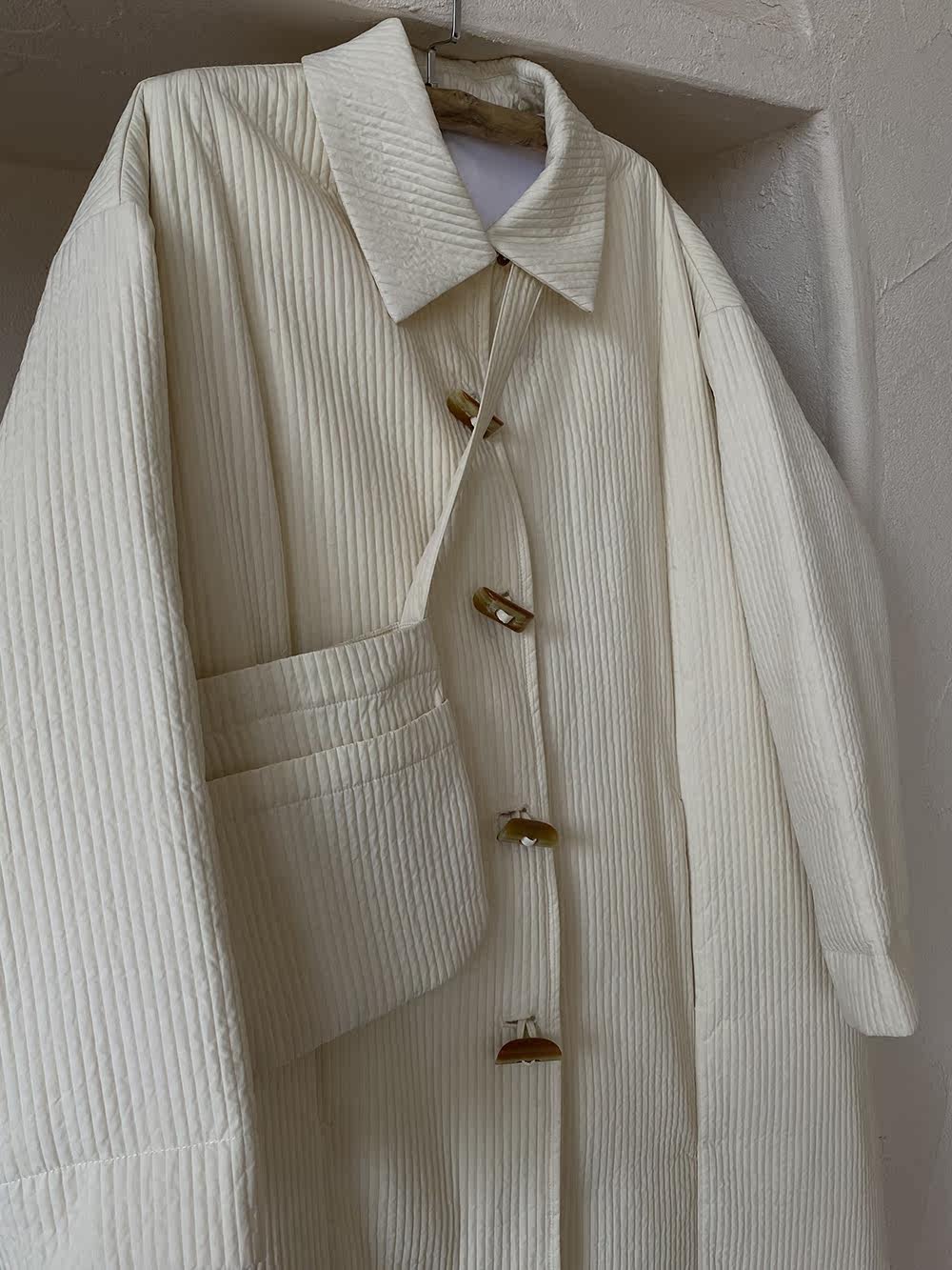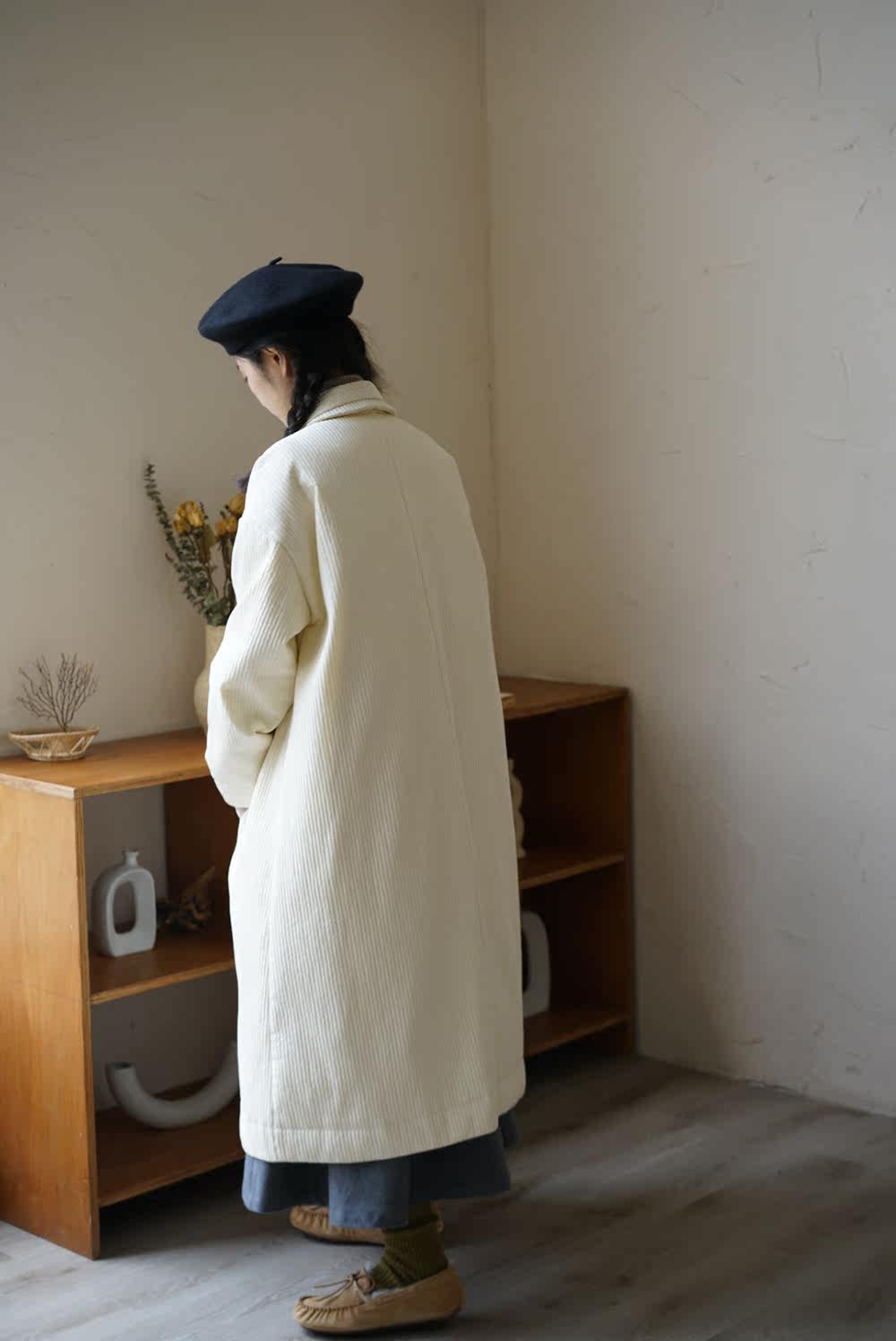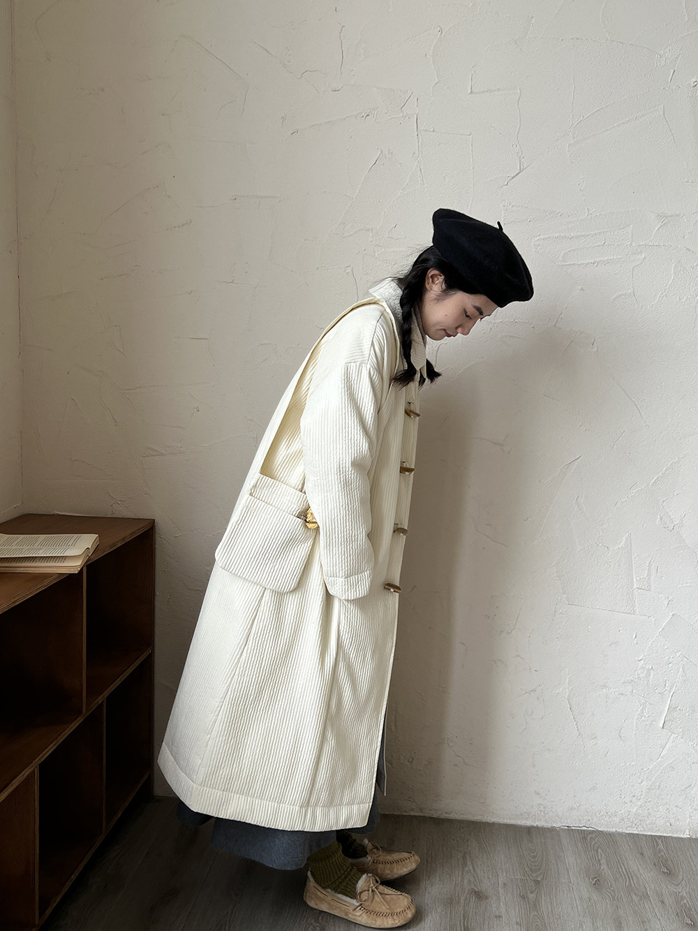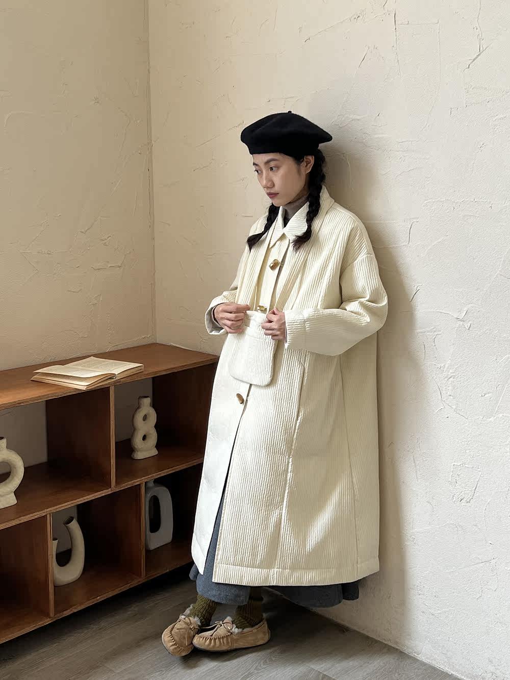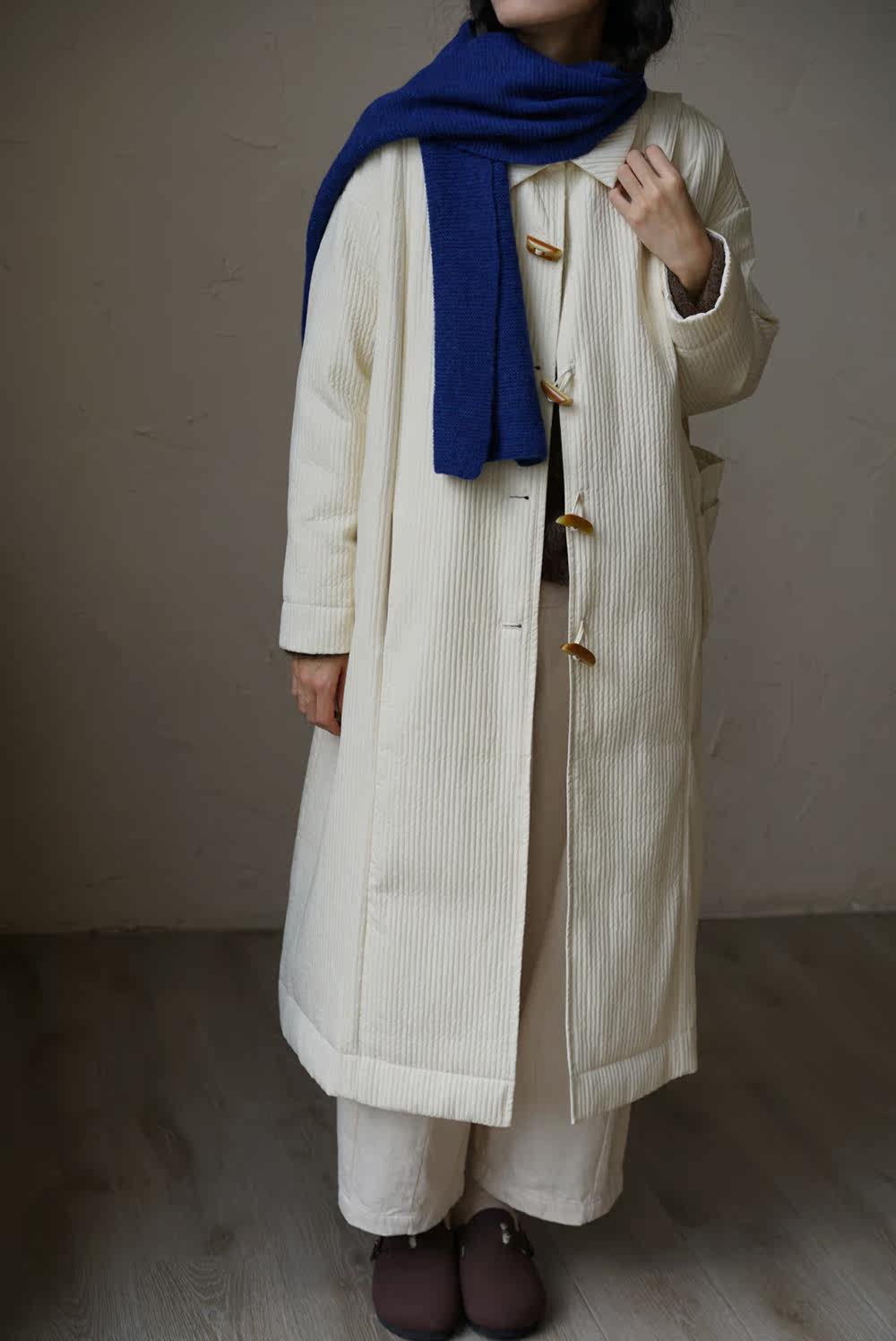 Зимний сливочный пуховик, средней длины