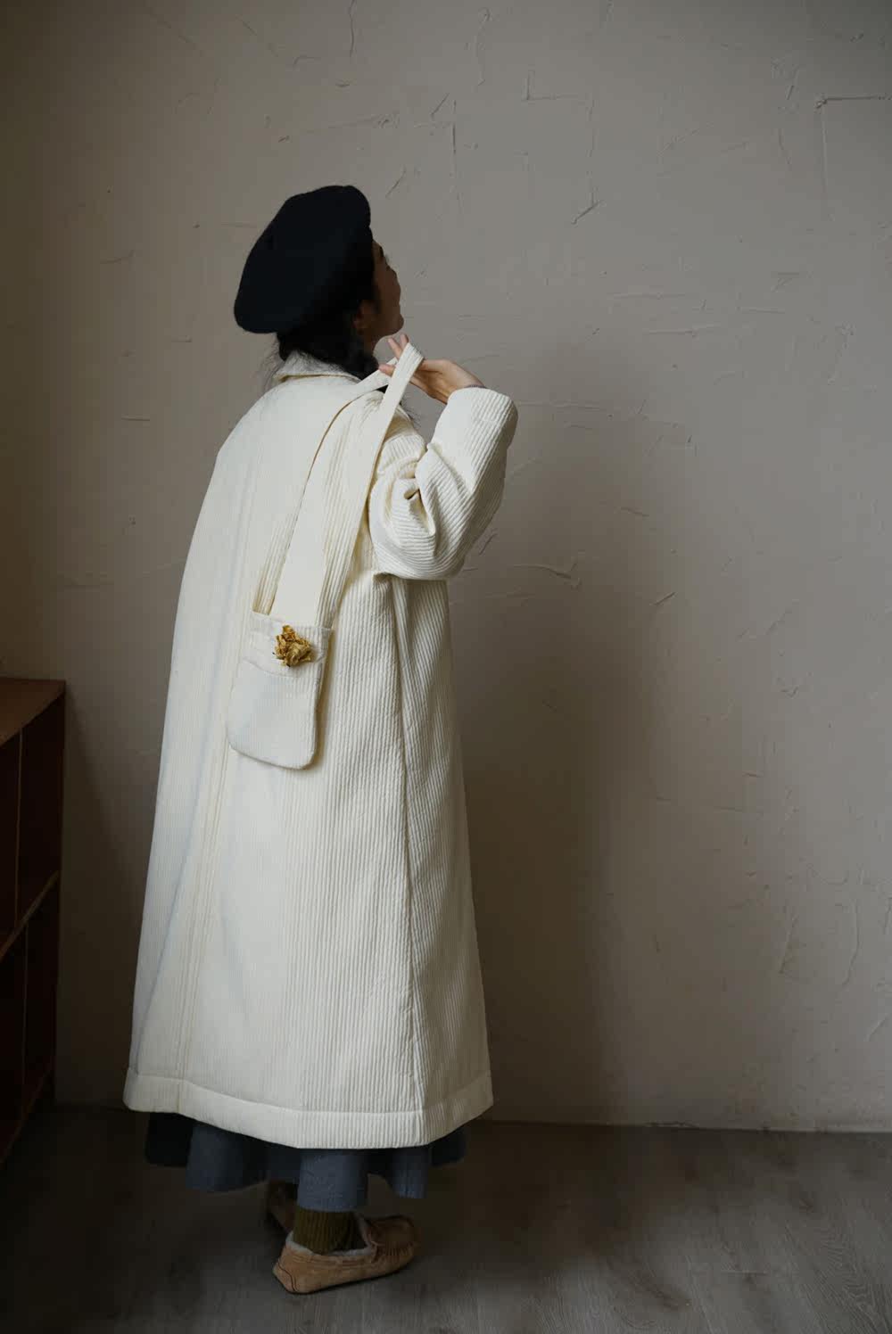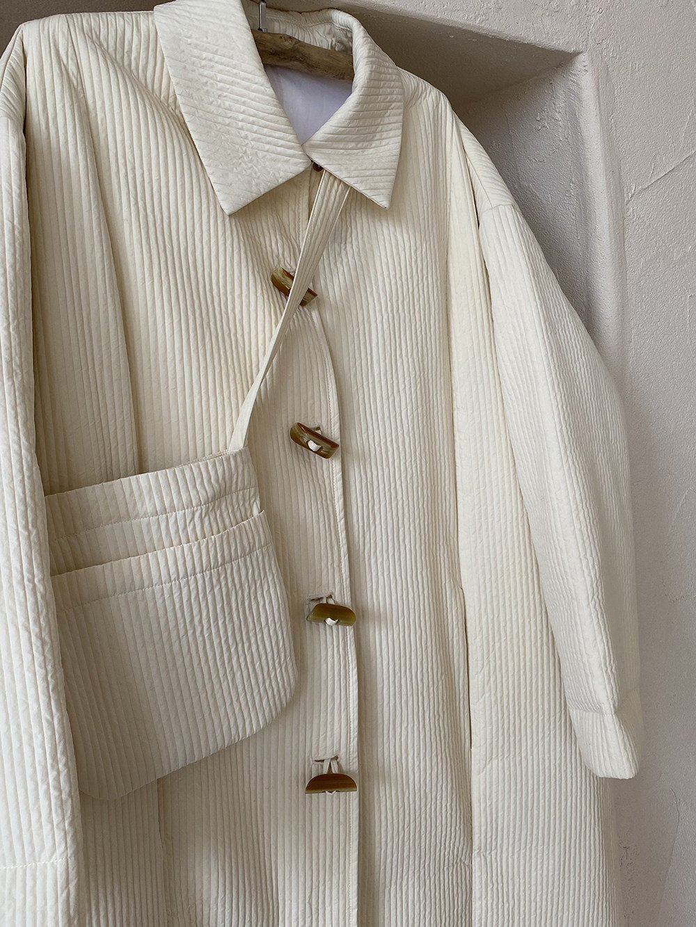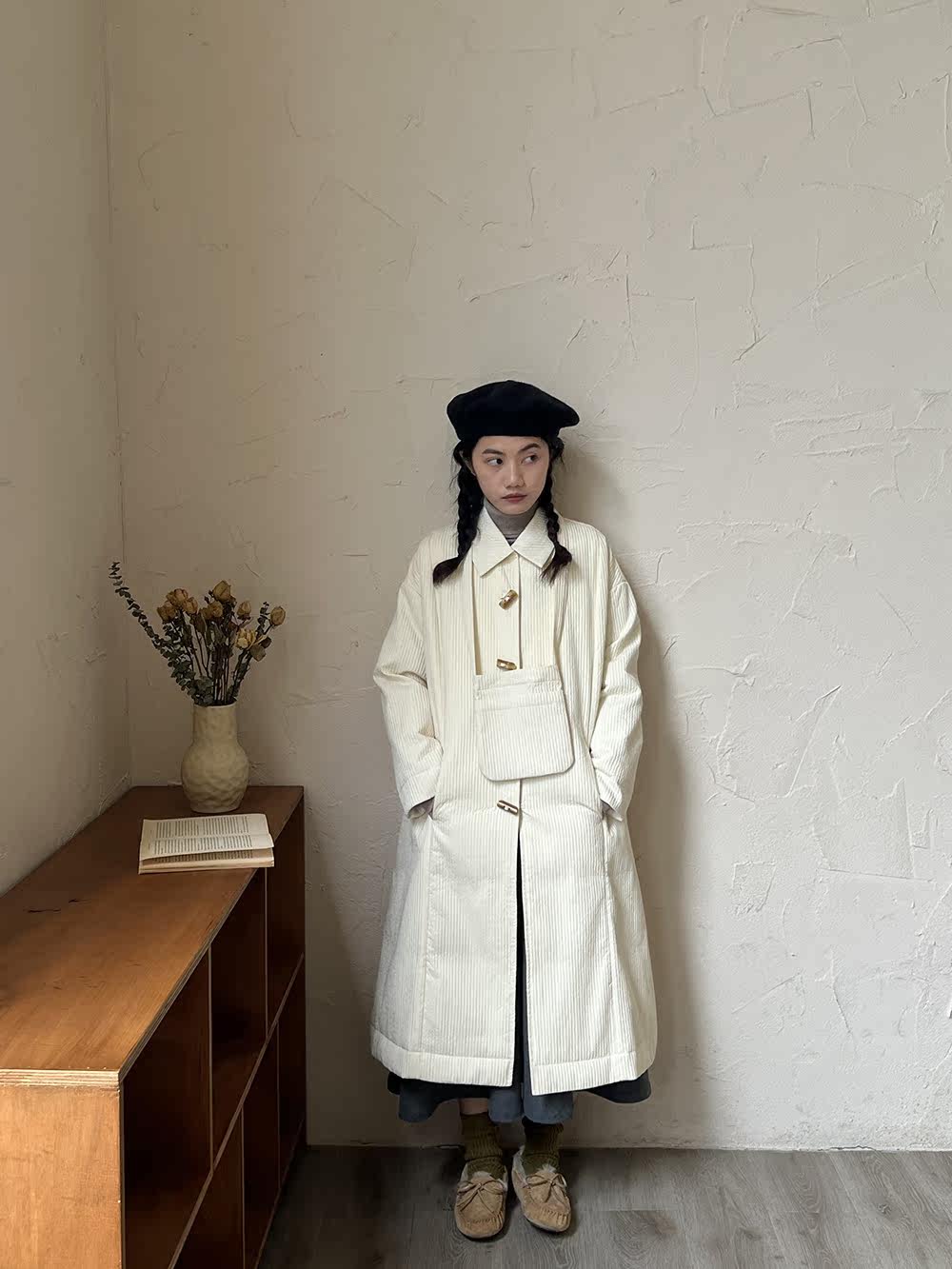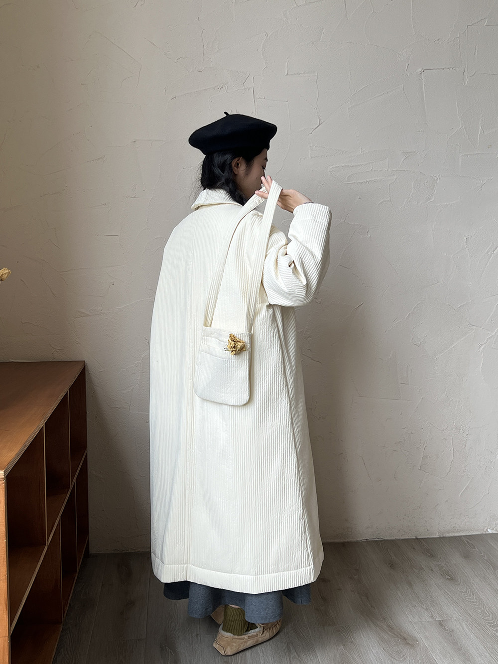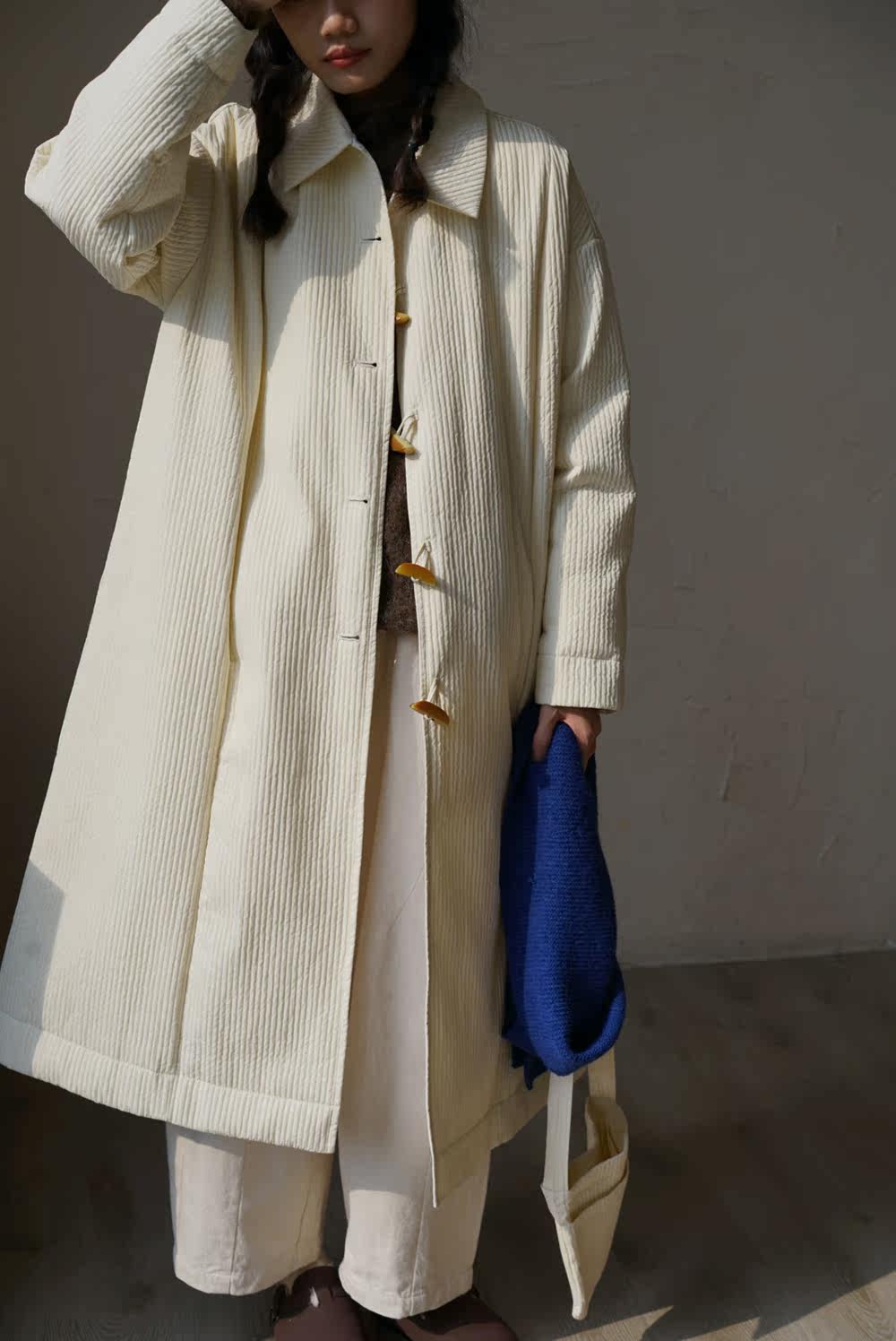 Зимний сливочный пуховик, средней длины