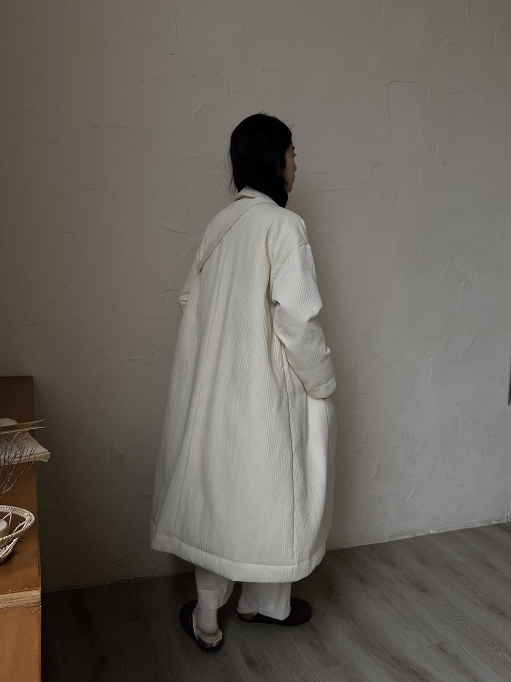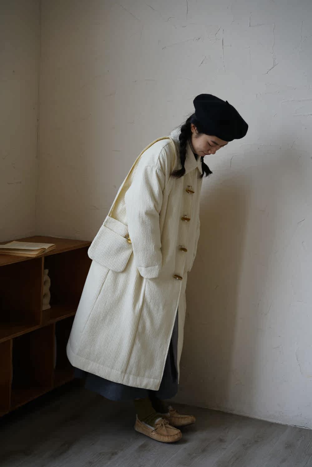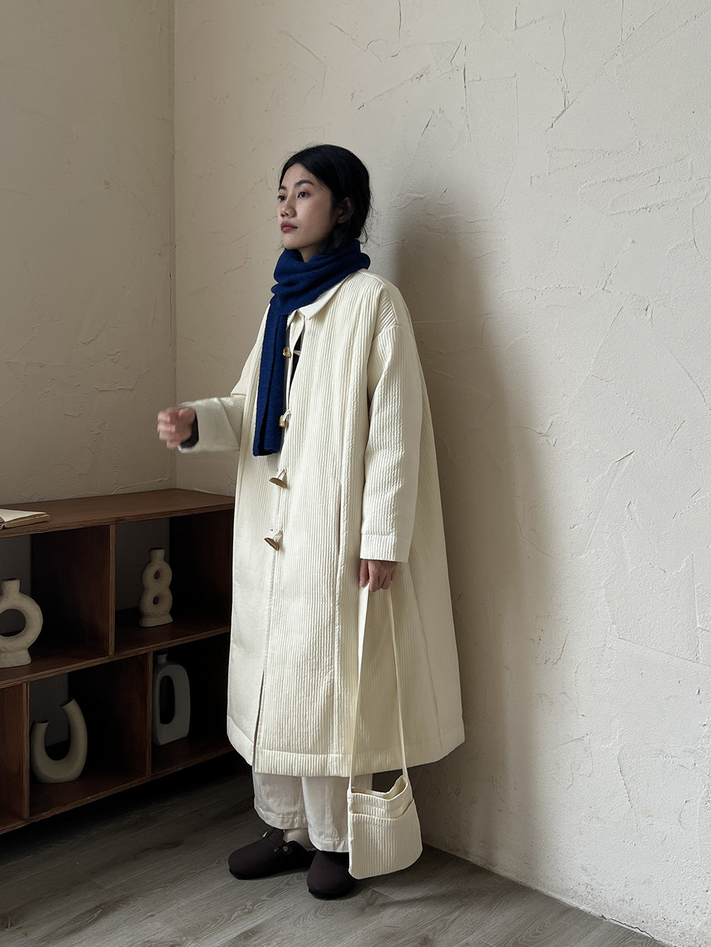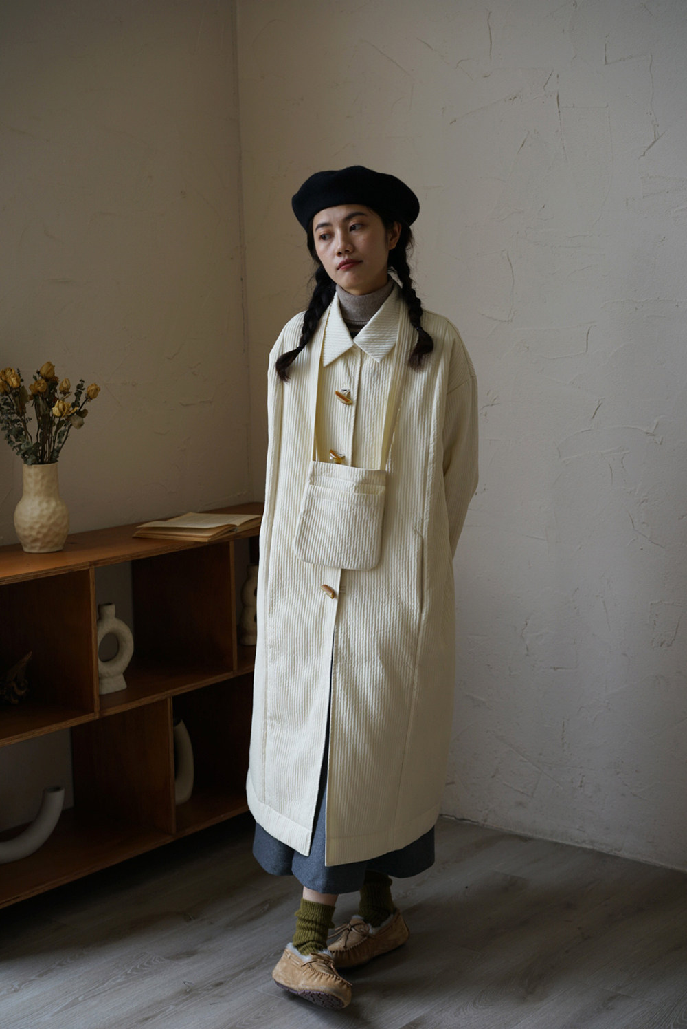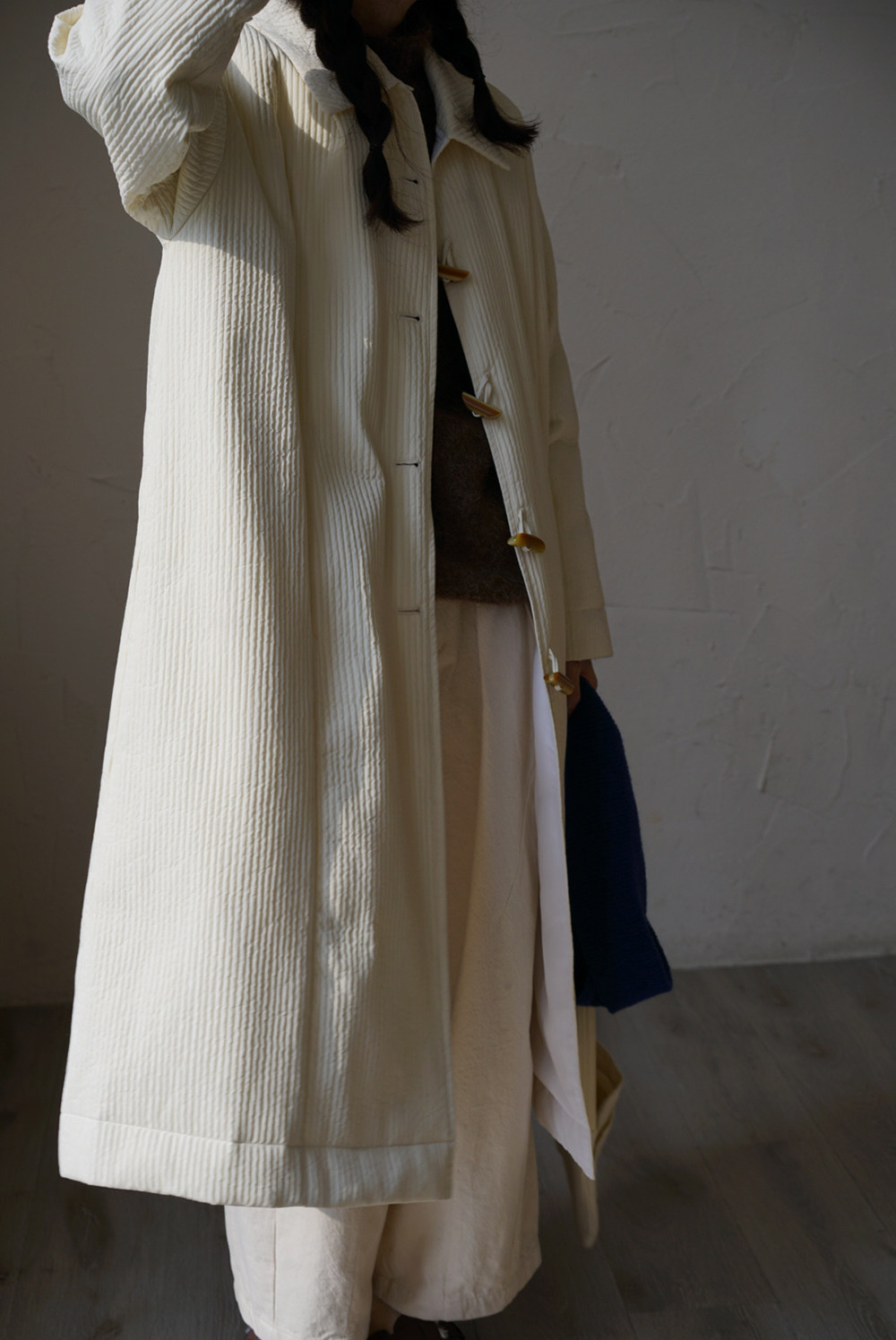 Зимний сливочный пуховик, средней длины