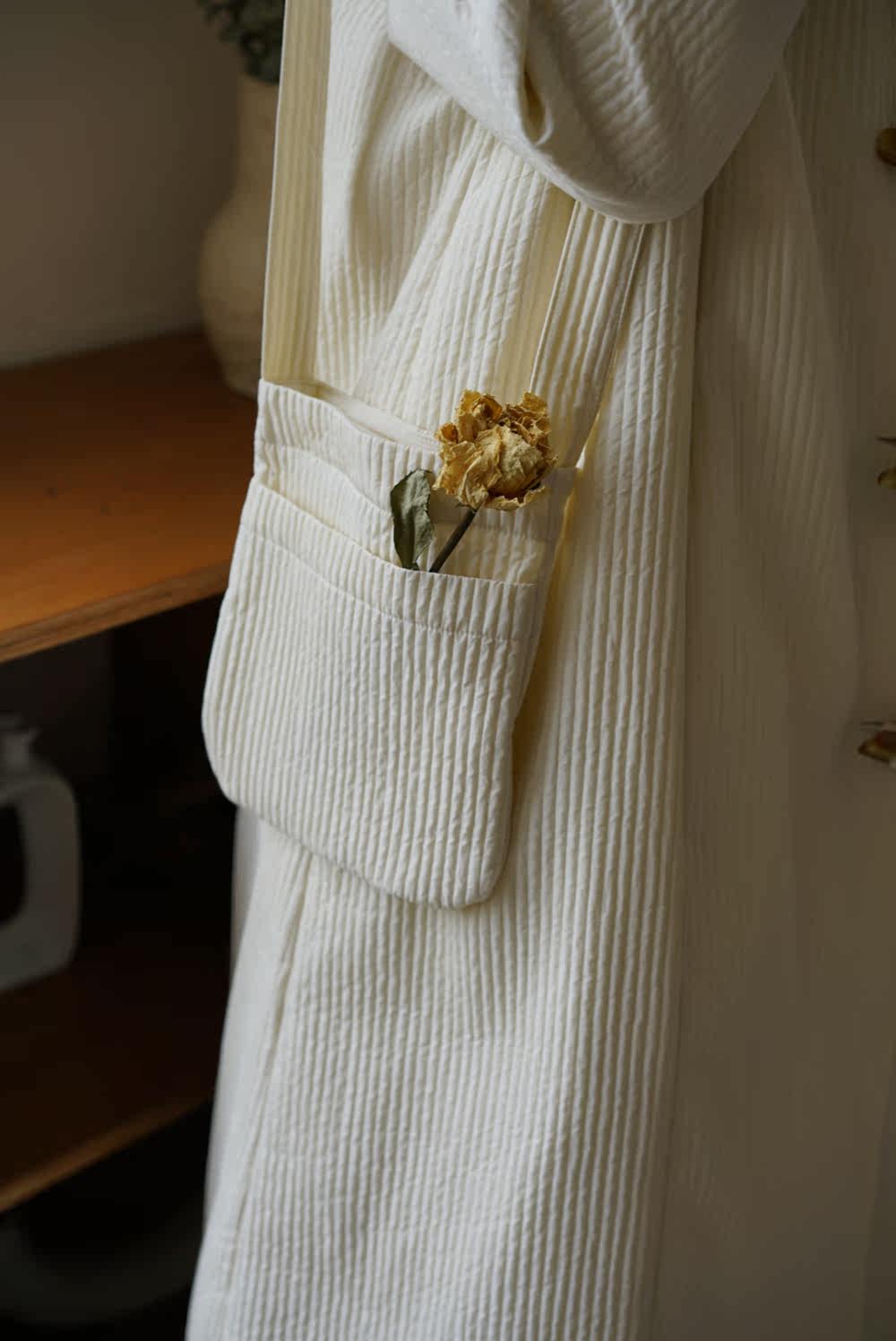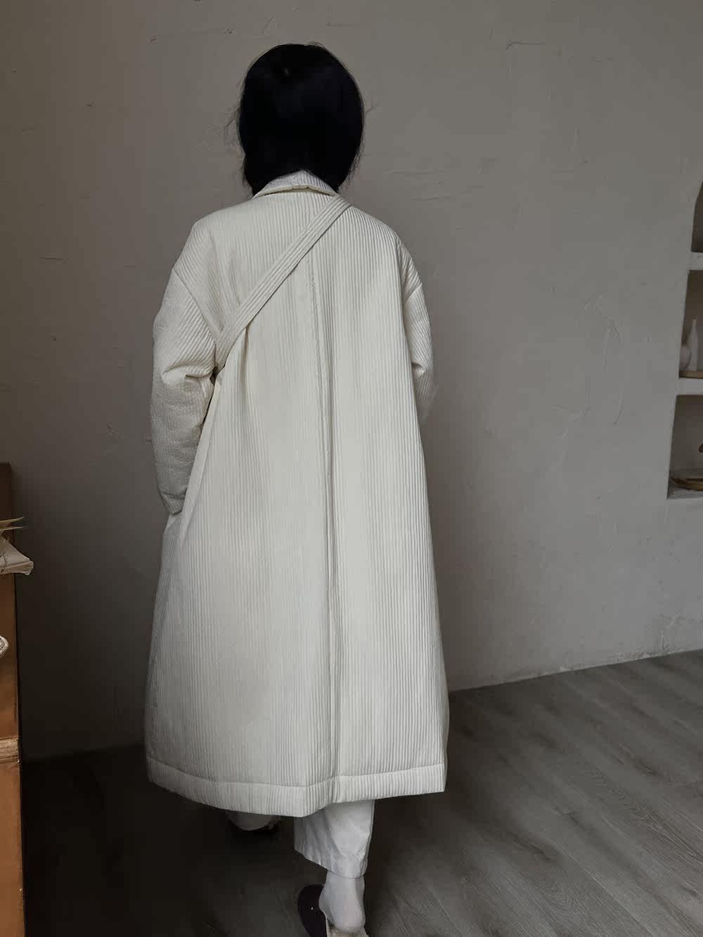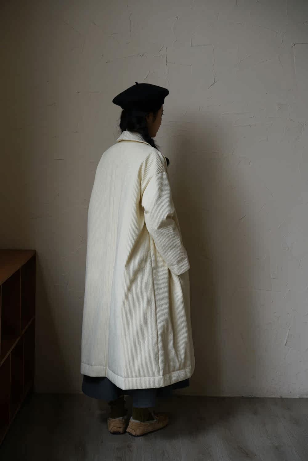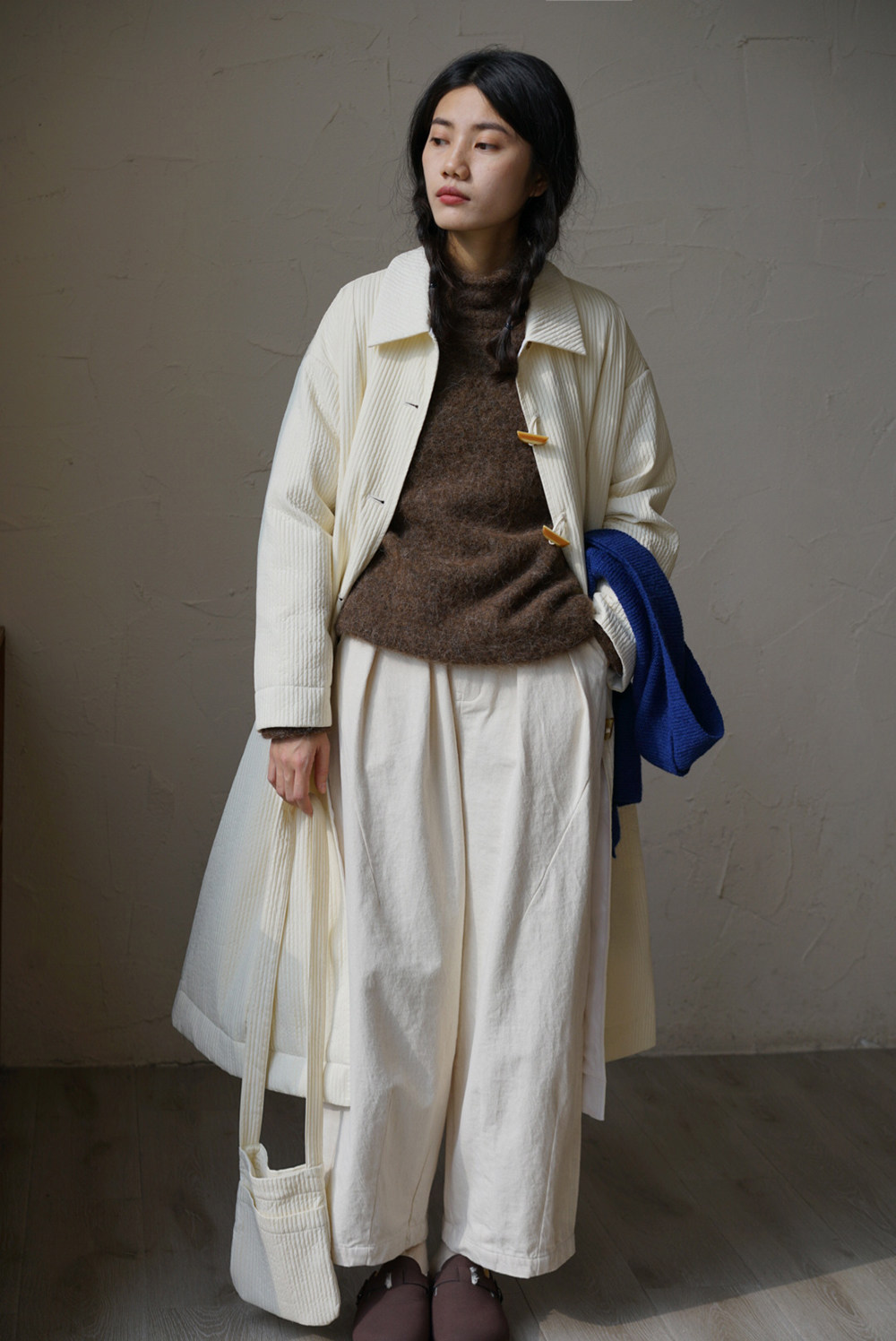 Зимний сливочный пуховик, средней длины
