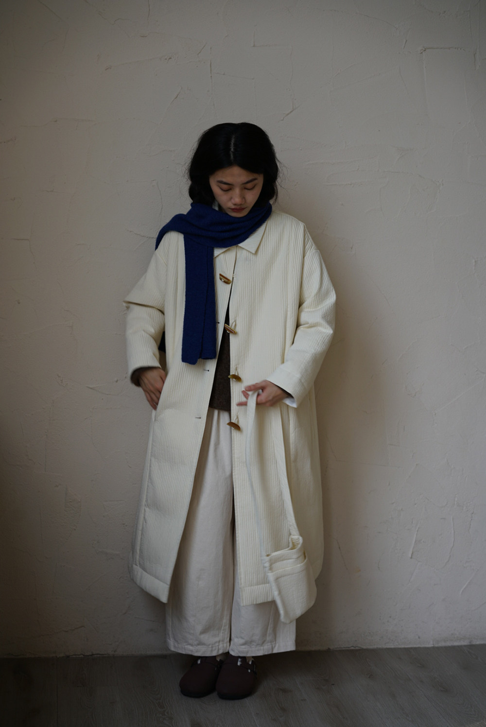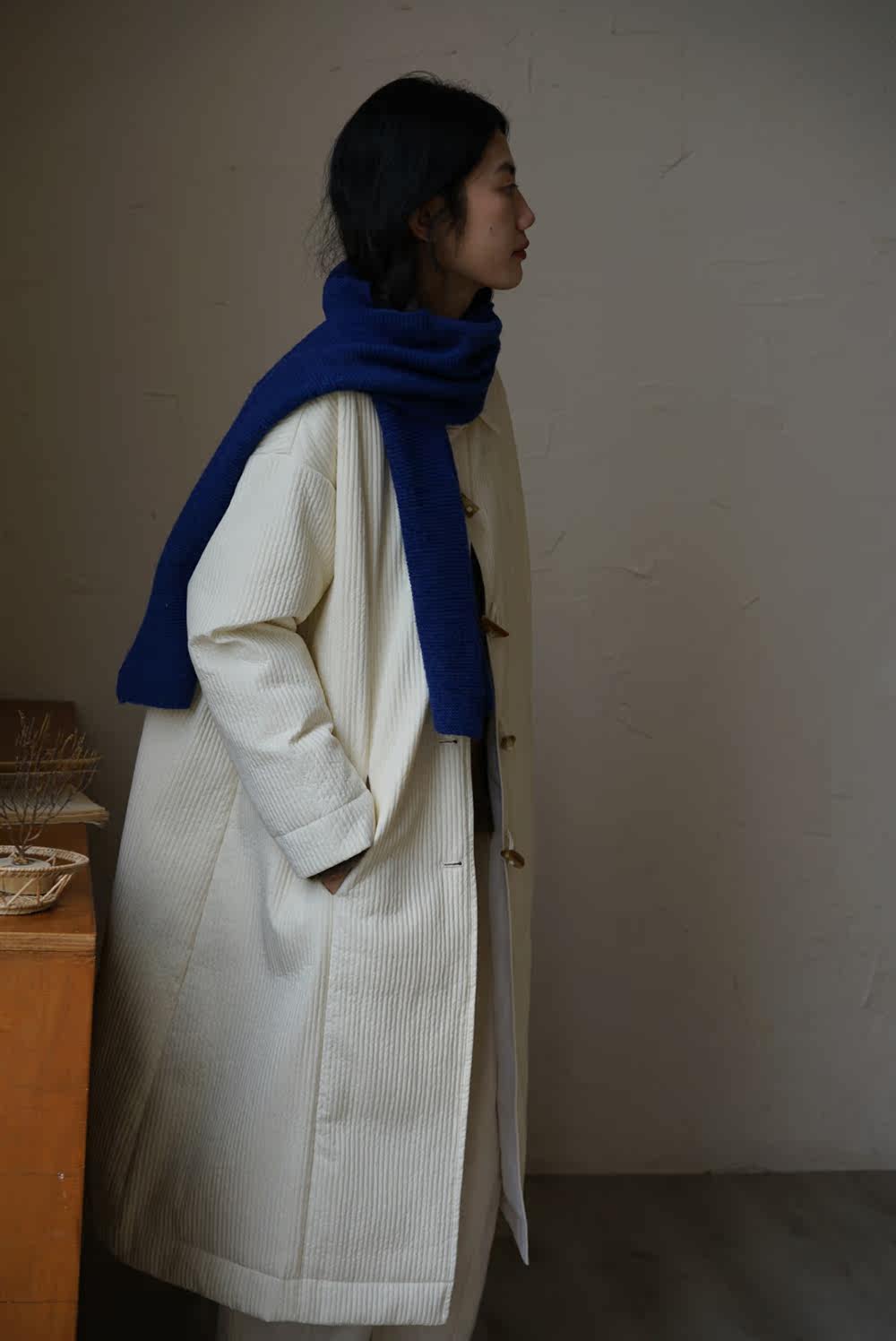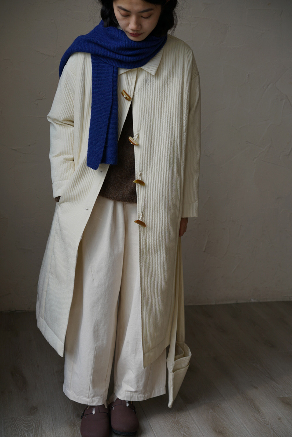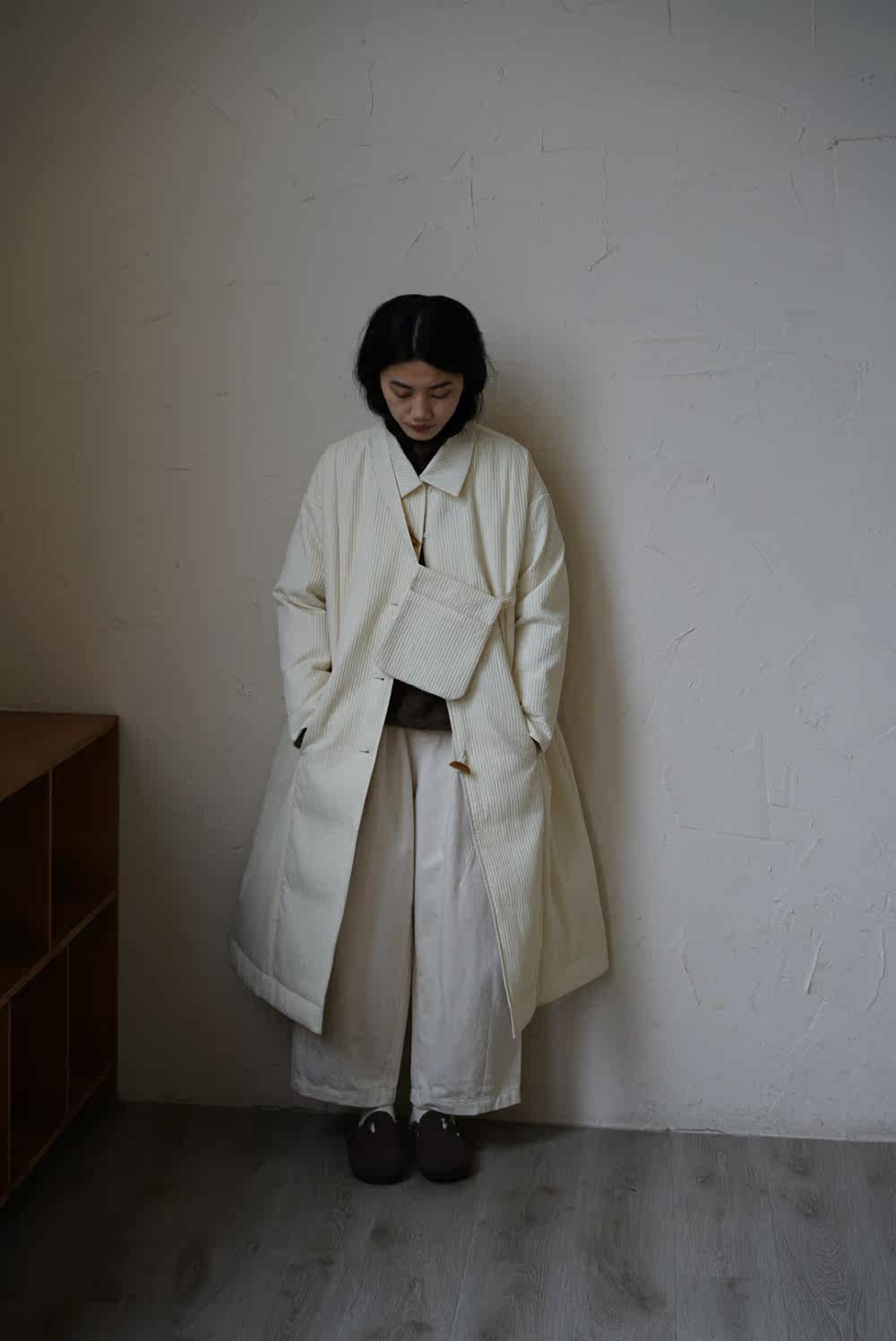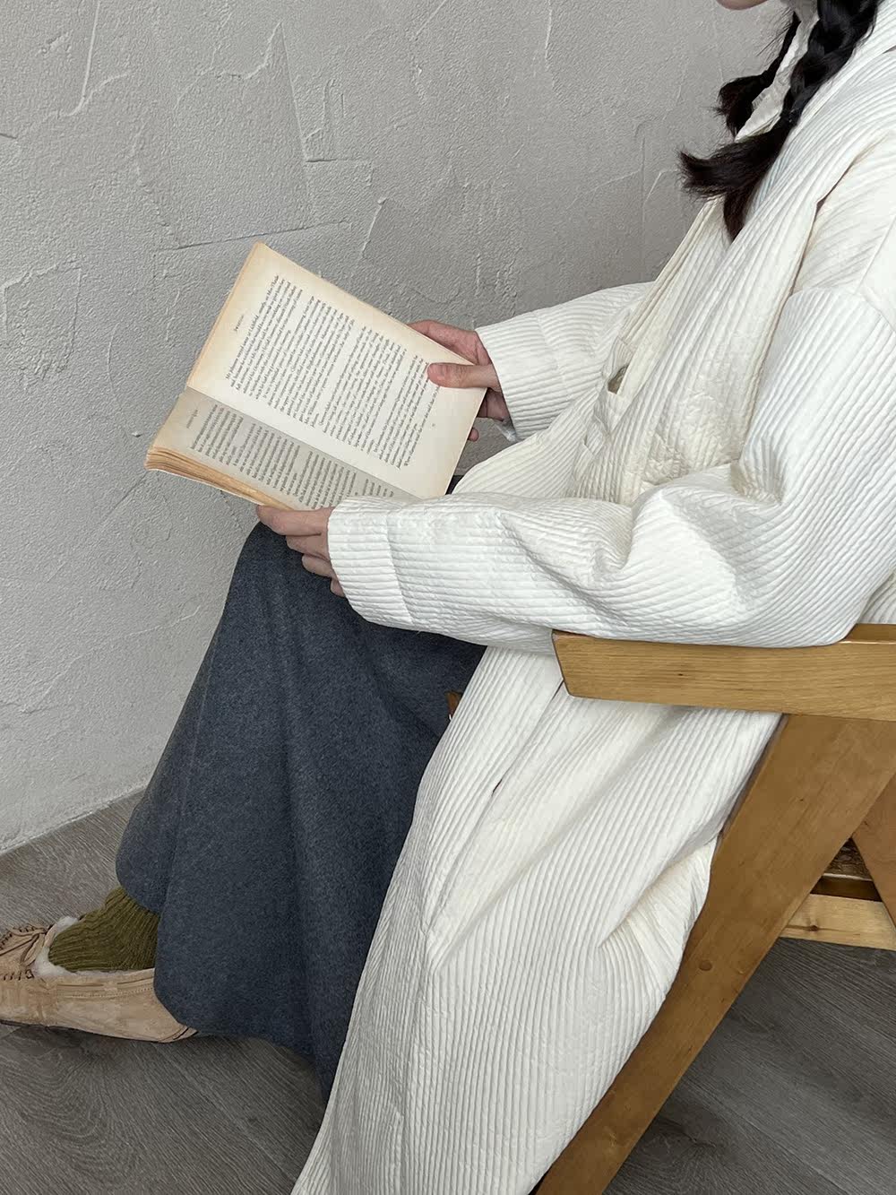 Зимний сливочный пуховик, средней длины