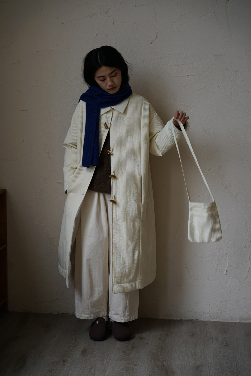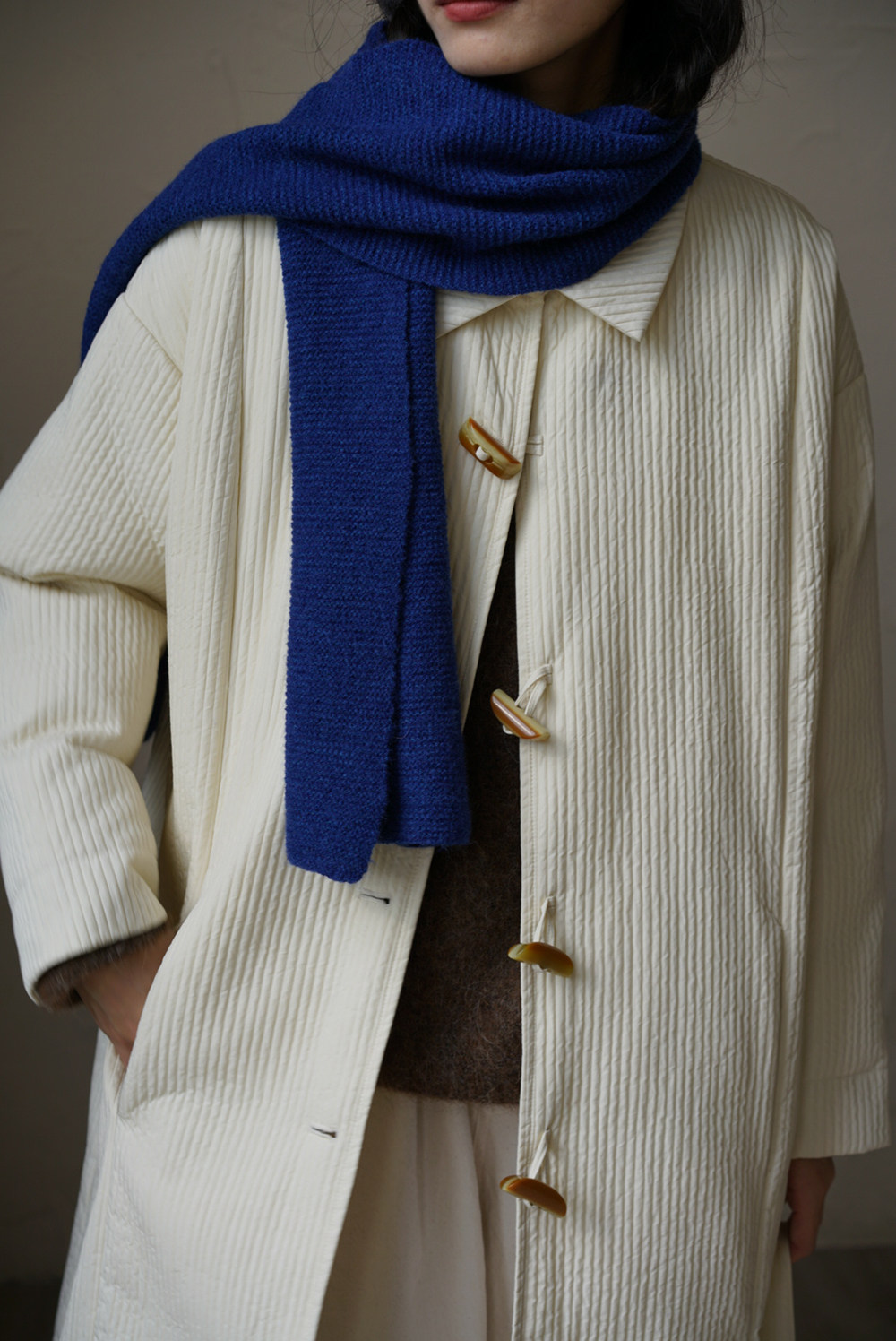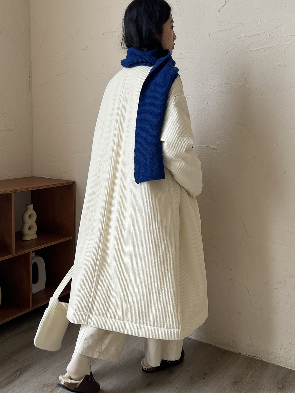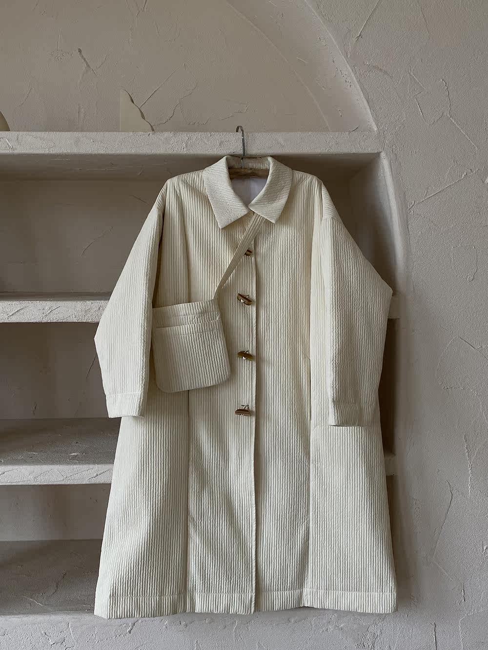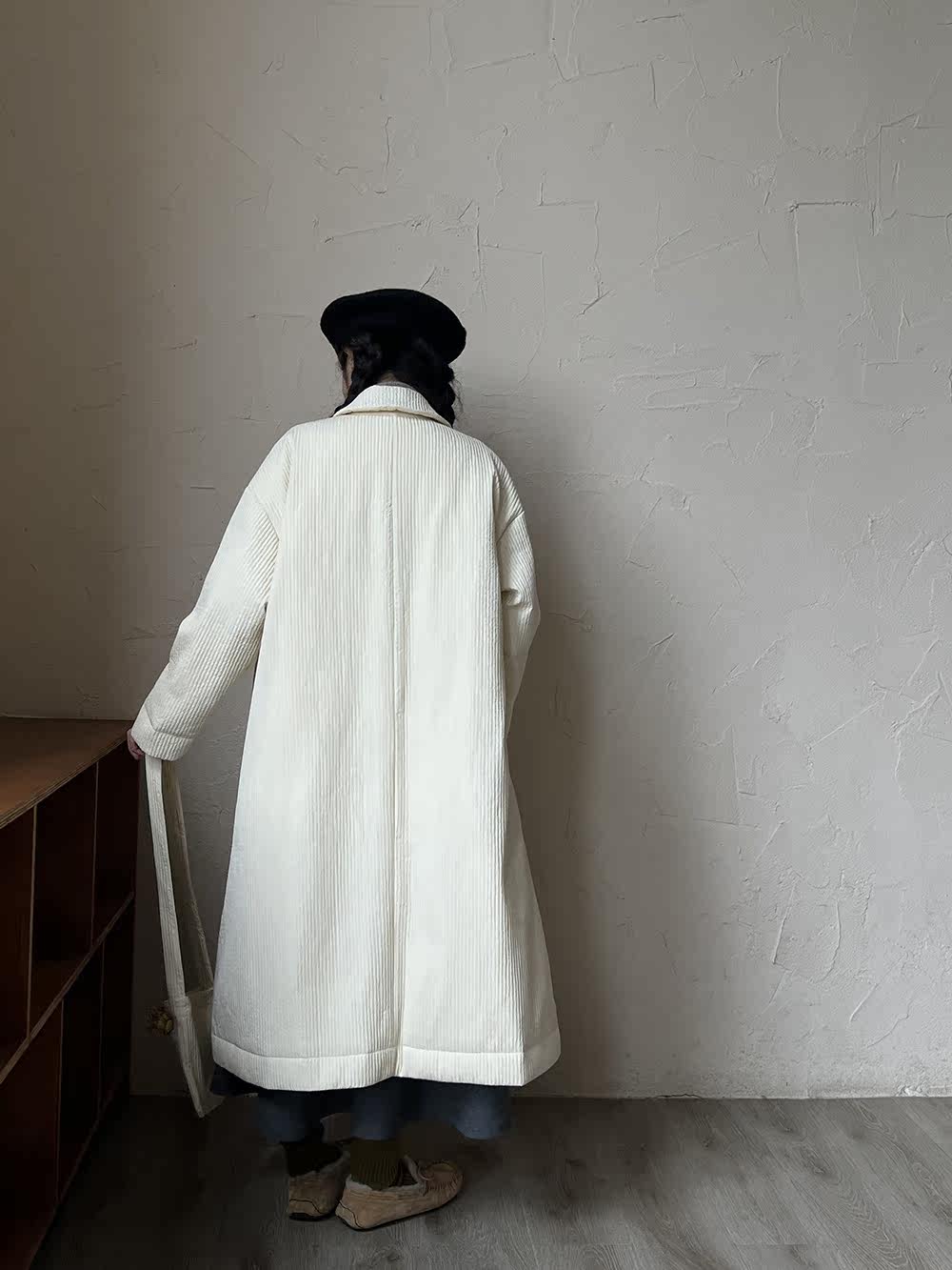 Зимний сливочный пуховик, средней длины