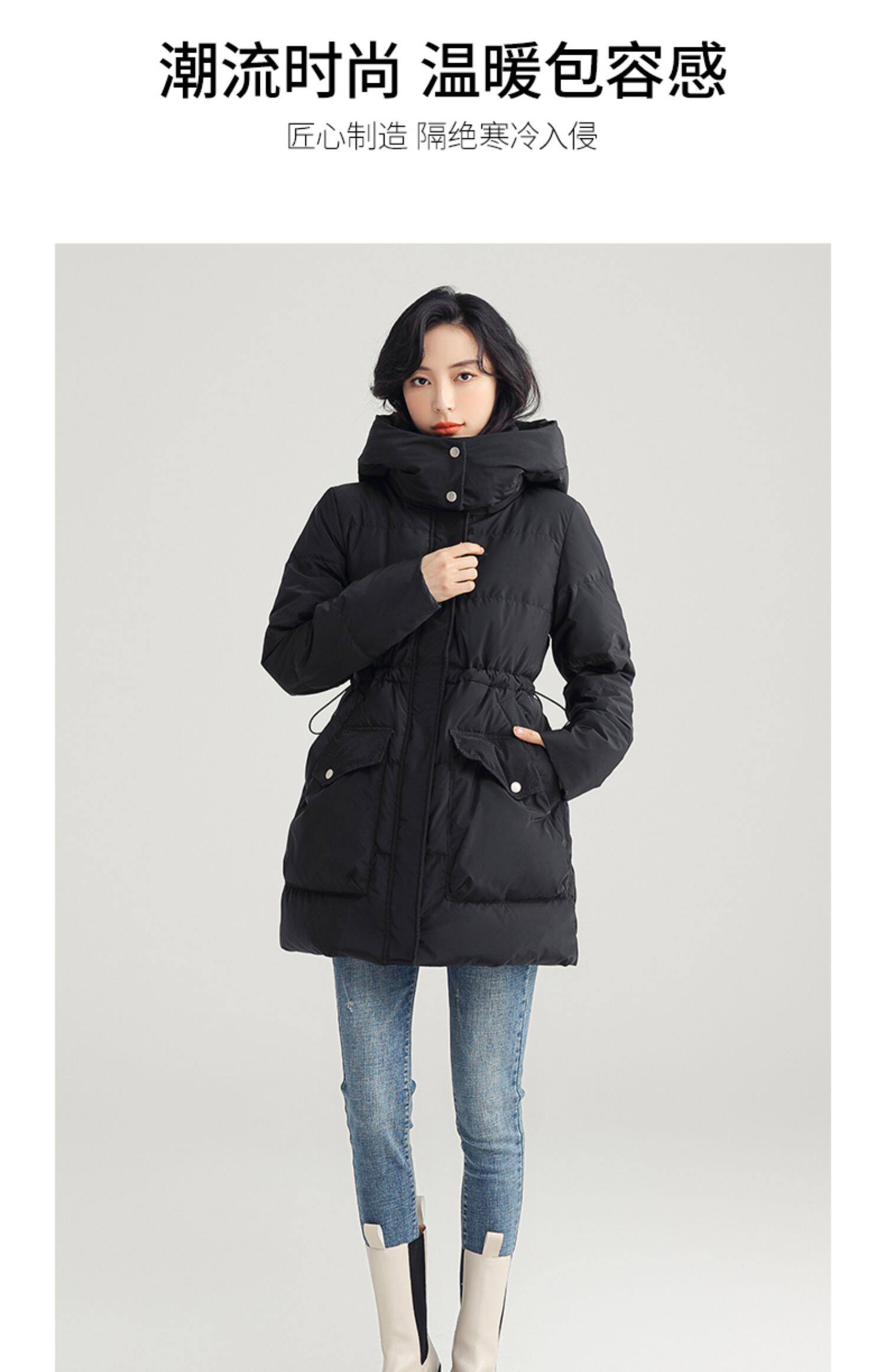 Пуховик, зимняя длинная толстовка с капюшоном, приталенный корсет, куртка, 2021 года, средней длины, на шнурках